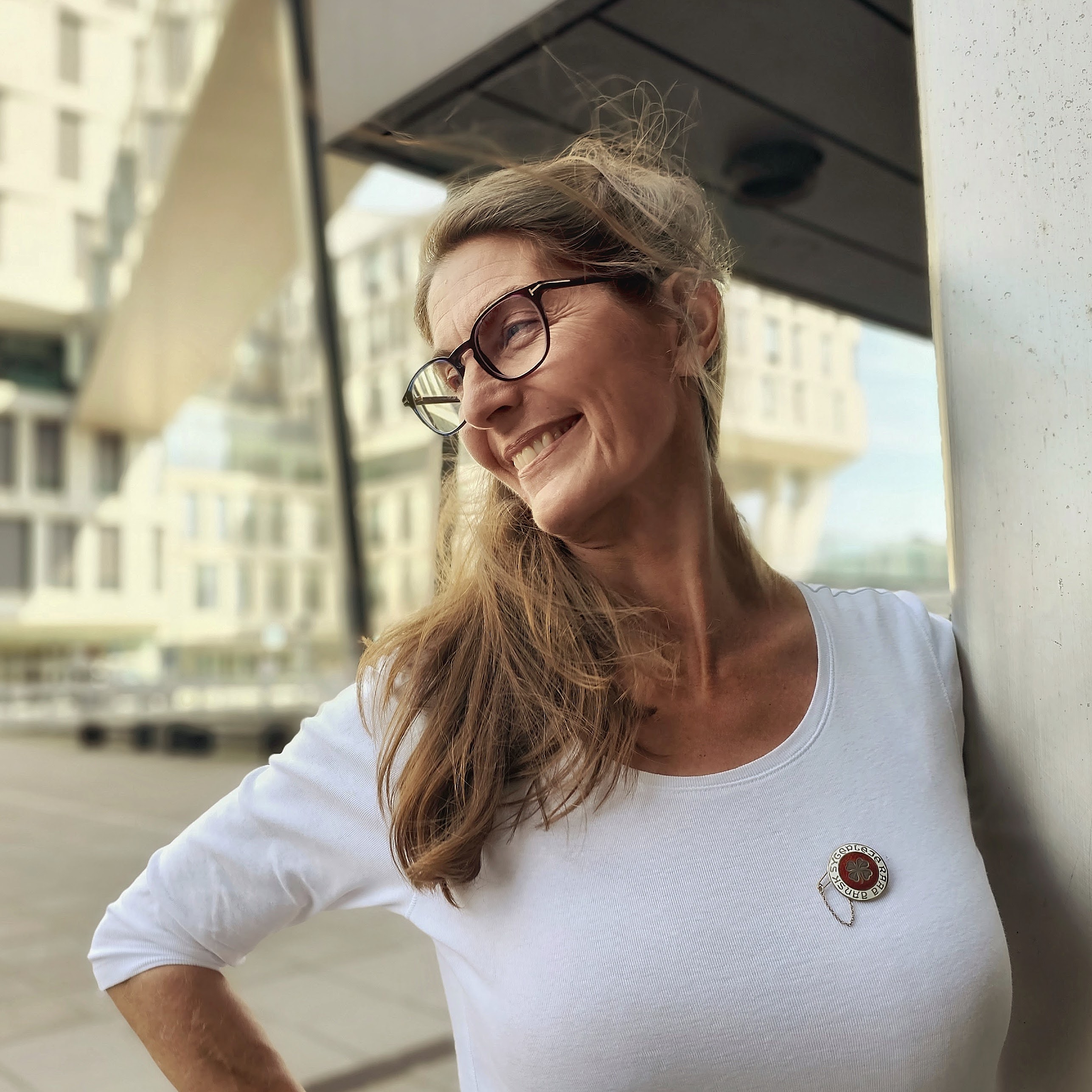 Helle Barth, daværende bibliotekar på Den Grafiske Højskole, a.k.a. DMJX. Helle mente, hun rummede mere end det officielle, noget grå, profilbillede fra skolen.