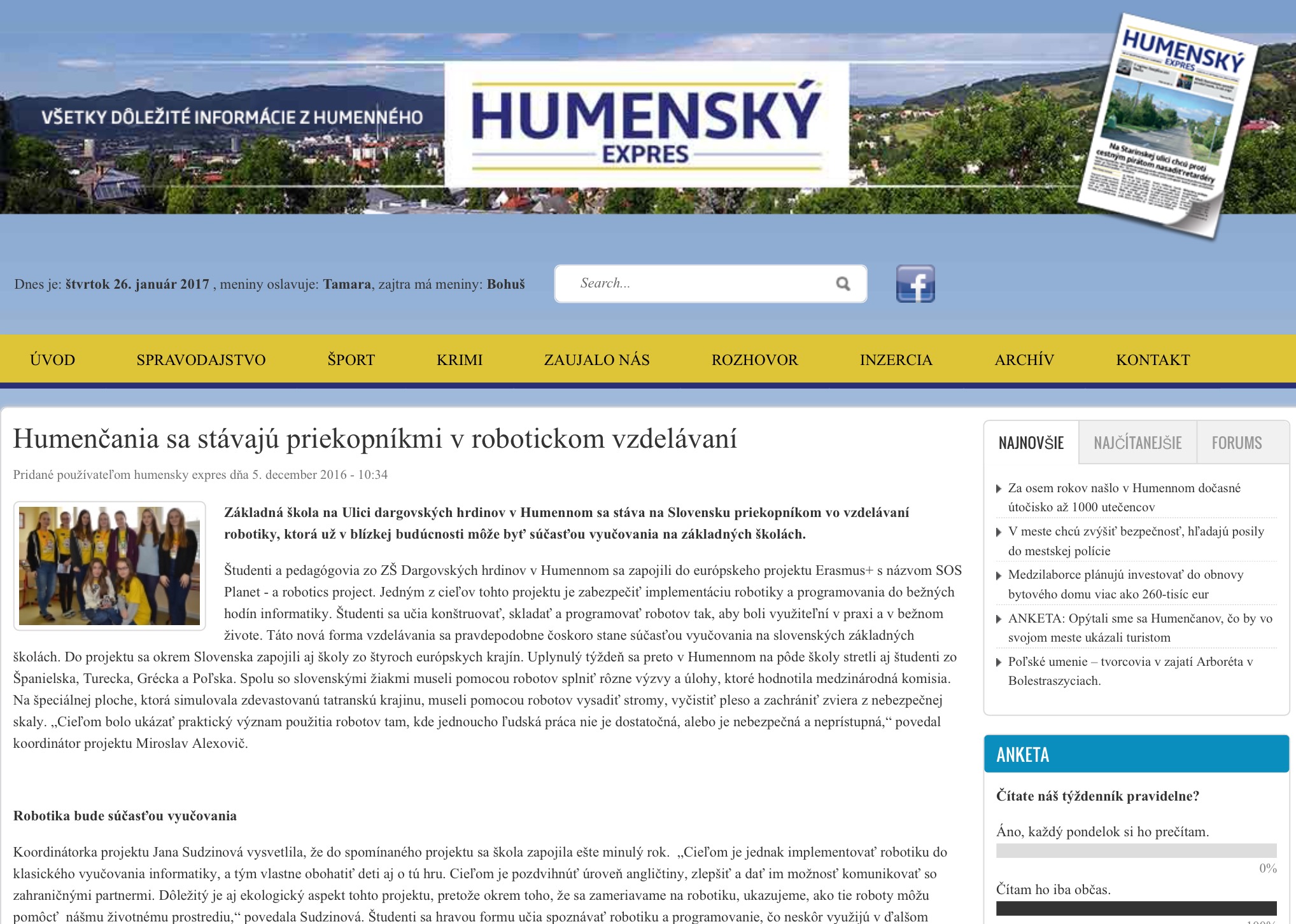 Slovak national radio broadcasted a report about Slovak mobility in their headline news