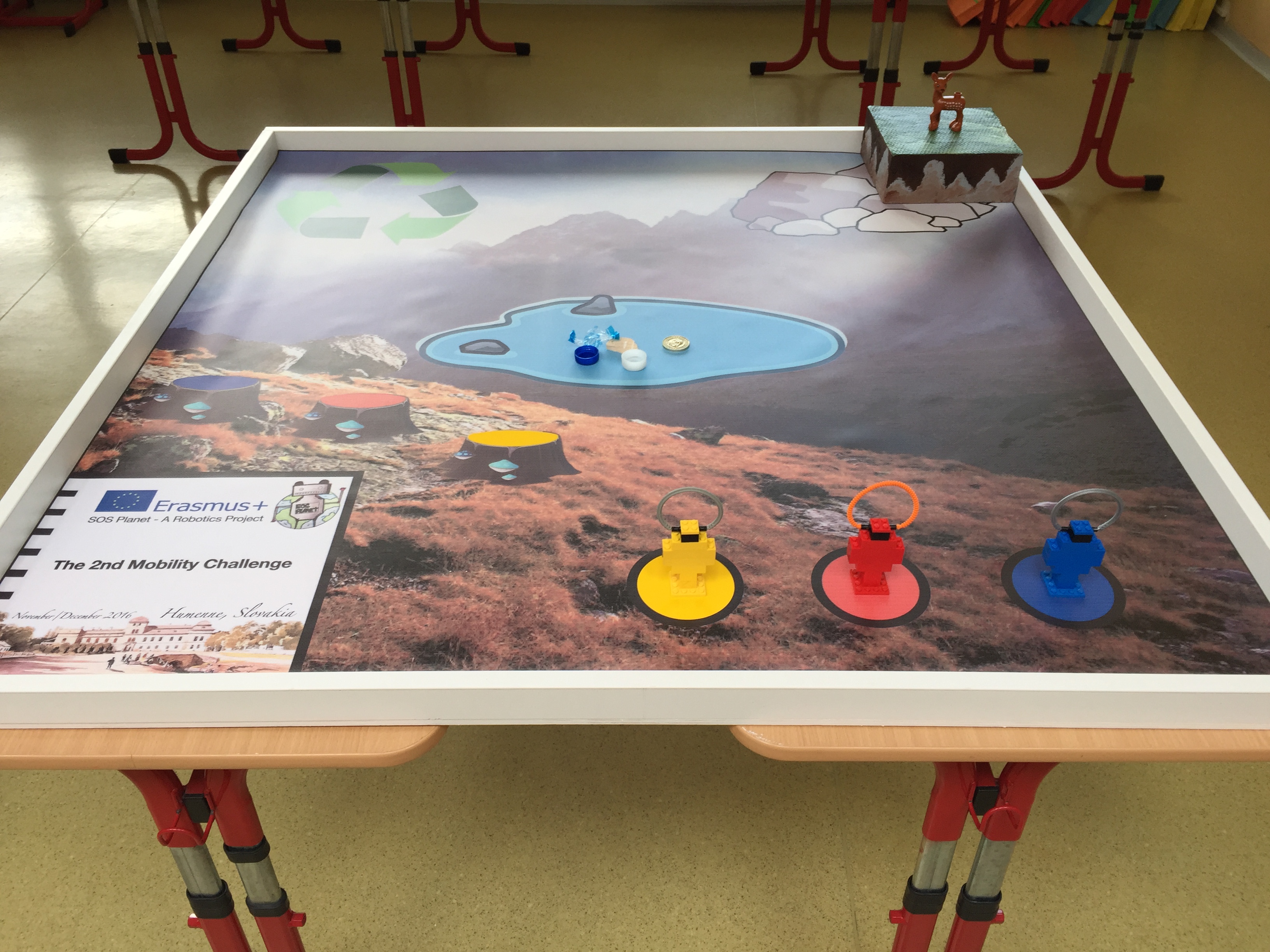 The aim of this mission was to design robot that it cleans the mountain lake from garbage and carries it into the marked recycle place as quickly as possible