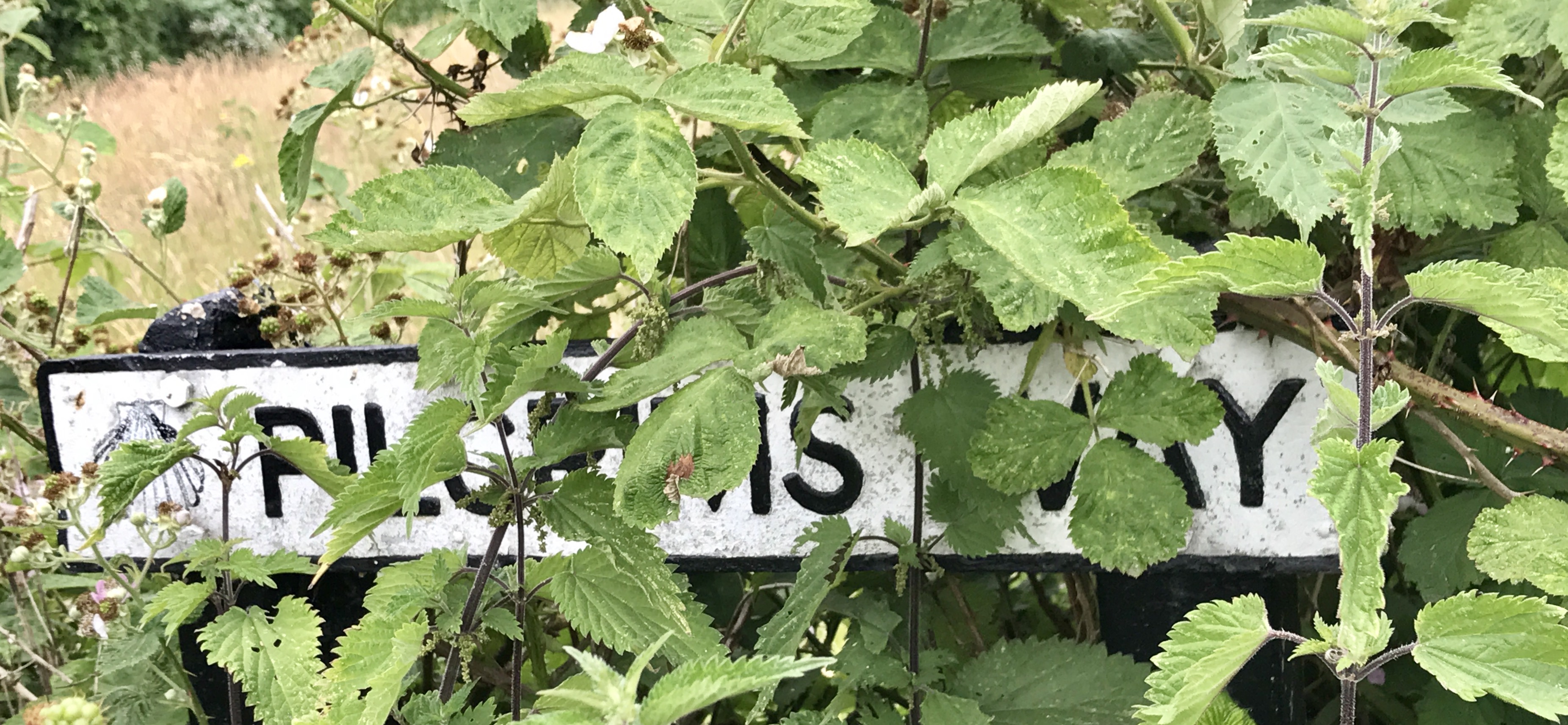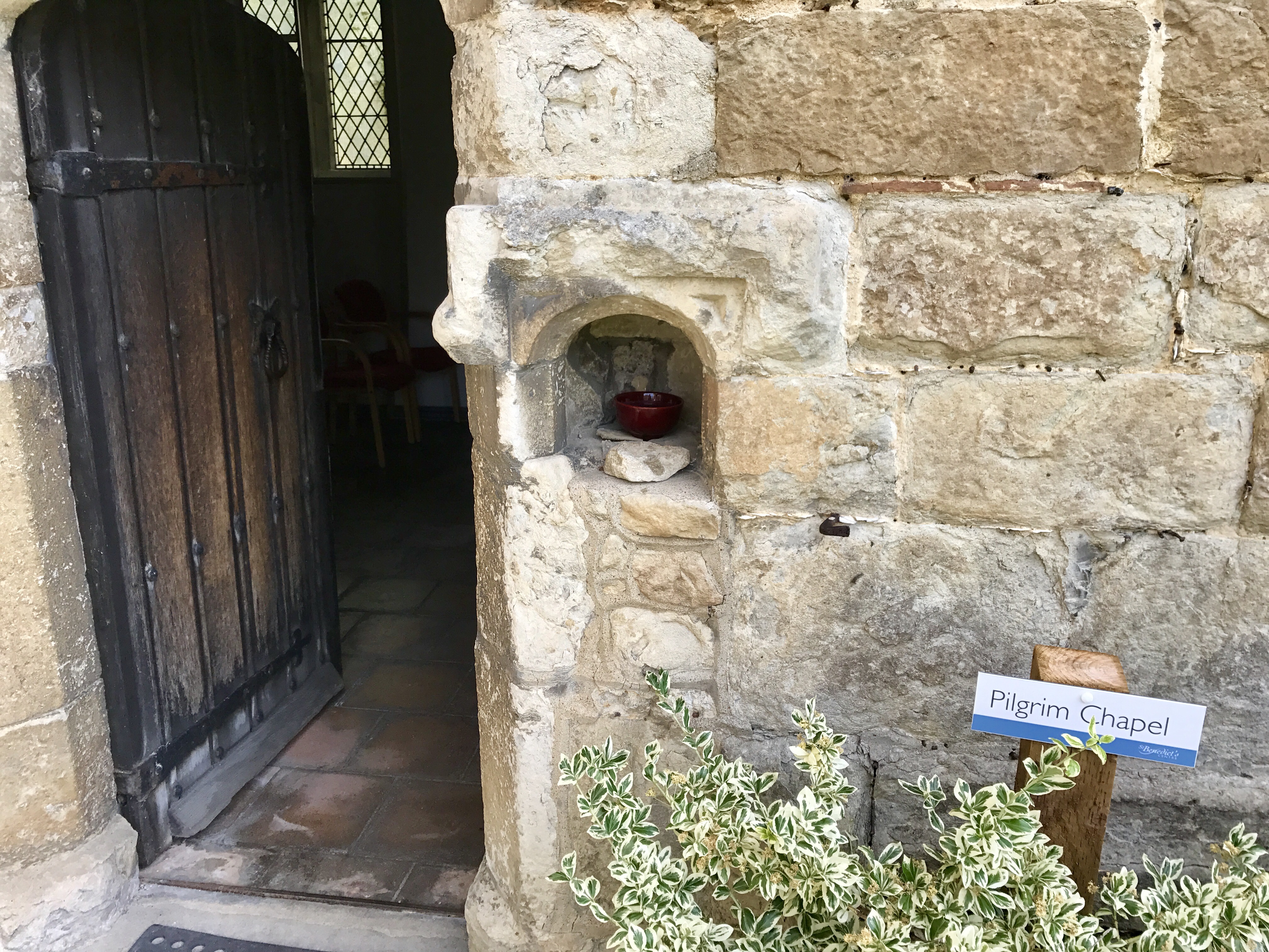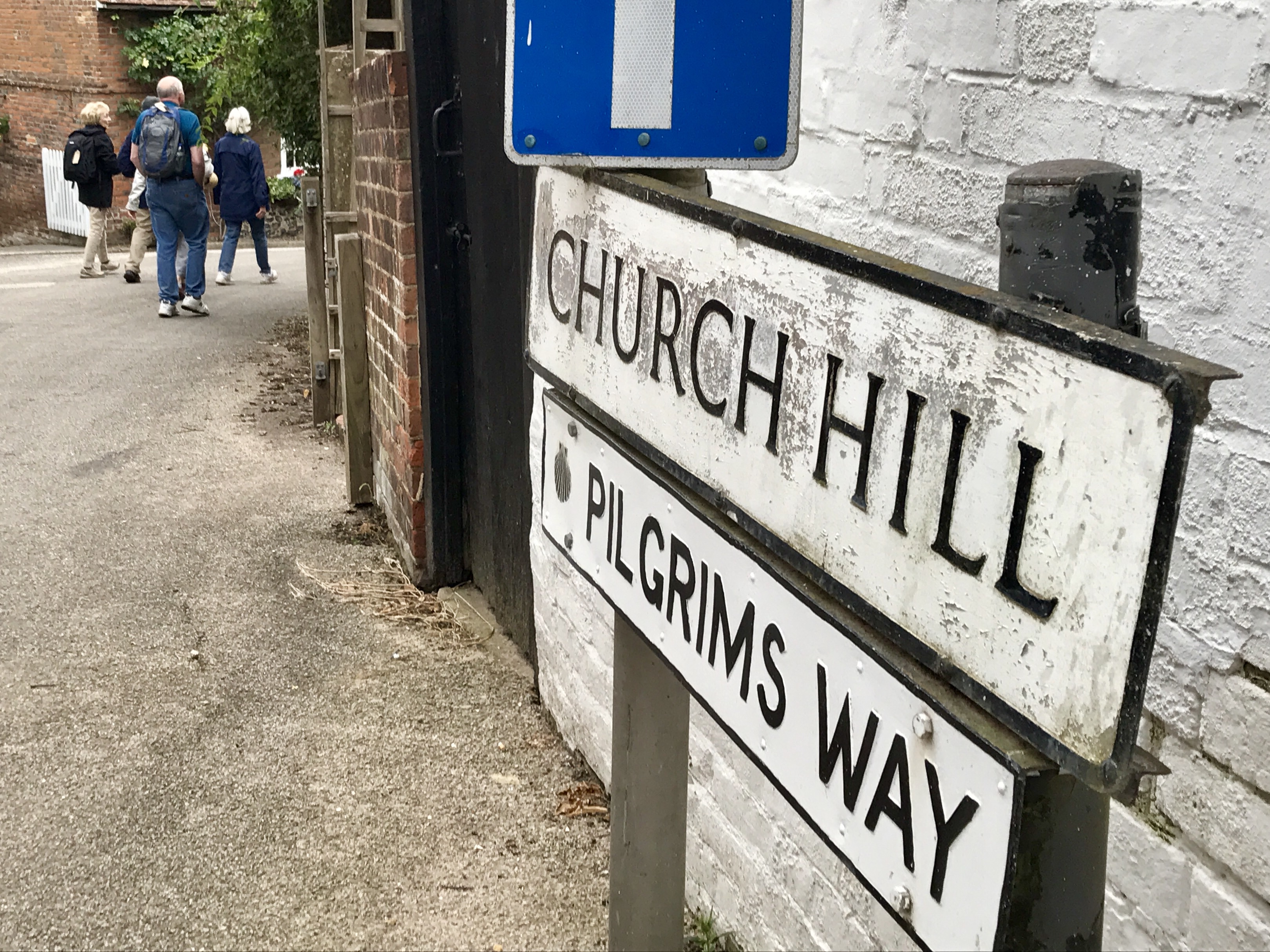 The Pilgrim's Way passes by the front door of the parish church of St. Mary's, Chilham - which contains the sarcophagus legend remembers to have sheltered Augustine's relics at the dissolution of the monasteries (now empty, but still contains great mystique!)