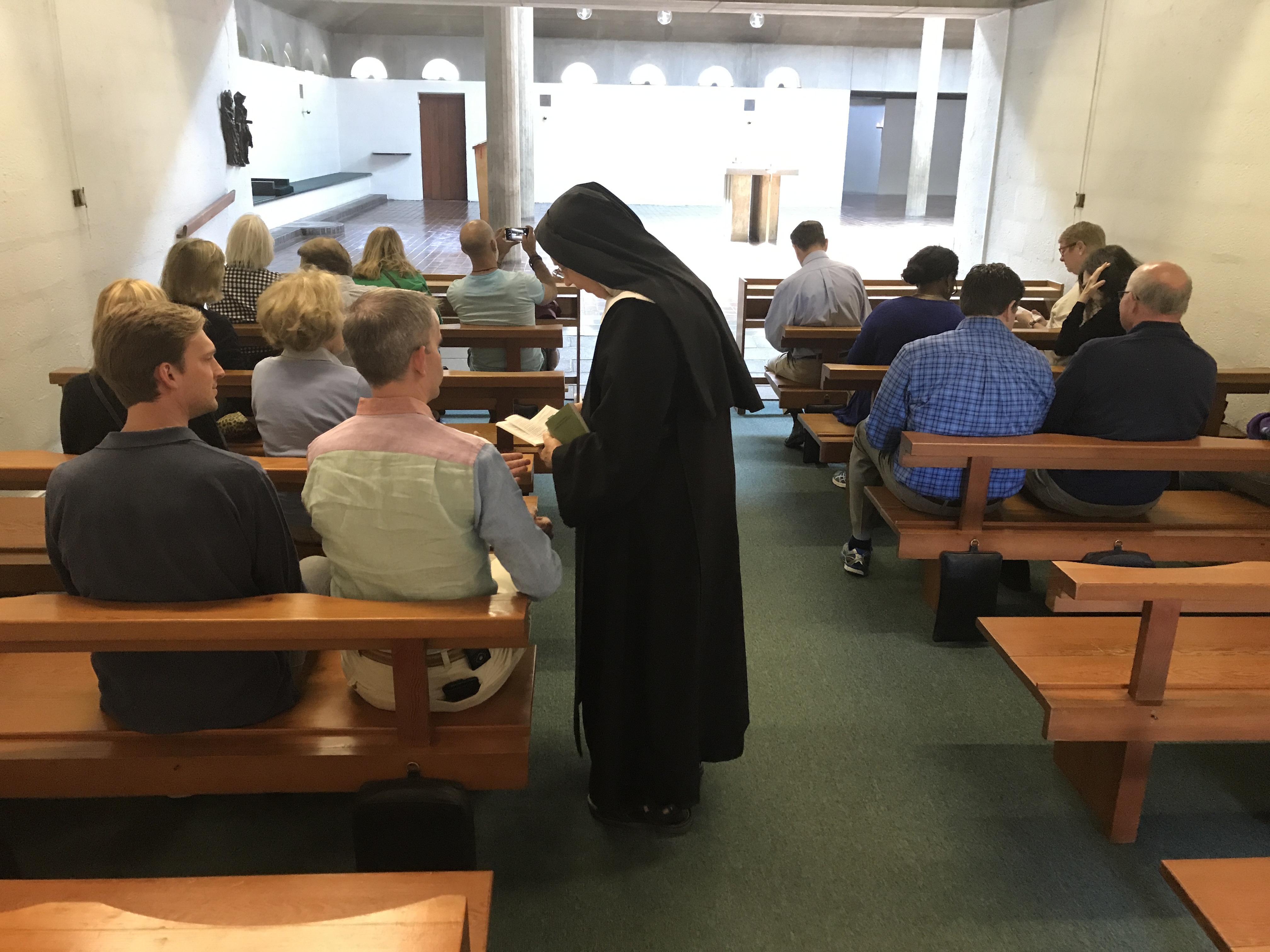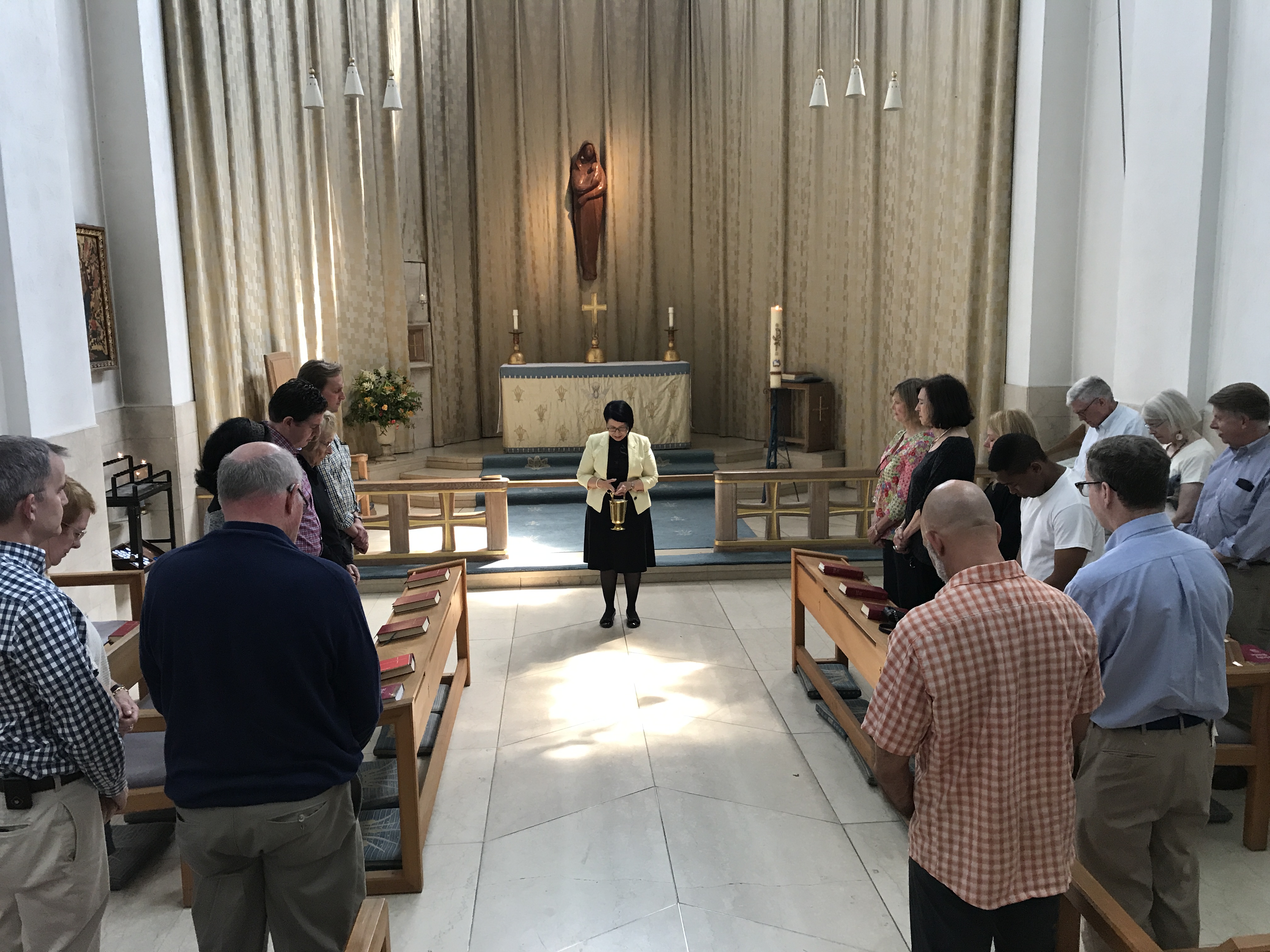 In that humble little chapel made of reused Roman brick and crude Saxon stone we recited our baptismal promises and blessed ourselves with water from the Saxon font. It felt as "large" a space as the cathedral itself!