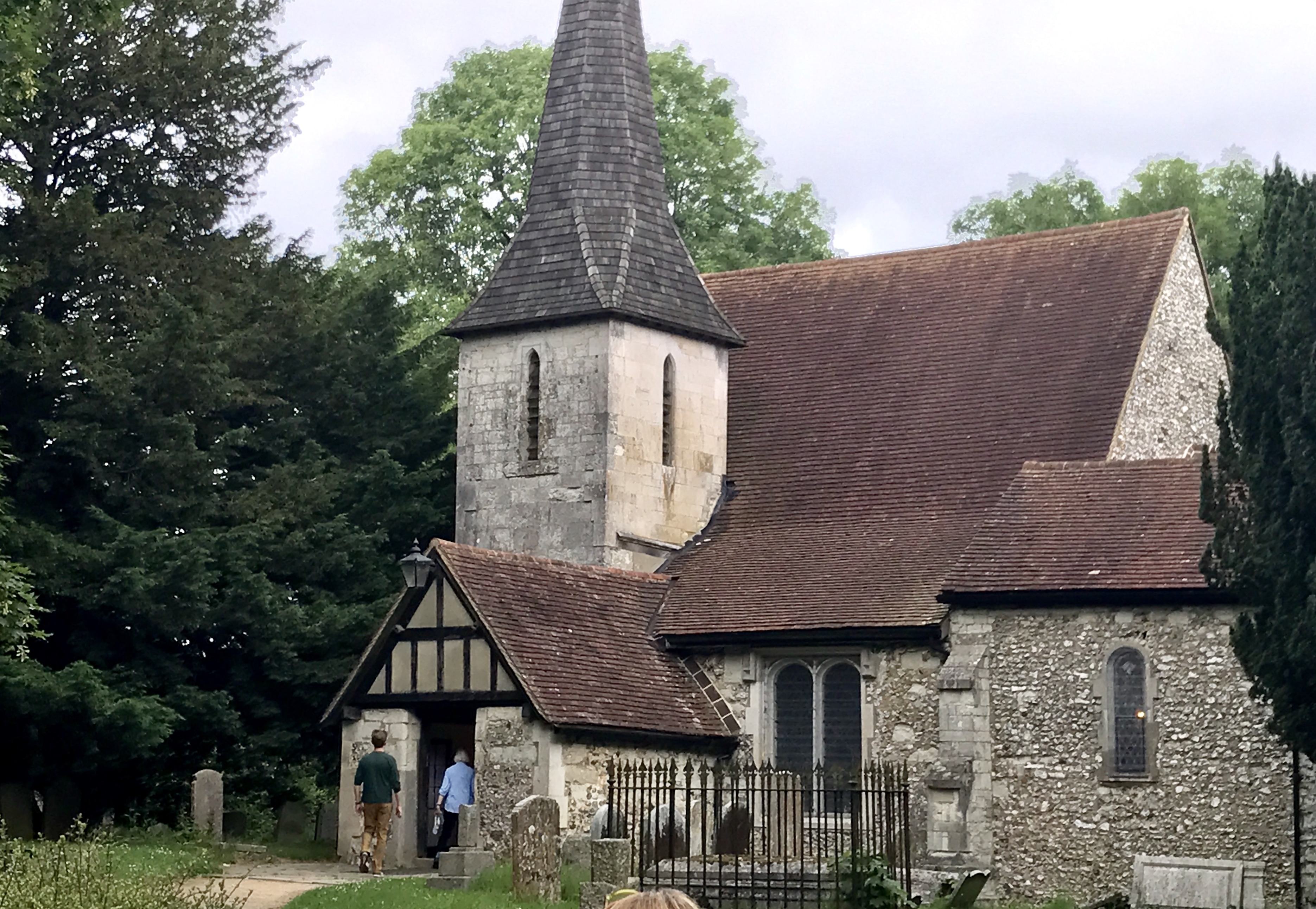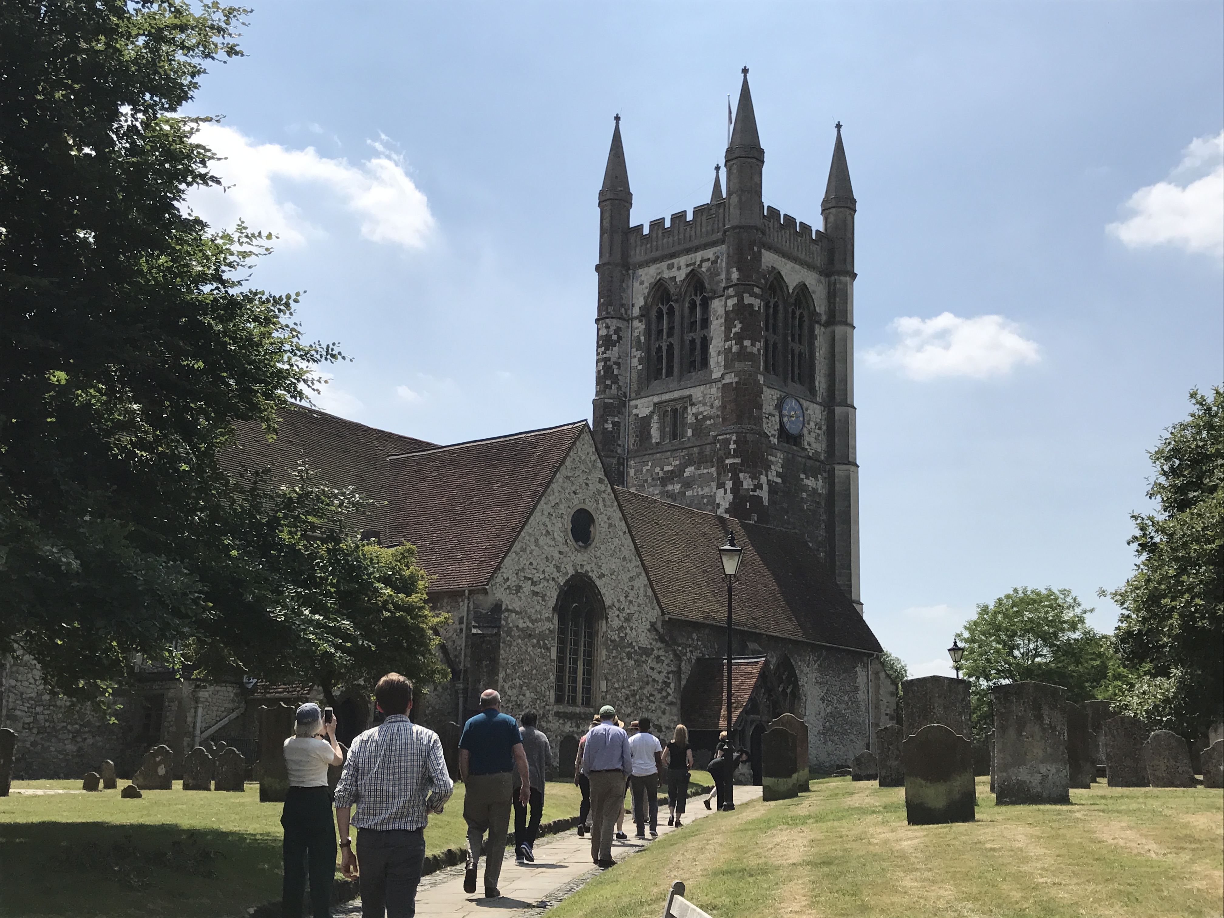 We began today at a medieval country church, Sts. Peter & Paul, Chaldon, which is exactly halfway on the 120-mile Pilgrims Way between Winchester and Canterbury.