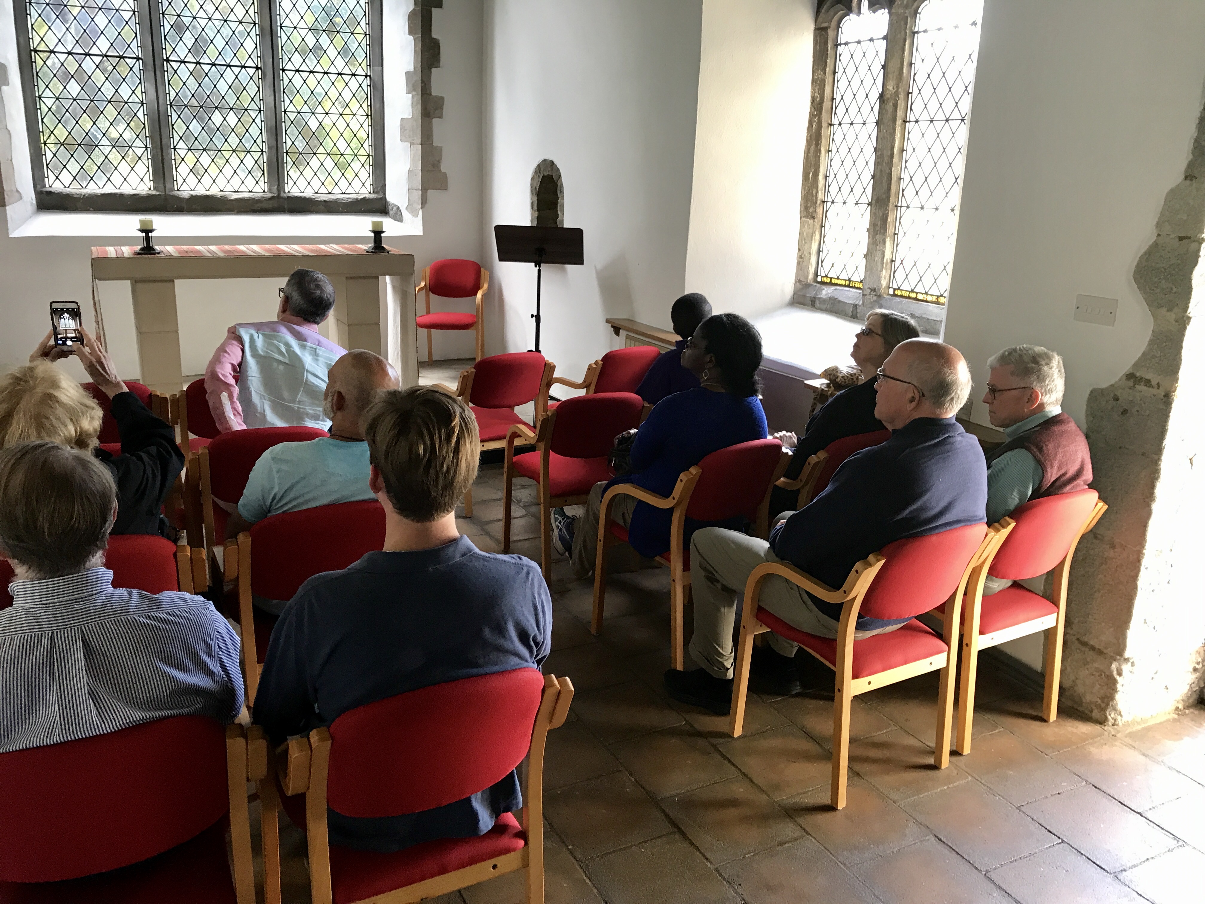 Our whole group came together again mid-afternoon, when we arrived at another country church on the Pilgrims Way: All Saints, Tudeley.