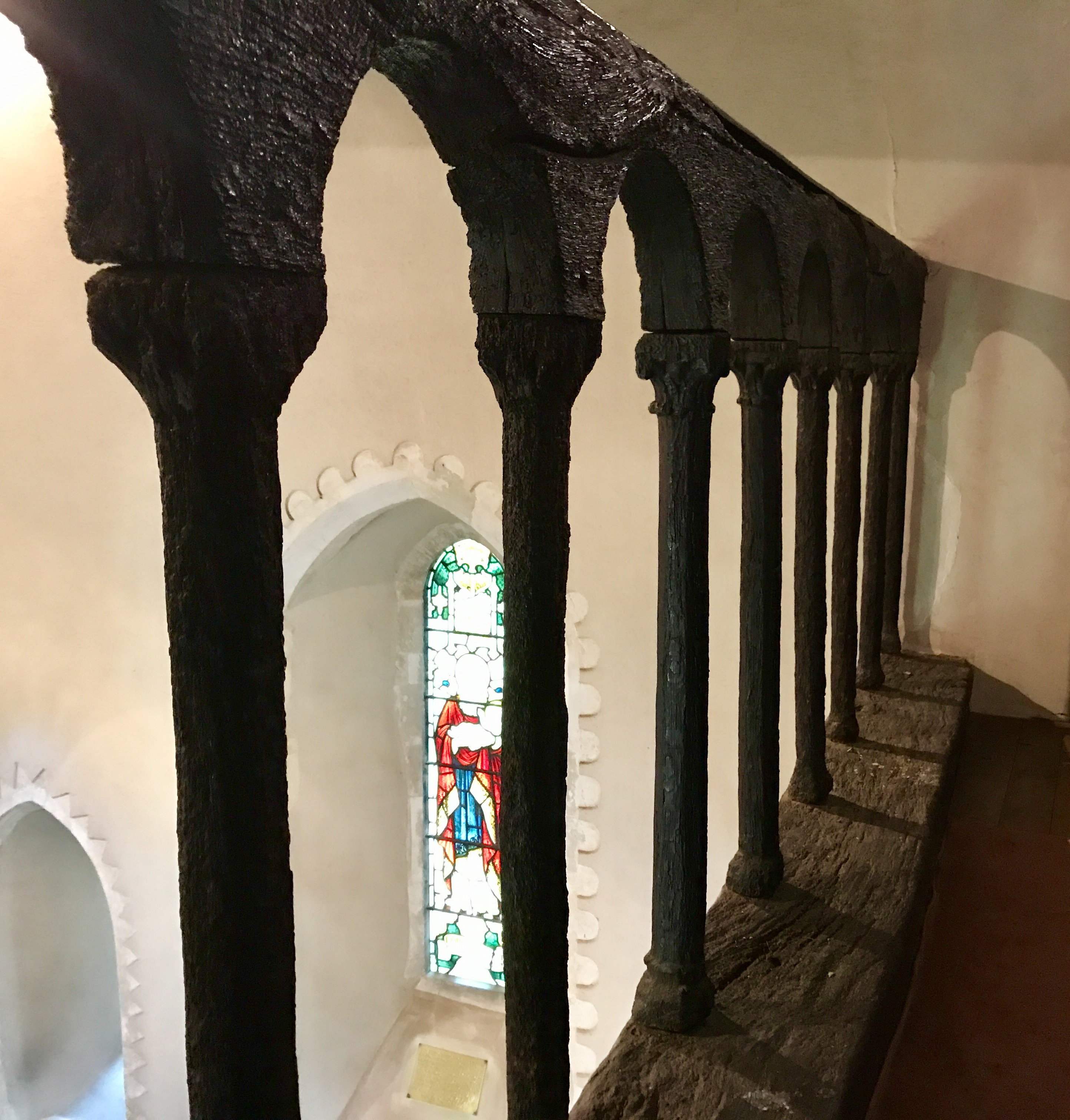 Our journey starts at St. Nicholas, Compton, an extraordinary early-Norman country church built along the Pilgrim's Way, with an anchorite's cell and an upstairs chantry above the altar. Behind the altar is the oldest stained glass in England, depicting of all things a Black Madonna!