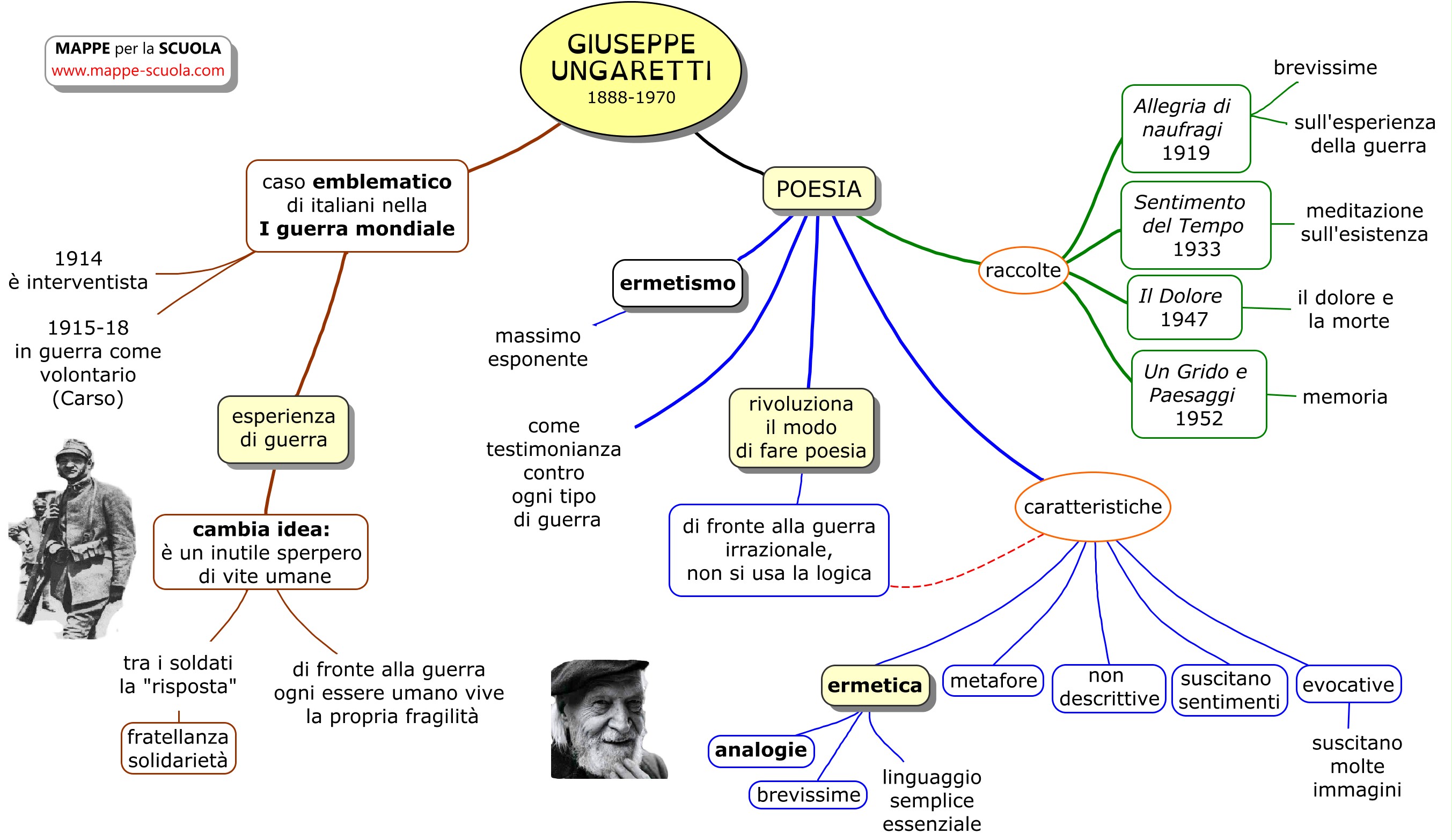 Giuseppe Ungaretti nacque nel 1888 ad Alessandria d’Egitto, dove passano gli anni della giovinezza. Nel 1912 trascorse un periodo a Parigi, che gli promise di entrare in contatto con un ambiente culturale internazionale. Rientrato in Italia nel 1914, partecipa attivamente alla campagna intervista; lo scoppio della guerra, si era una come volontaria delle mandato a combattere come fante sul fronte del carso