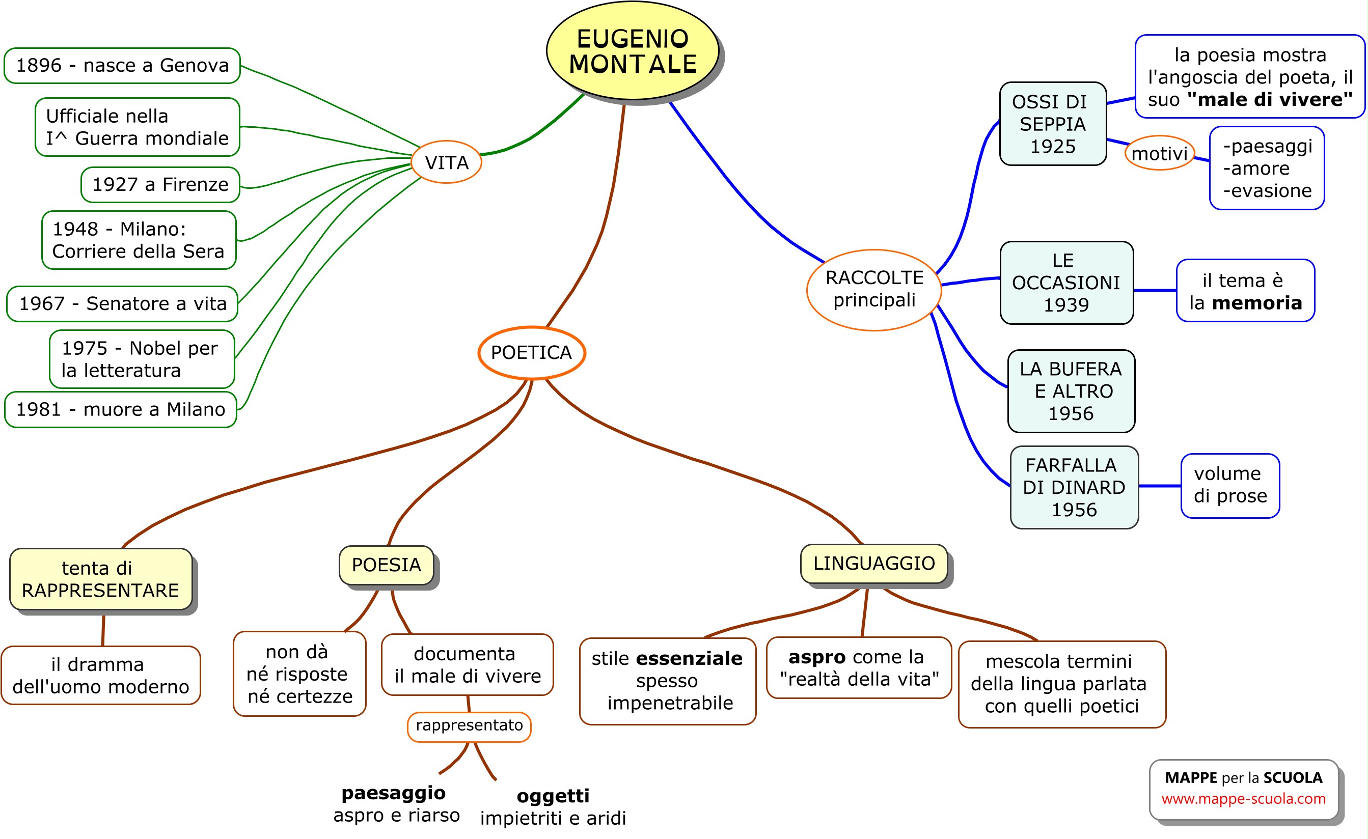 Il titolo della prima raccolta di poesie, ossidi seppia, indica già in modo essenziale la franca verbo accompagnato il poeta per tutta la sua esistenza: un senso di aridità interiore, angoscia permanente un doloroso male di vivere. La vita gli appare un enigma assurdo e come scritto in una lettera del del 1926, si sente un albero bruciato dallo scirocco.