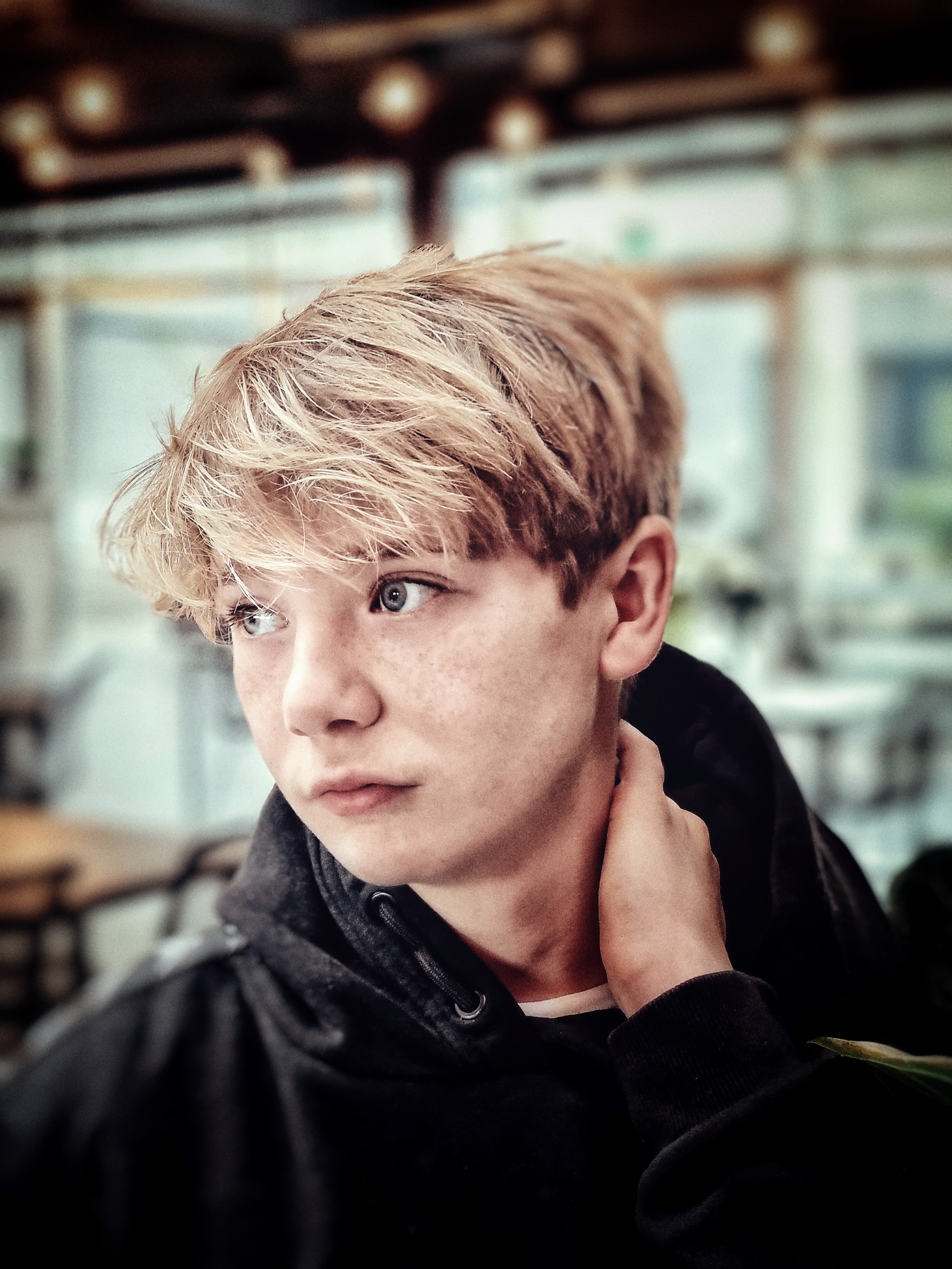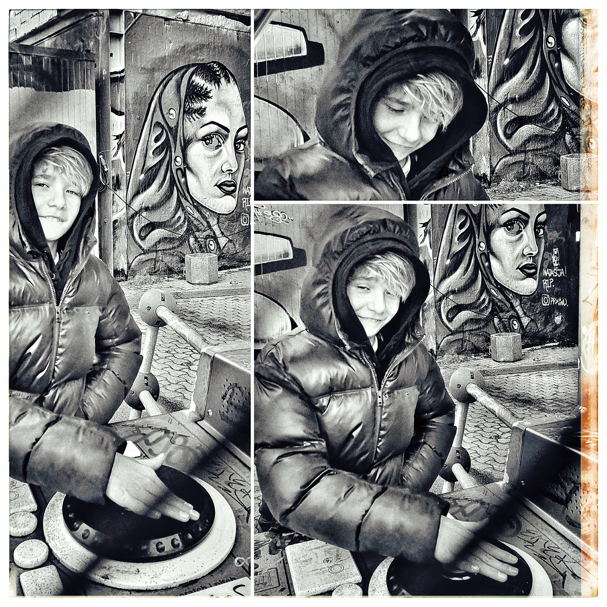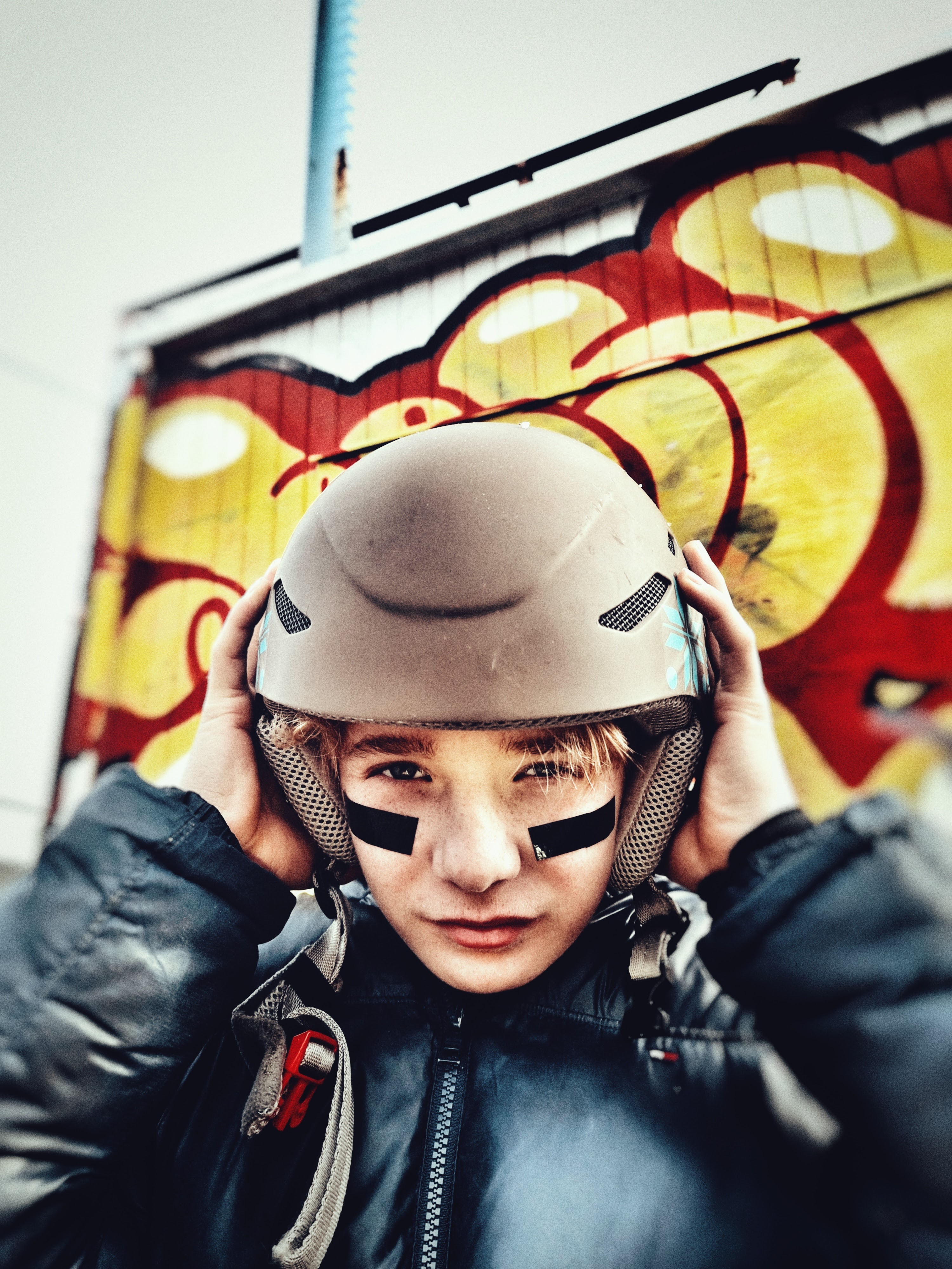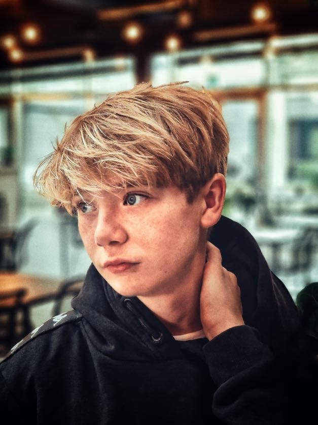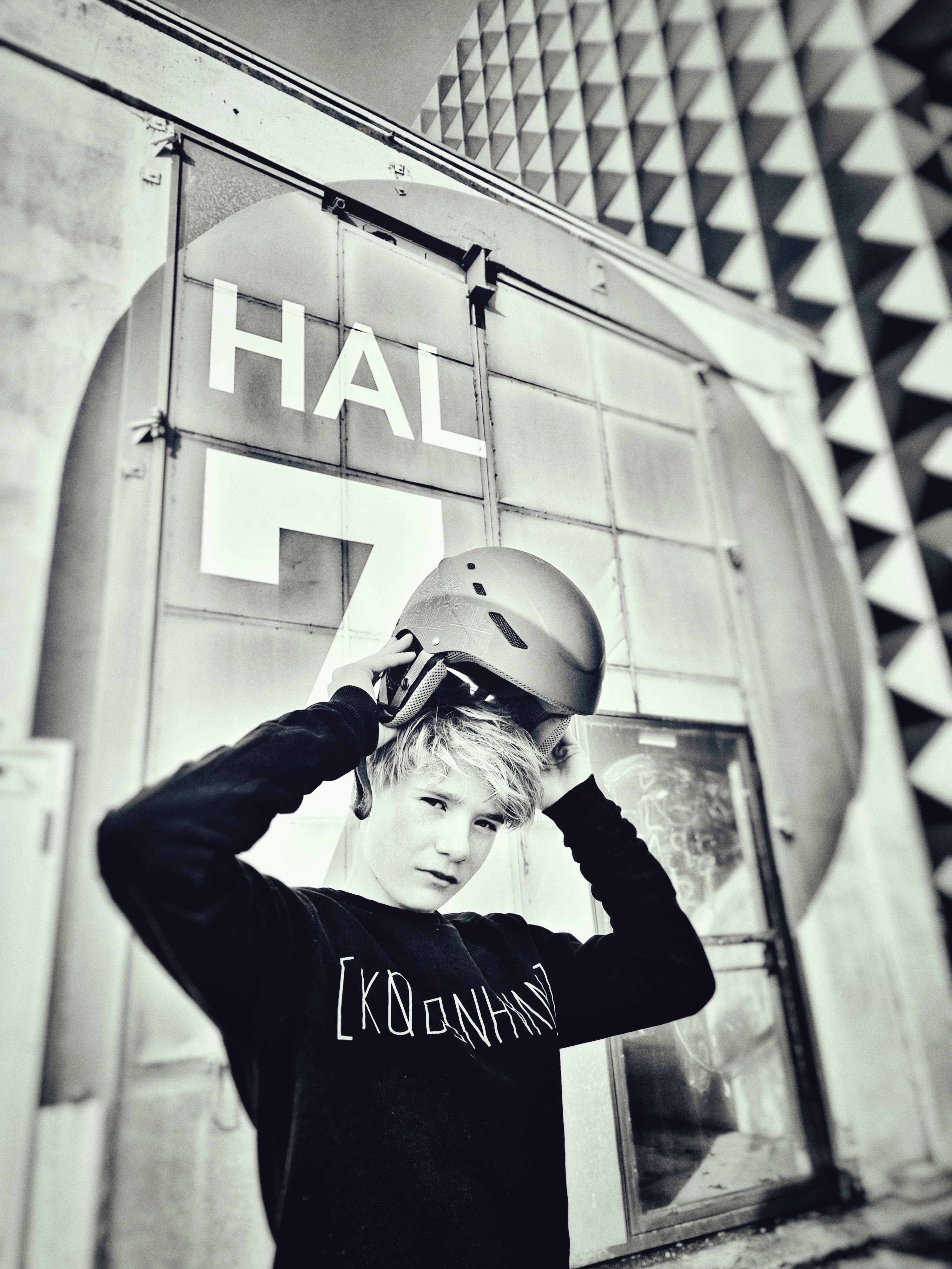 Tine Skovgaard, personlig assistent og koordinator for Enneagramstedet, havde tidligere prøvet et photoshoot, der blandt andet fik hende en tur på gulvet, og nu skulle hun bruge ‘nogle spændende billeder’ af hendes konfirmationsklare søn, Malthe. Så hun bookede et tretimersshoot, hvor vi mødtes på Roskildes hippe Musicon, et arkitektonisk misk-mask af kreativt nybyg med barakker og grafitti-indsmurt ‘gamle tider’.