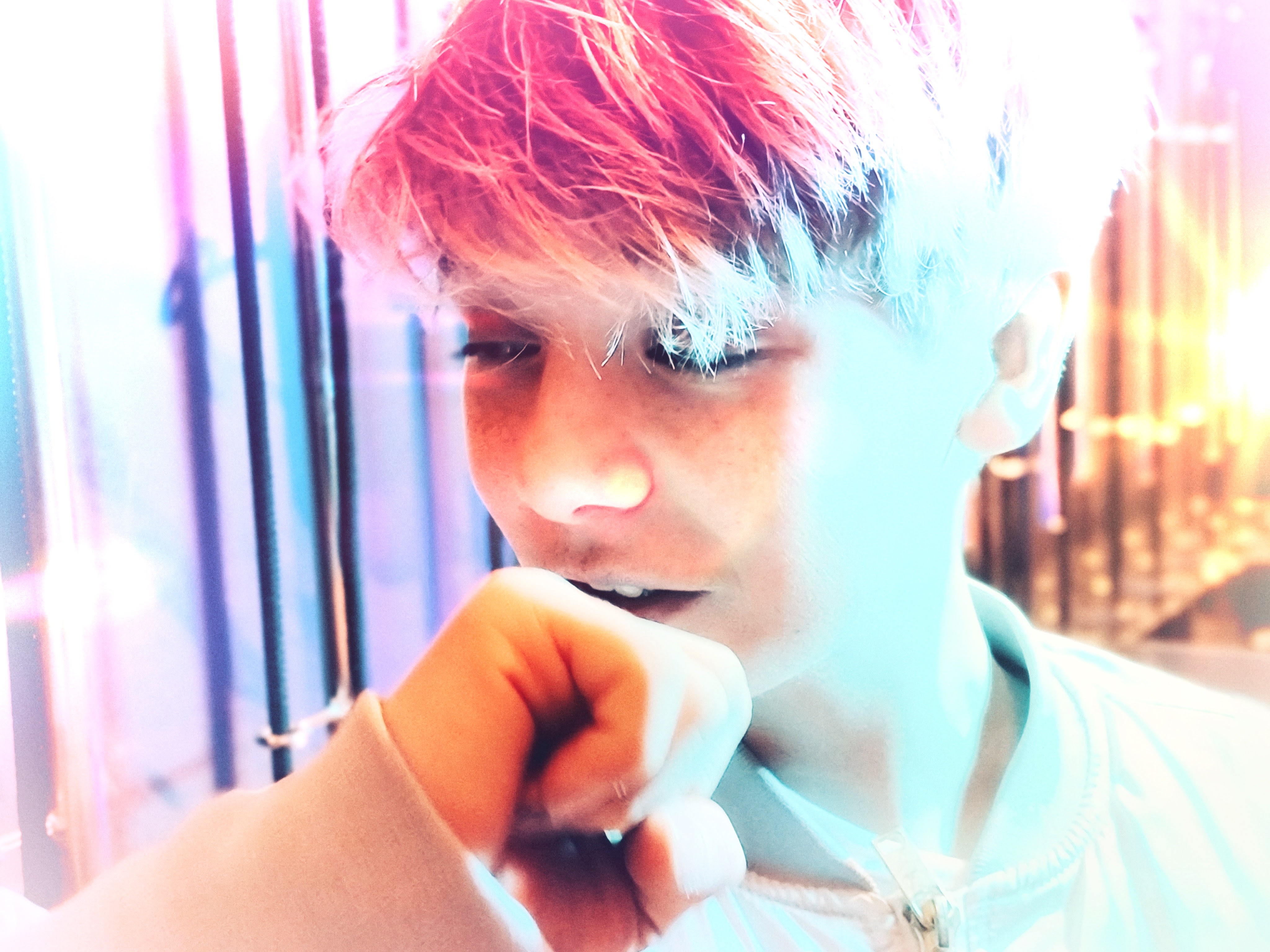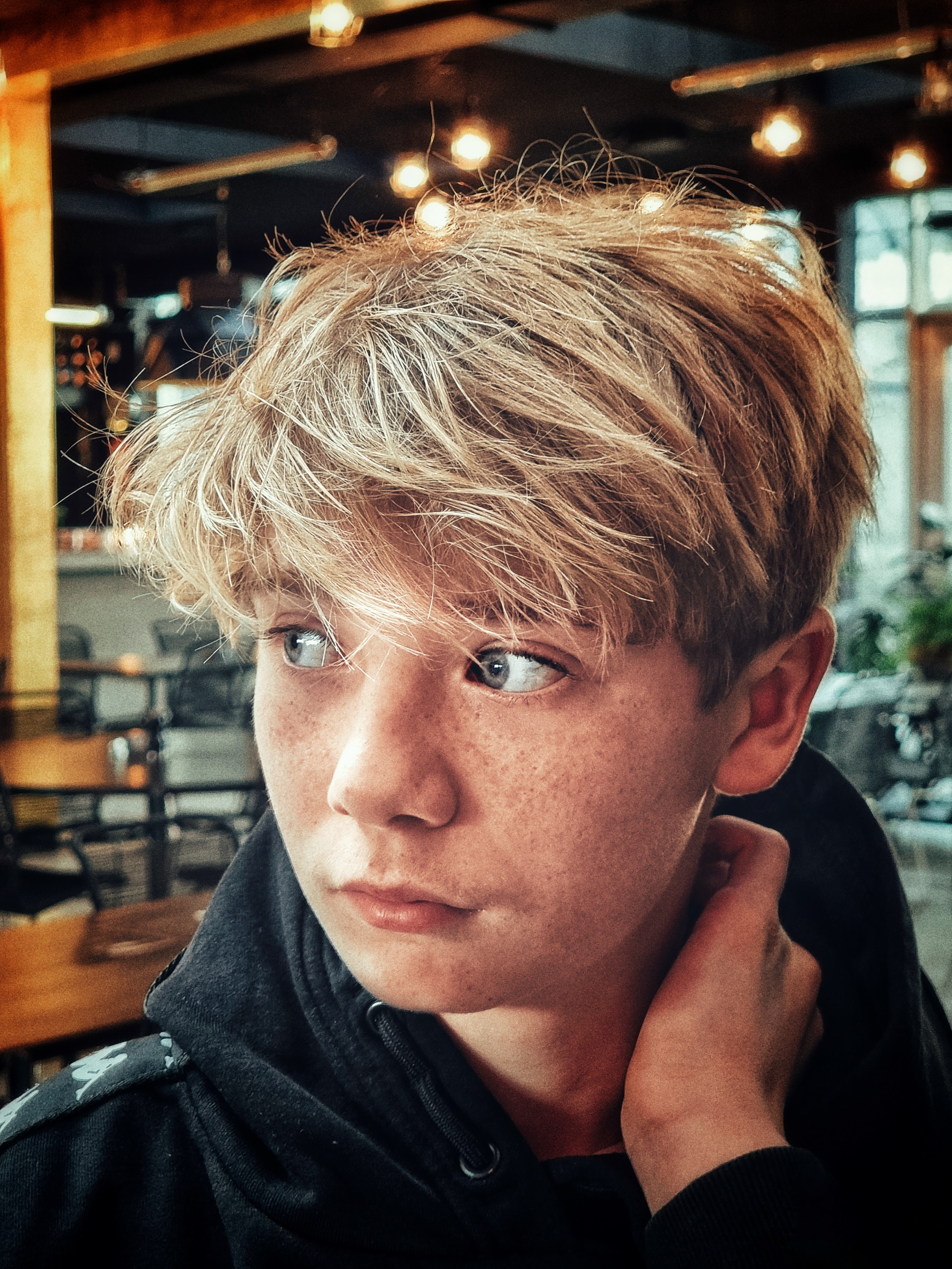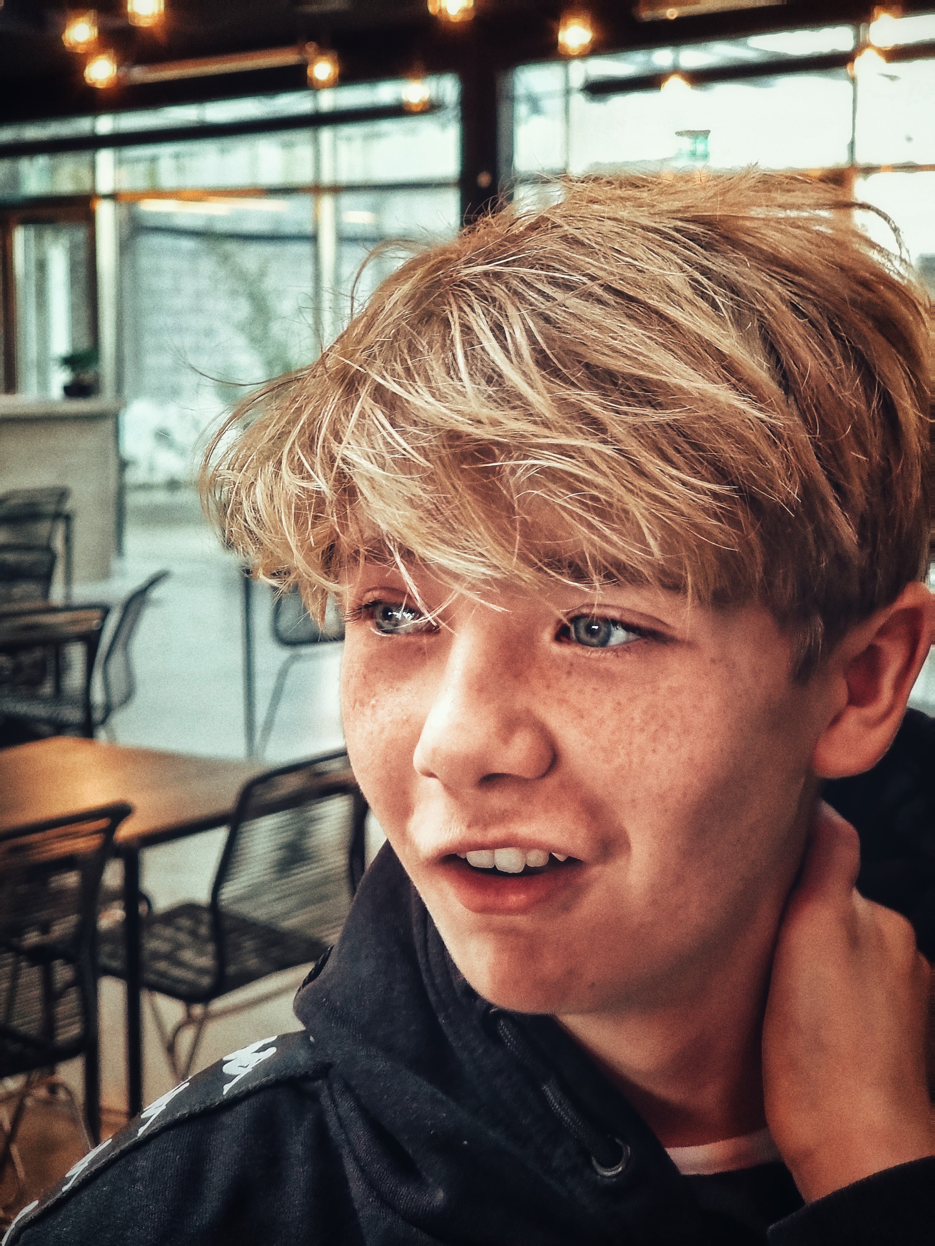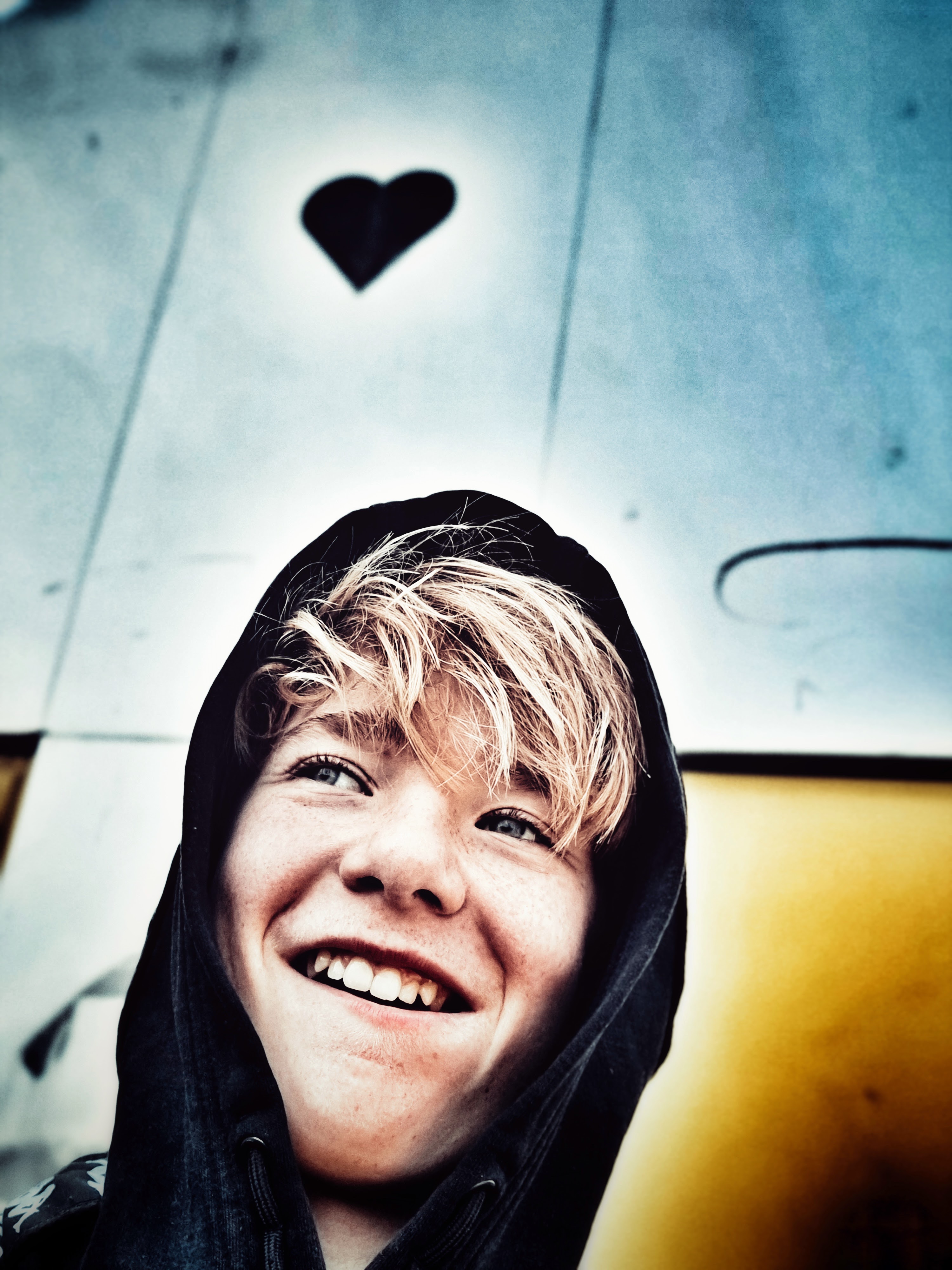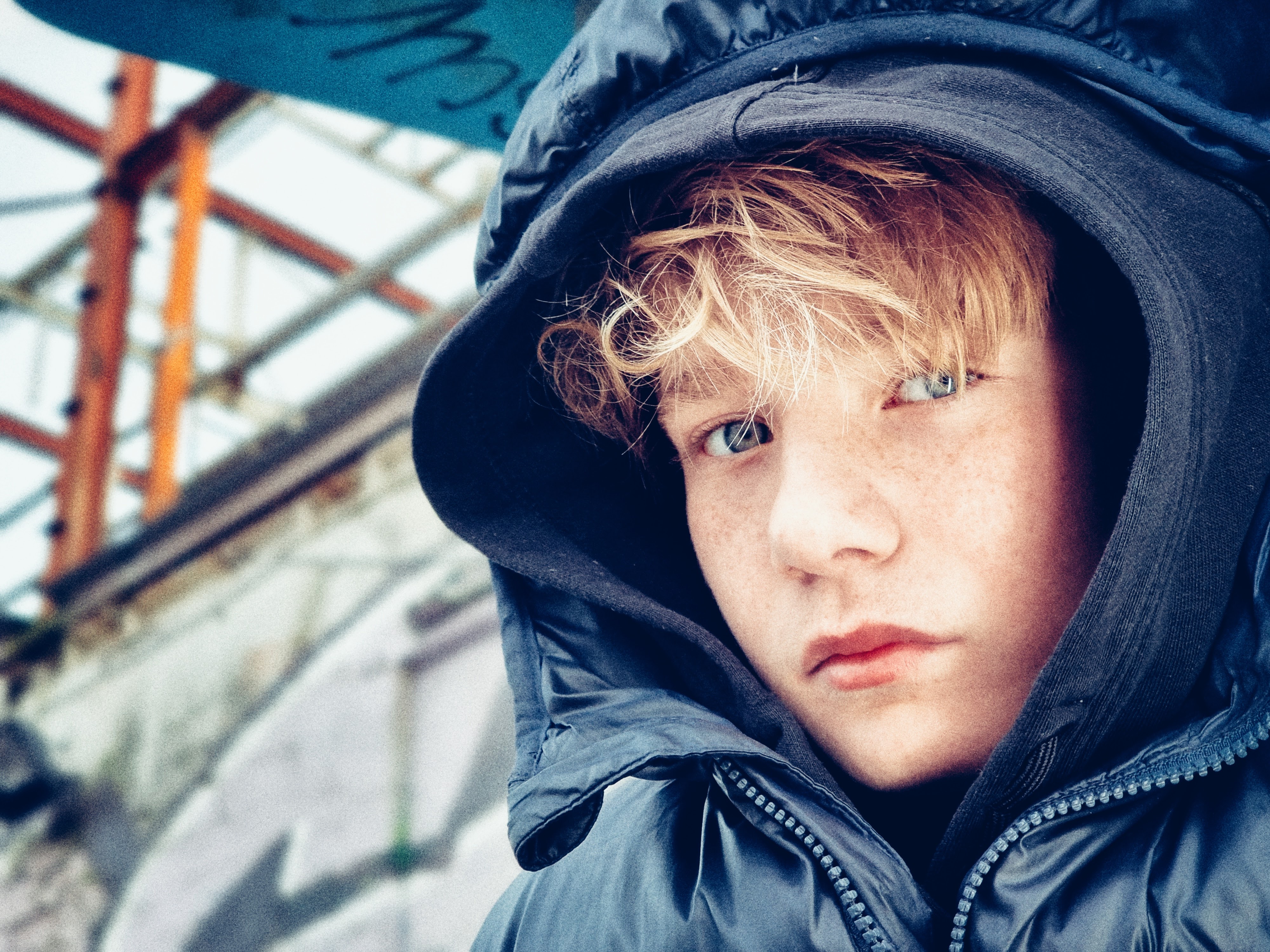 Tine Skovgaard, personlig assistent og koordinator for Enneagramstedet, havde tidligere prøvet et photoshoot, der blandt andet fik hende en tur på gulvet, og nu skulle hun bruge ‘nogle spændende billeder’ af hendes konfirmationsklare søn, Malthe. Så hun bookede et tretimersshoot, hvor vi mødtes på Roskildes hippe Musicon, et arkitektonisk misk-mask af kreativt nybyg med barakker og grafitti-indsmurt ‘gamle tider’.