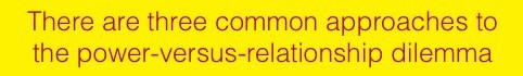 Fortunately, there's a way out of the trap. It requires us to challenge the common assumptions that either we can use power to get what we want ( at the cost of relationship ) or we can use relationship ( at the cost of power ). It calls to use both at the same time - engaging the other in a constructive and respectful confrontation. This is called a 'Positive NO'...