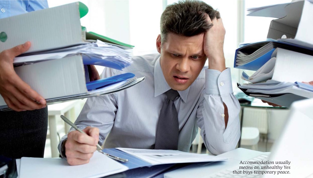 1. ACCOMMODATE : This is a situation when we say 'YES' when we want to say 'NO'
