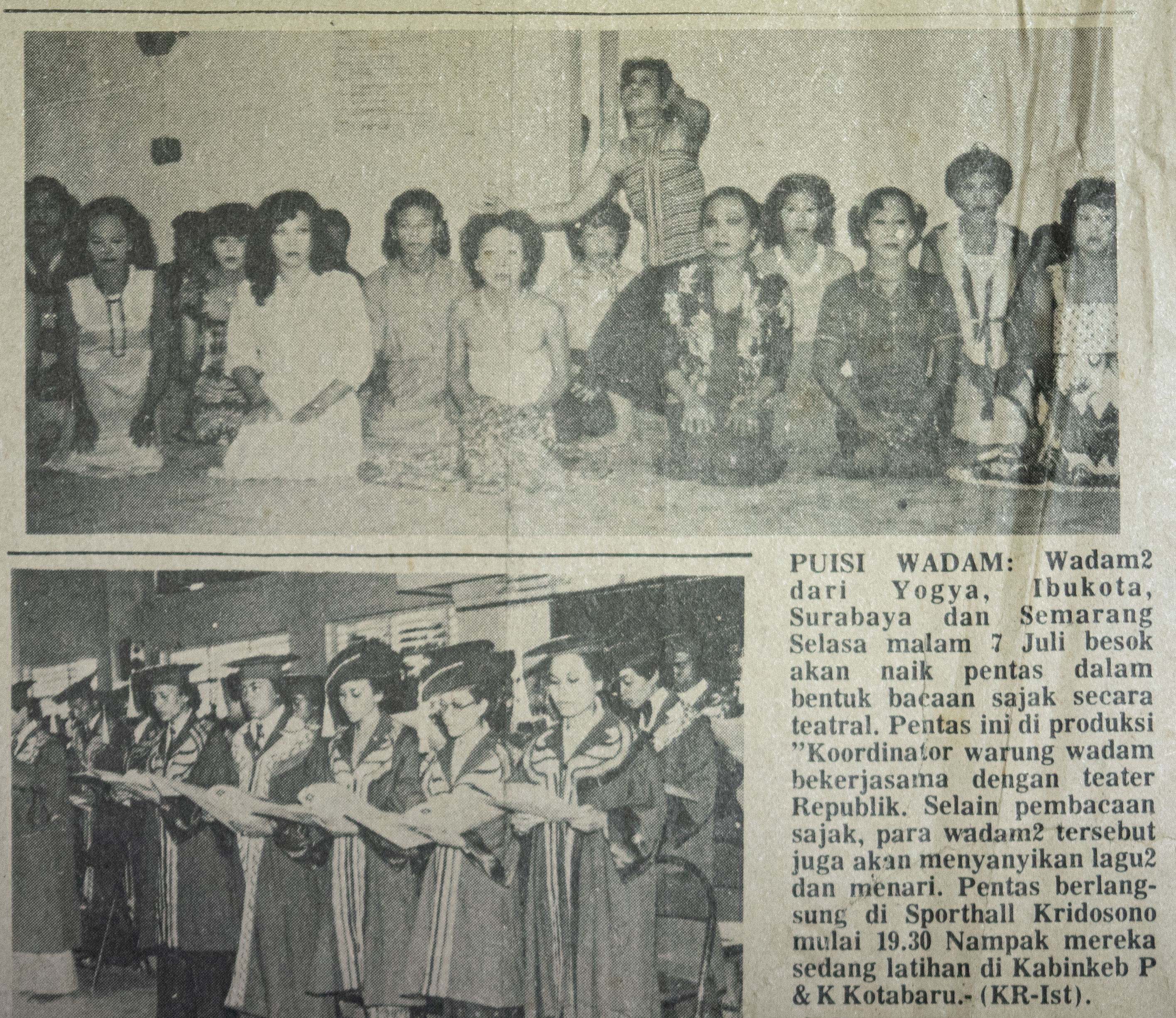 Pusat kegiatan Warung Wadam/Gado-Gado Wadam adalah lantai dua Toko Hien, di Jalan Malioboro. Di waktu yang sama, Teater Republik yang didirikan oleh Yoyok Aryo juga melakukan kegiatan di sepanjang area tersebut. Melalui pertemuan-pertemuan mereka, Teater Republik menyanggupi untuk melatih para transpuan membaca puisi, melakukan olah tubuh dan hal-hal teknis teater. Mereka mendukung rencana kelompok ini untuk mengadakan pementasan Poetry Dancing Manusiawi (PDM), 7 Juli 1980, di Sportshall Kridosono. Masing-masing anggota menulis sendiri pengalaman sebagai seorang transpuan dan protes atas ketidakadilan yang mereka dapatkan di zaman itu dalam bentuk puisi. Dibantu Teater Republik dan pemusik dari Akademi Seni Drama dan Film (Asdrafi), puisi yang mereka buat dipentaskan dengan disertai olah tubuh dan tari.