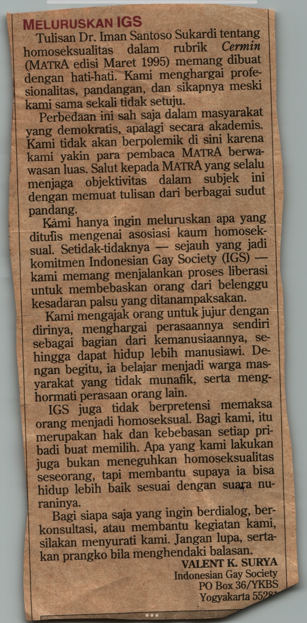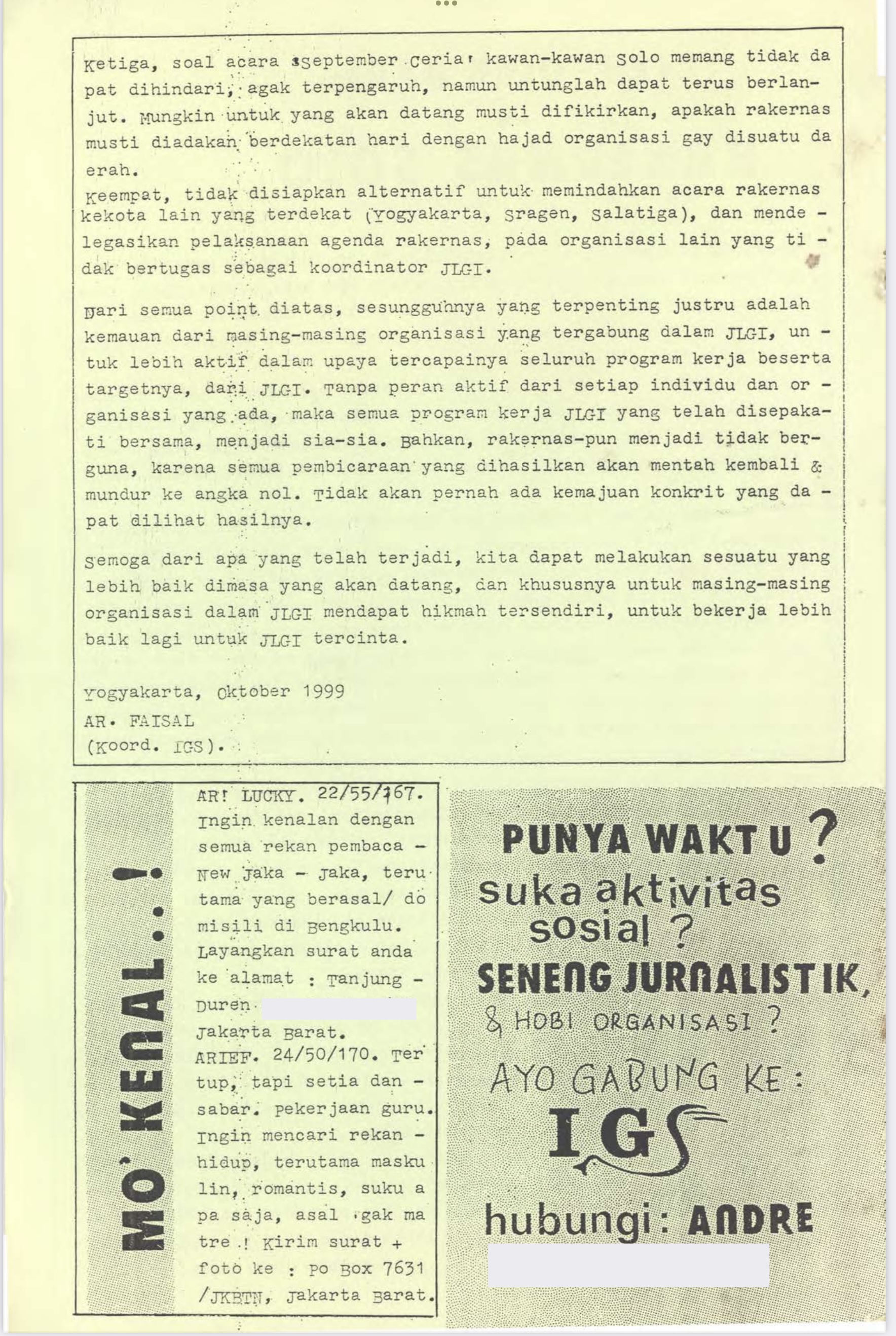 Queer Indonesia Archive berterima kasih kepada Kamu yang telah bergabung di perjalanan menelusuri salah satu koleksi kami. Materi-materi dari Yogyakarta yang ditampilkan dalam #ArsipTerbuka ini akan kami proses sebelum masuk ke database utama. Silakan cek website kami untuk melihat materi-materi lain.