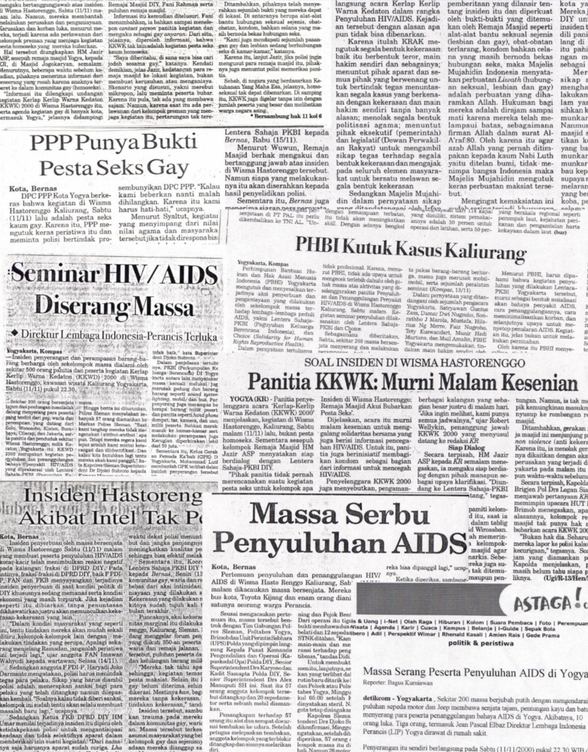 Puncak dari rangkaian persekusi atas kelompok queer di Yogyakarta terjadi di akhir tahun 2000 dalam KKWK ke-2 di Kaliurang. Acara ini direncanakan setiap tahun sebagai wadah pertemuan jaringan yang didukung oleh Lentera. Misi utama mereka adalah diskusi dan sosialisasi hal-hal yang berkaitan dengan kesehatan publik dan HIV/AIDS. Sialnya, kegiatan ini mendapatkan penyerangan tiba-tiba oleh kelompok Gerakan Pemuda Ka’bah.