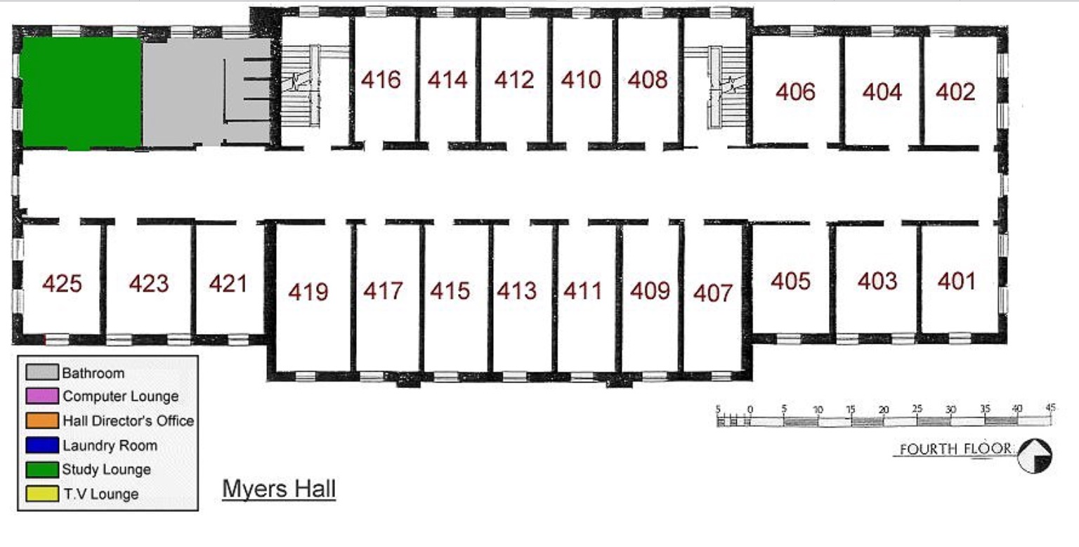 An urban legend of Myers Hall involves a horse that haunts the dorm and can be heard galloping in the Hollow behind the dorm. According to the tale, Myers Hall was used as a Civil War hospital to house ill soldiers. As speculated, a general of the war staying in the hospital requested to see his horse before his death. However, after the visit the animal was unable to take the flight down the front stairs and was shot. Since then, the spirit of the animal is said to live on in Myers Hall.