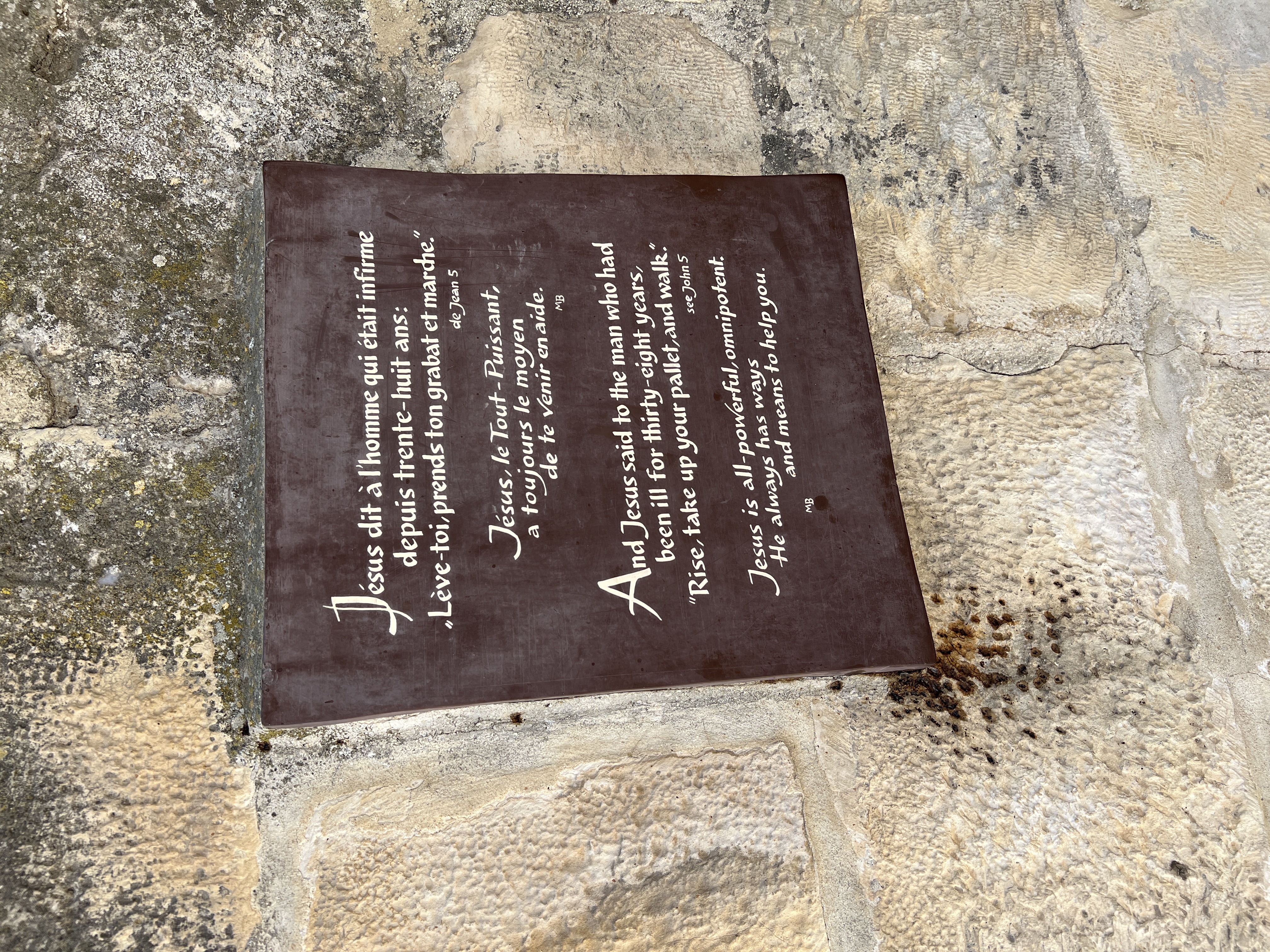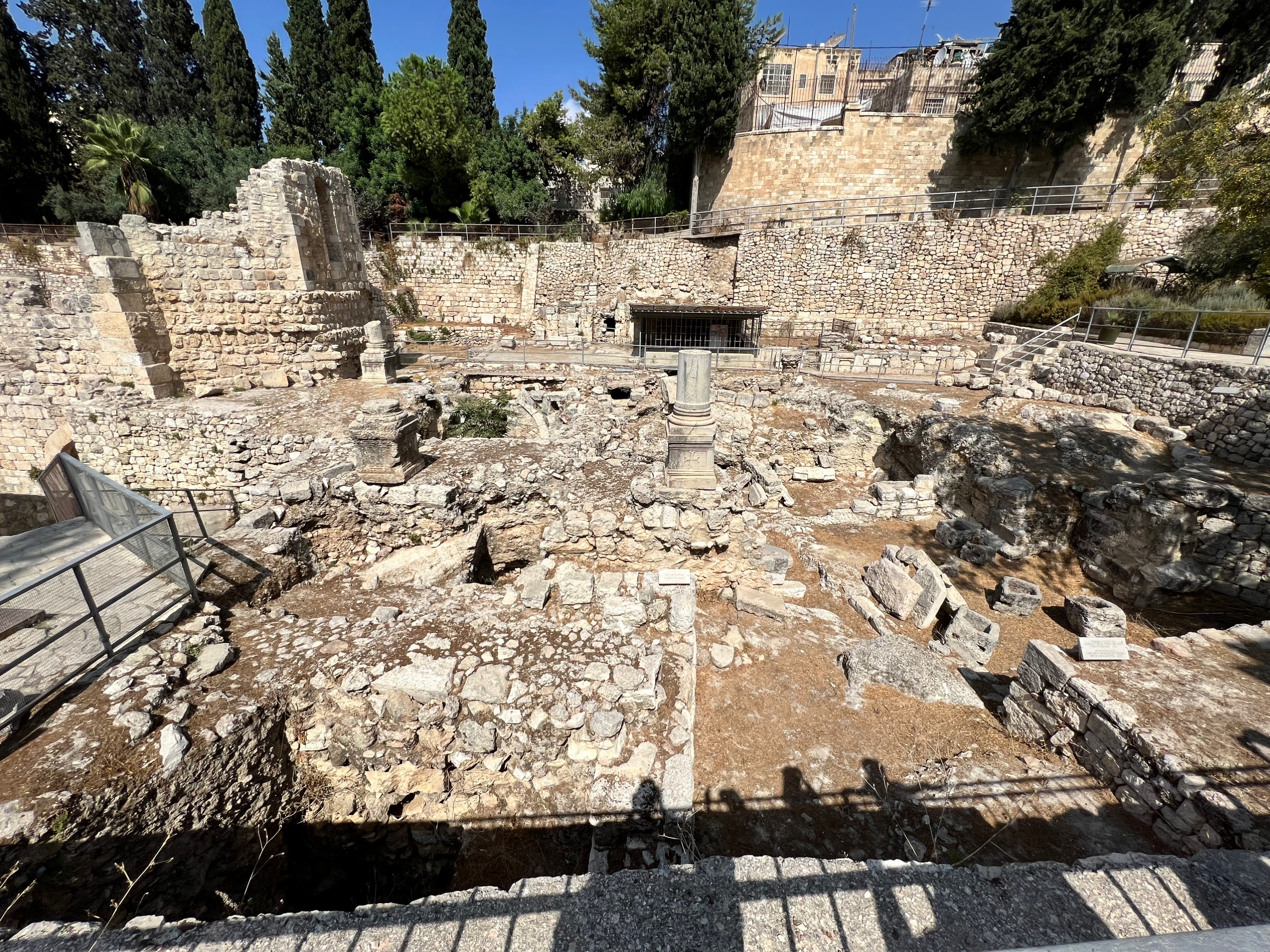 Wir erreichen den Ort Bethesda und können die Ruinen der Säulenhallen am ehemaligen Teich Bethesda anschauen. Hier heilte Jesus den Mann, der 38 Jahre auf Heilung wartete.