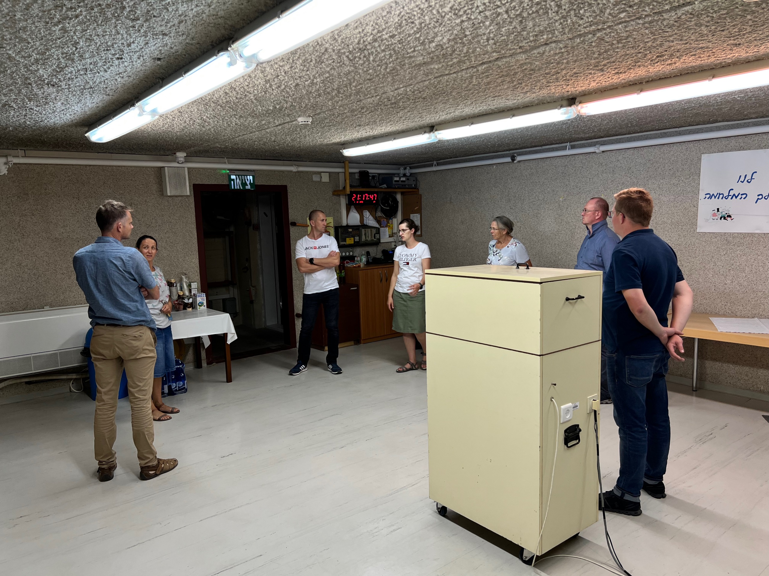 Wir machen einen Rundgang auf dem Hof. Dabei hören wir die Geschichte von dem Tag, als 2013 hier eine Rakete eingeschlagen ist. Da das Gebiet nah an der Grenze zum Libanon gelegen ist, braucht man hier Schutzräume und Bunker für den Notfall. Judith, die uns in Empfang nimmt, sagt: „Wenn ein Signal ertönen sollte, hat man maximal 30 Sekunden Zeit, um zum Schutzraum zu gelangen.“ Wir schauen uns verduzt an. Gut, dass die Lage hier derzeit entspannt ist und es sehr selten zum Alarm kommt.