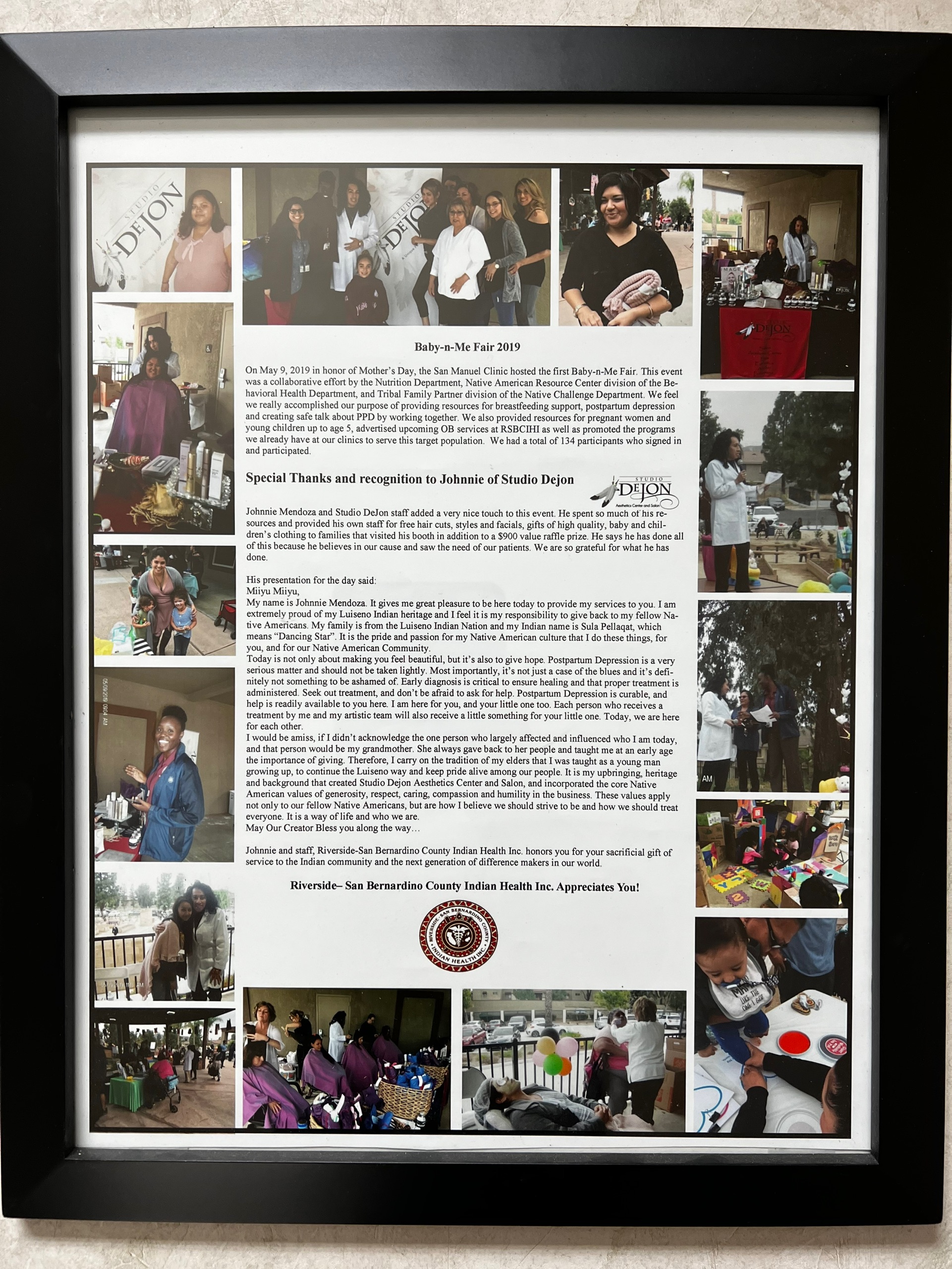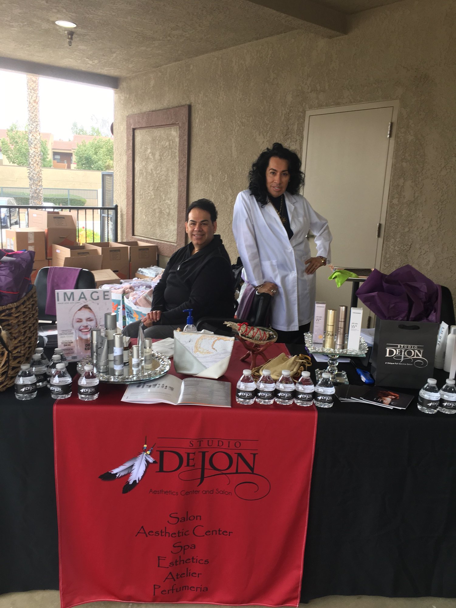 Studio Dejon, a Native American owned and operated full service salon and aesthetics center located in Riverside by Johnnie Mendoza, is the artistic director/educator and the strength behind this fast growing and thriving business. Johnnie graciously came out in full force to give back to his people at San Manuel Indian Health clinic community! Studio DeJon staff provided in salon facial treatments customized for each customer and spoke to our mothers about their hair and gave them a great style, some of which said they never had such a wonderful experience. Others were totally grateful and couldn't speak enough about Studio DeJon. For over four hours, they started cutting hair and providing skin care analysis without so much as a five minute break! They kindly donated three large beautiful baskets full of an array of hair and skin products that were raffled.