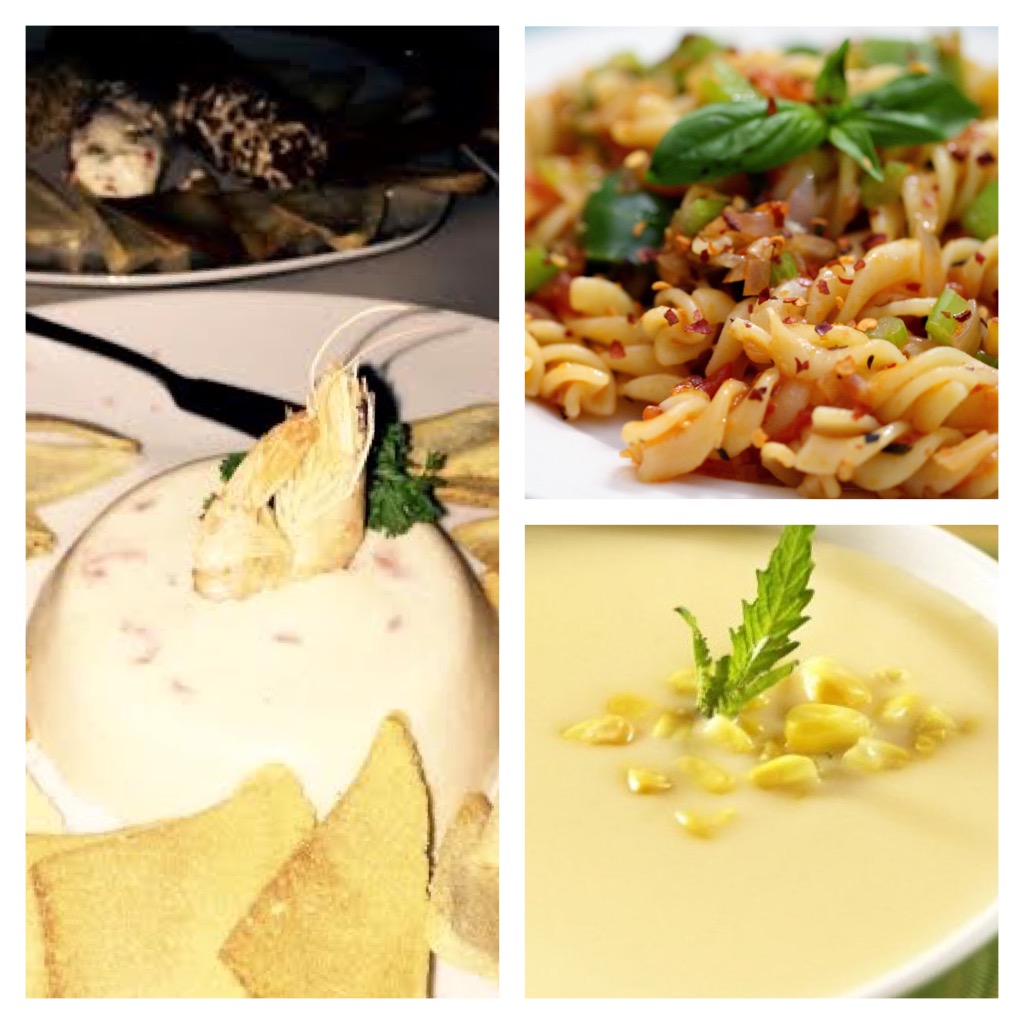 Entradas, ensaladas, pastas, cremas