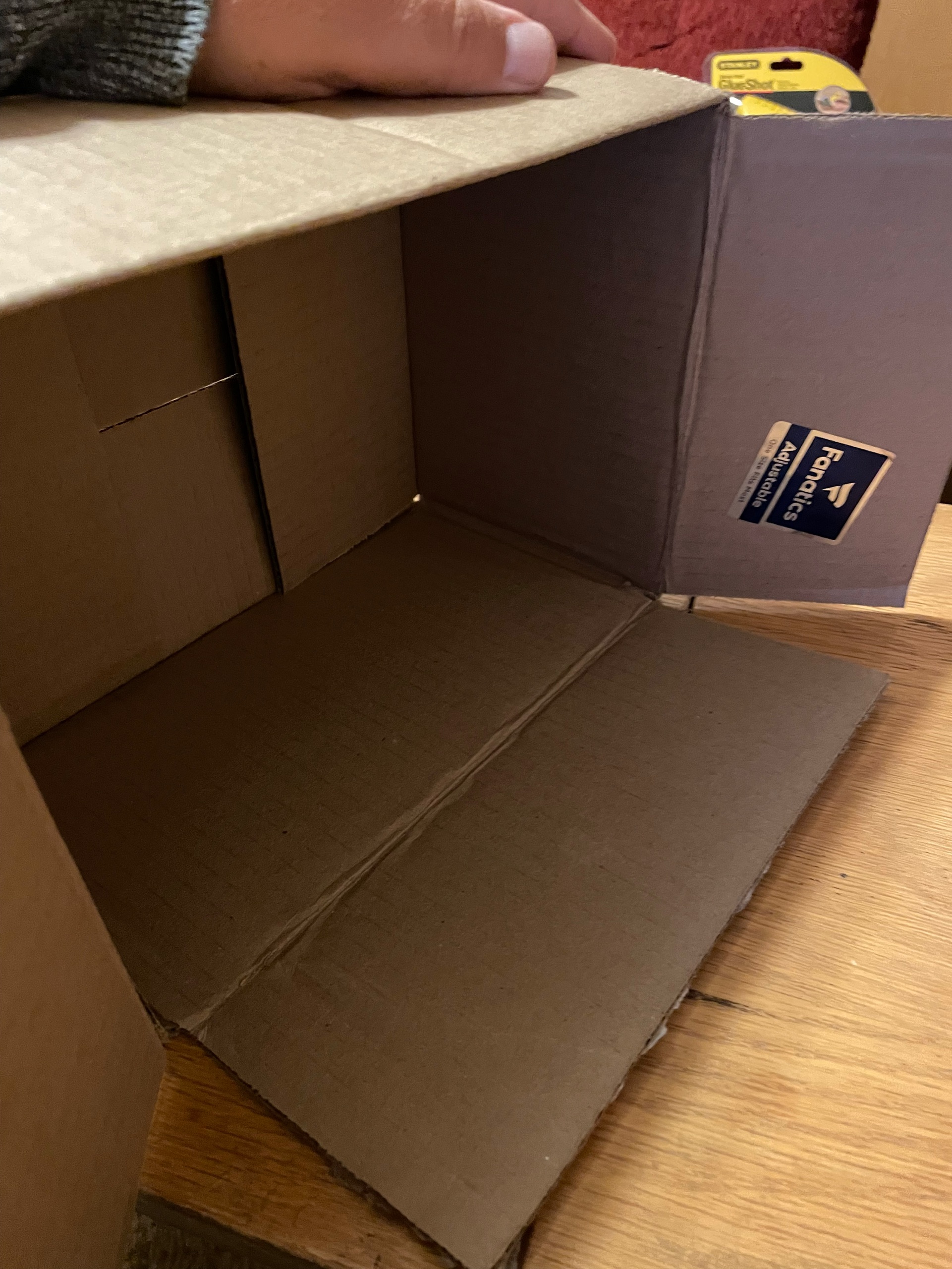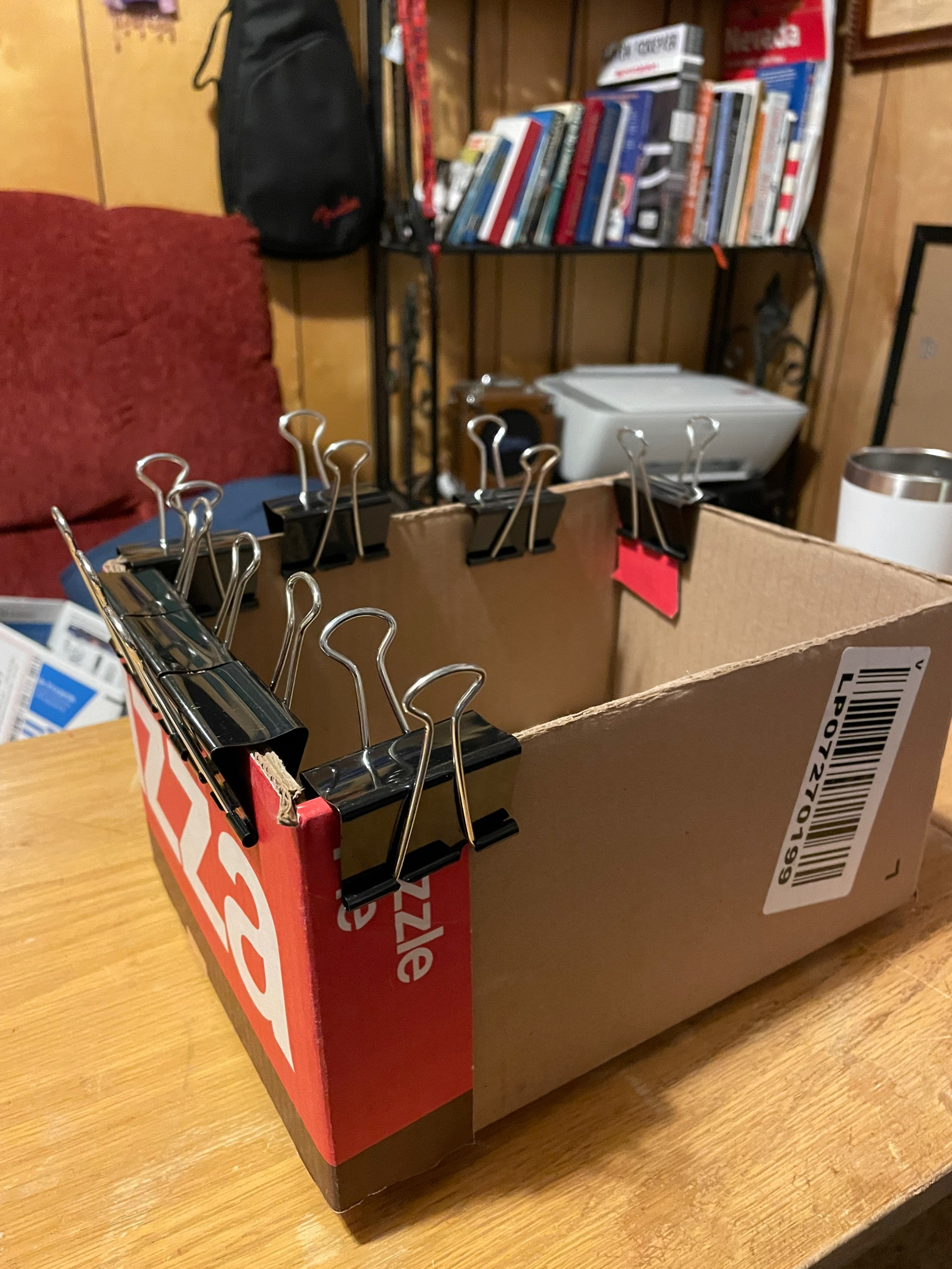 i've been keeping it under control in a cardboard box. it's the box my seattle kraken trucker hat came in.