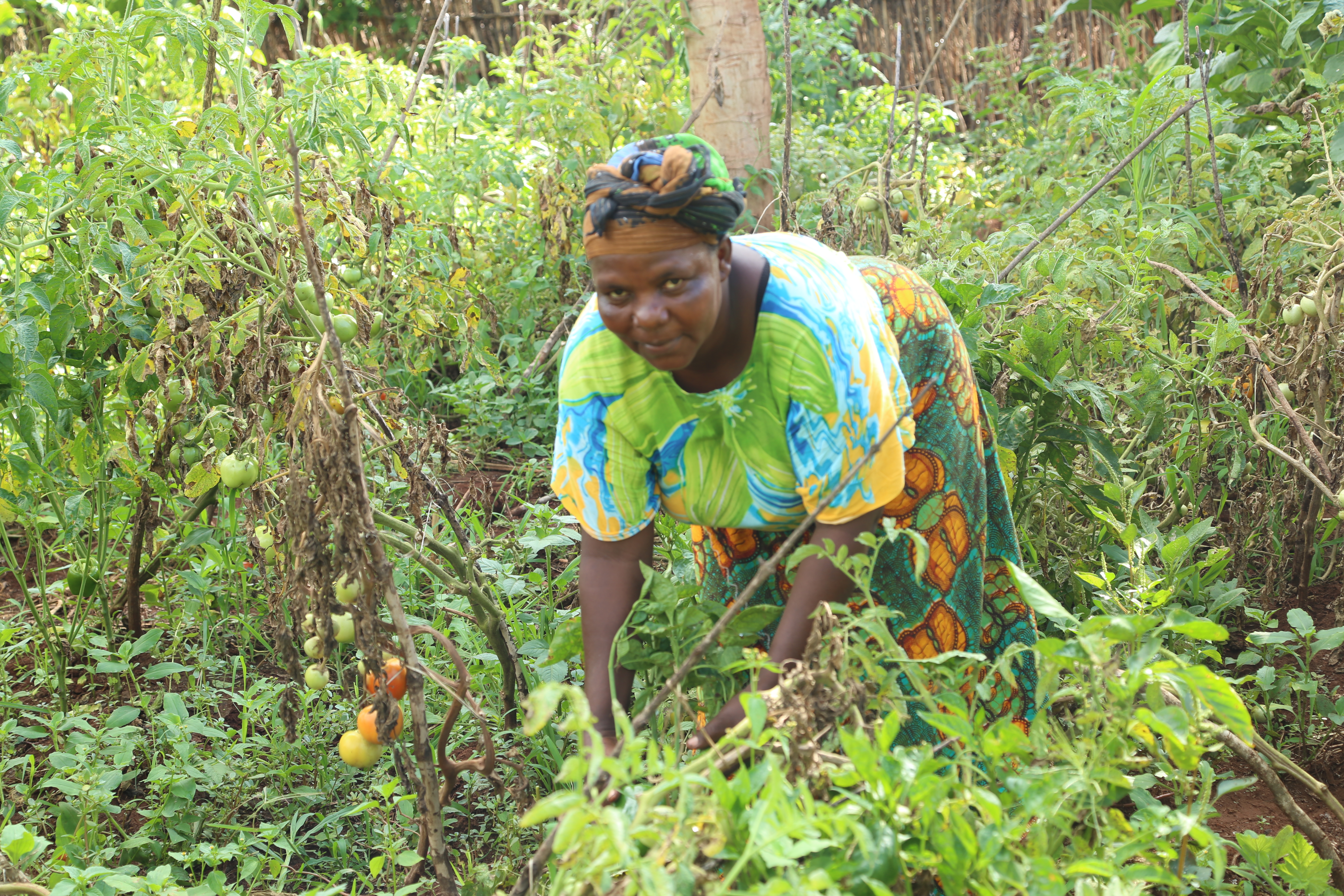 Vegetable vendors from the nearby markets come directly to her farm to buy tomatoes at wholesale price for later retailing. Paschal also contracts a local bus company to deliver her produce to far off markets where she has clients including one that is nearly 100km from her village.