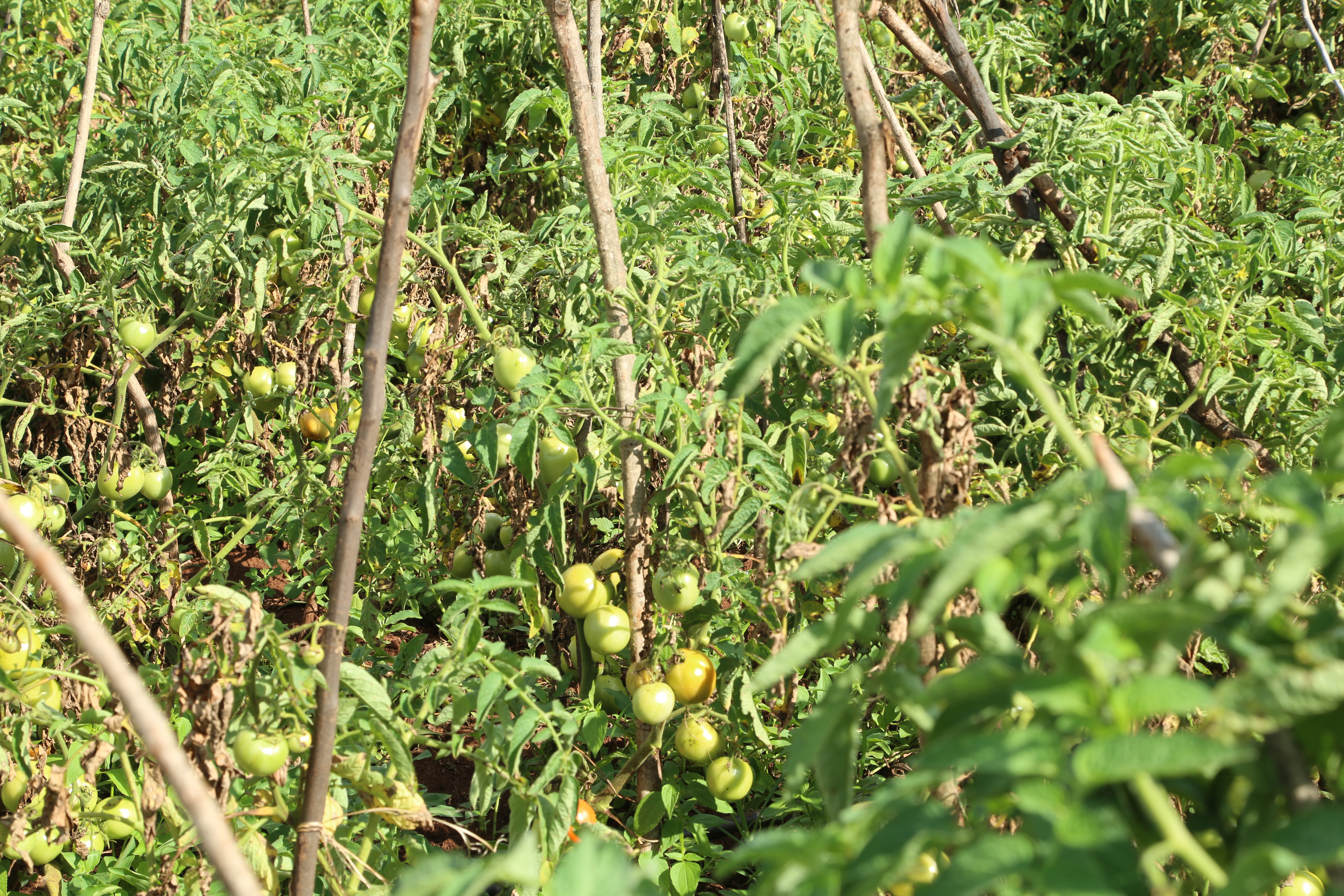 Monica also explains that she is not just a passive learner from the project. Depending on circumstances, she sometimes modifies or finds alternatives to some of the challenges. For example, she explains that while the Africa RISING project staff have always advised them to prune the tomato plants at certain stages.She didn't do it this time because she felt the weather was not right and pruning would expose her tomato fruits to the sun hence causing them to ripen faster than she wants them to.