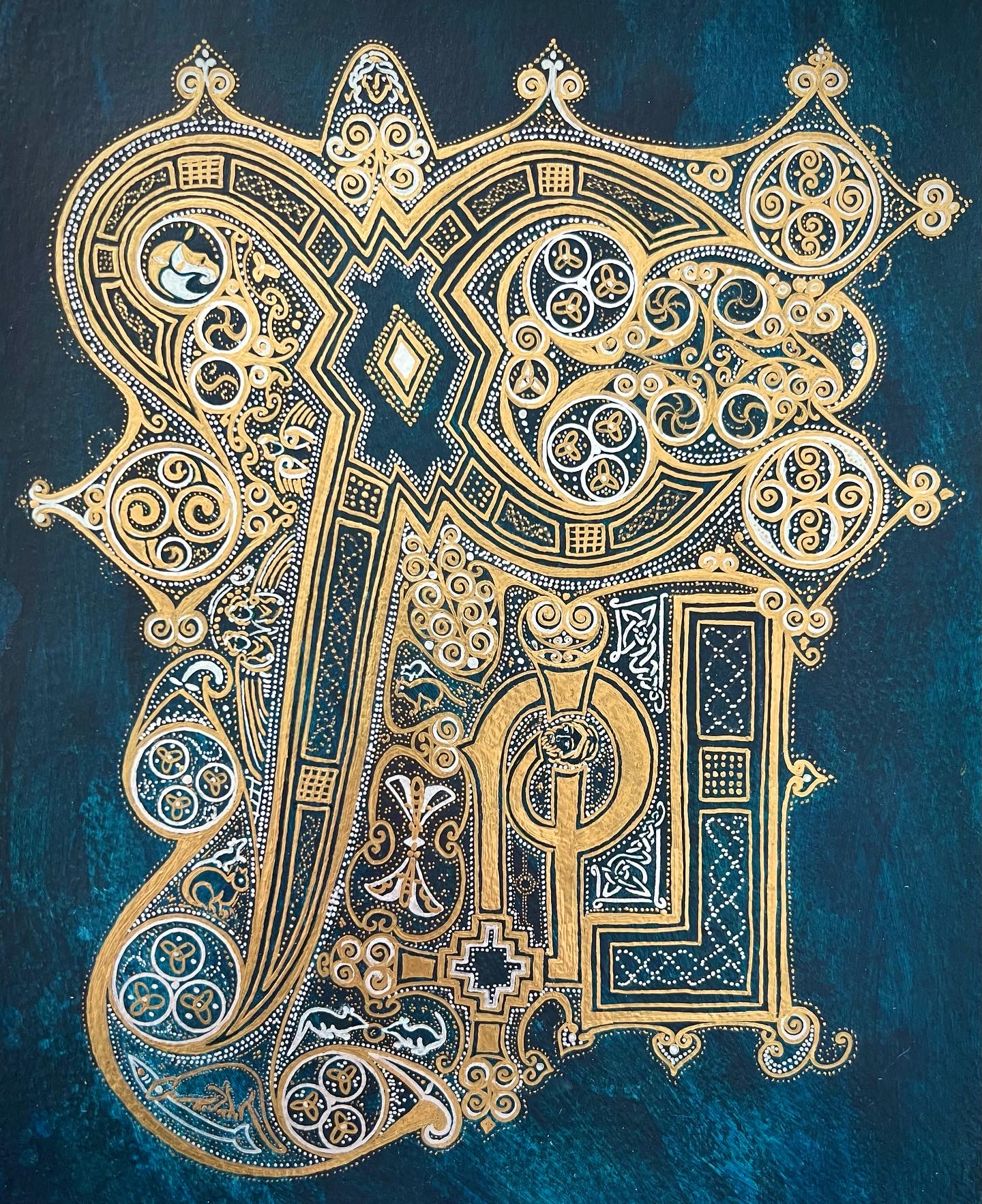 Looking at the intricate details is something I love in making art. I finished my work on an art piece after the Chi Rho page from The Book of Kells Gospel volume in early 2022. I started this piece last year in December. It is a very elaborate and embellished, filled with all kinds of exquisite detail, visual of Christ’s monogram consisting of the Greek letters XPI. The X is that dancing shape accented with a diamond (also a symbol of Christ according to the ancient Celtic Christians) at its cross section. If you are unfamiliar you can read about this project here in my newsletter from last Christmas.