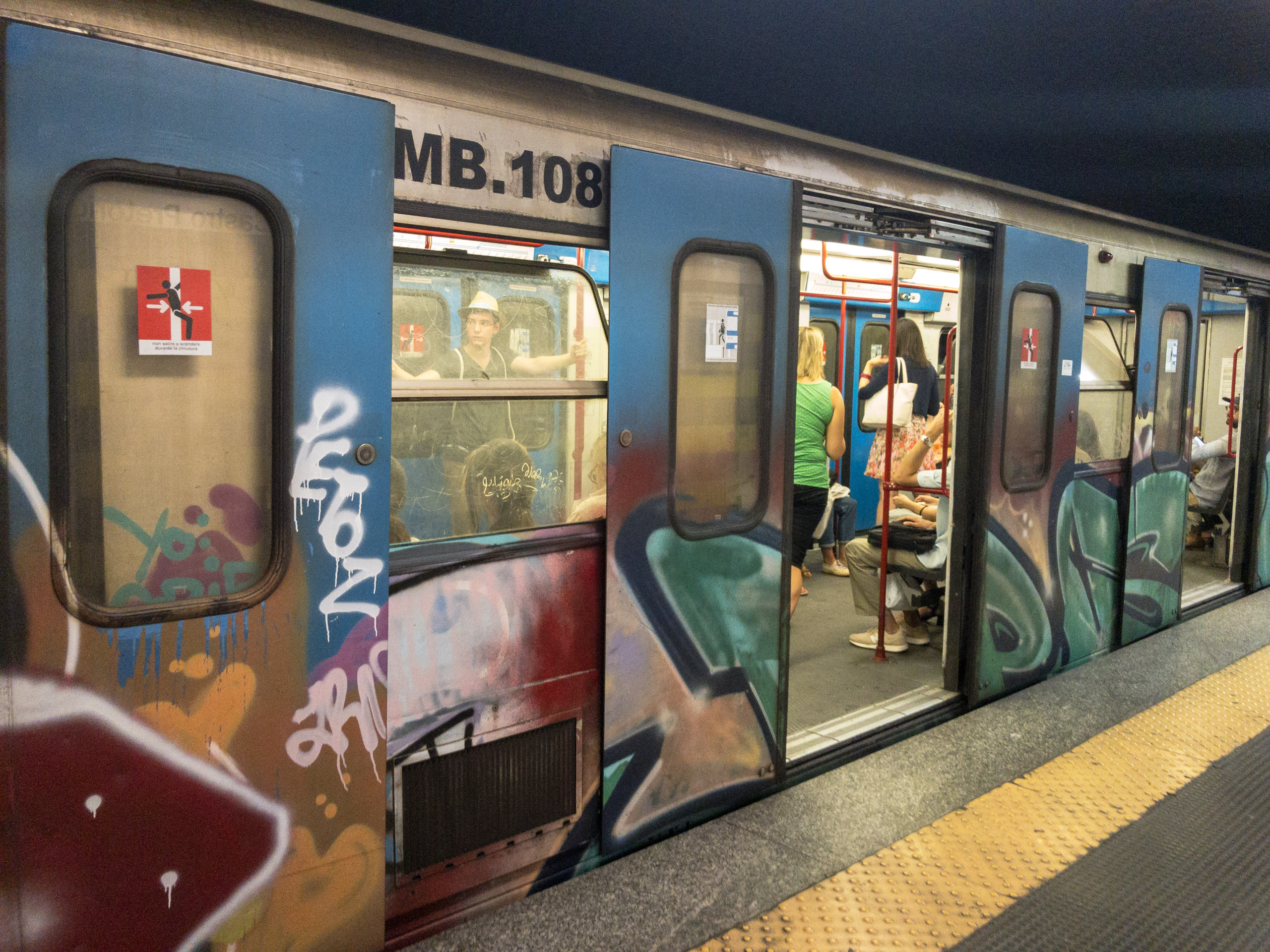This morning we rode the subway to the colosseum. Not a Ram fan in sight, but we did encounter a young man in a “Rivers” Chargers basketball tank. A chuckle to start the day. The Roman Metro is much like those trains in DC, the Bay Area, and in Los Angeles, albeit with more graffiti contributions.