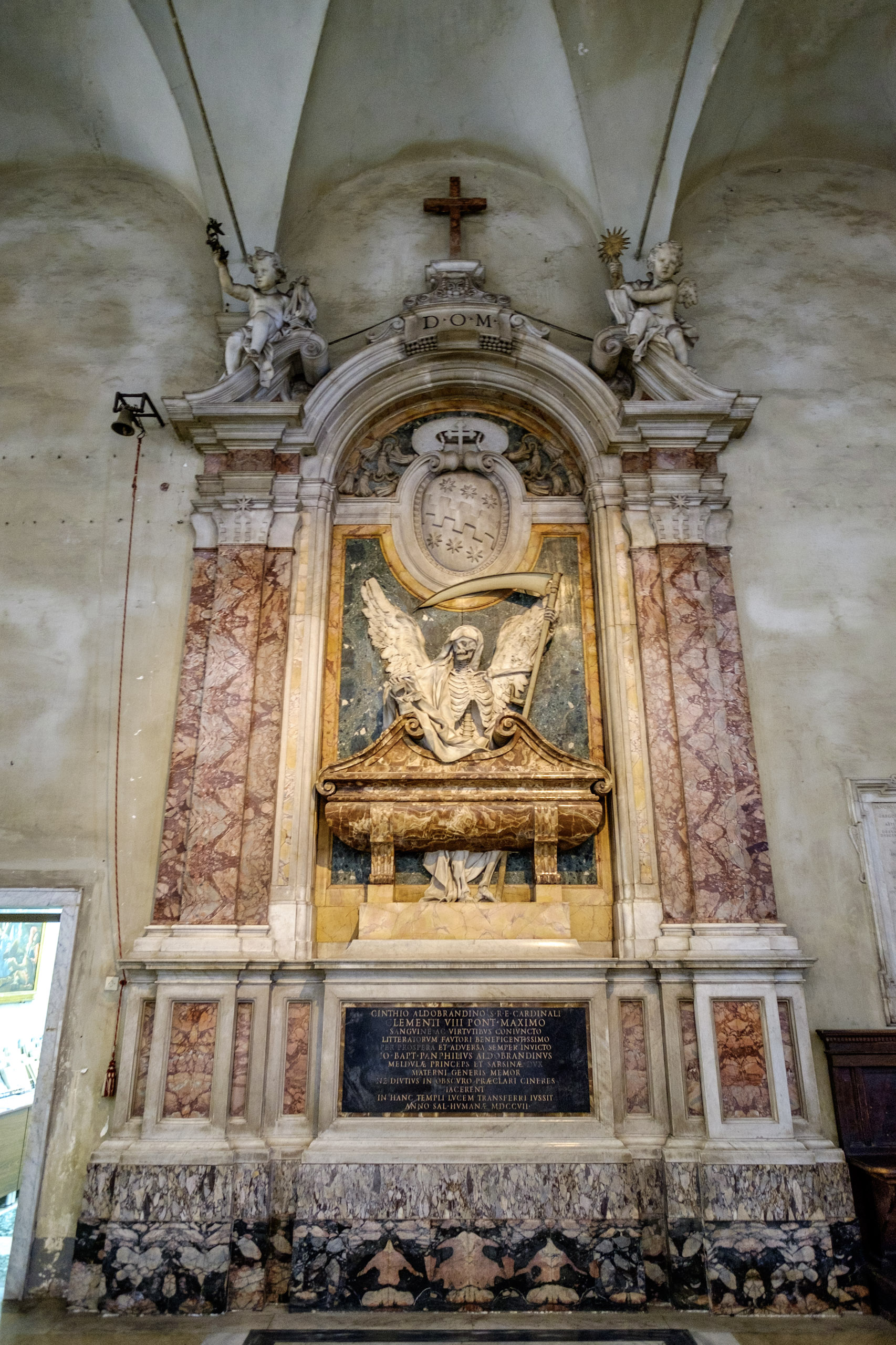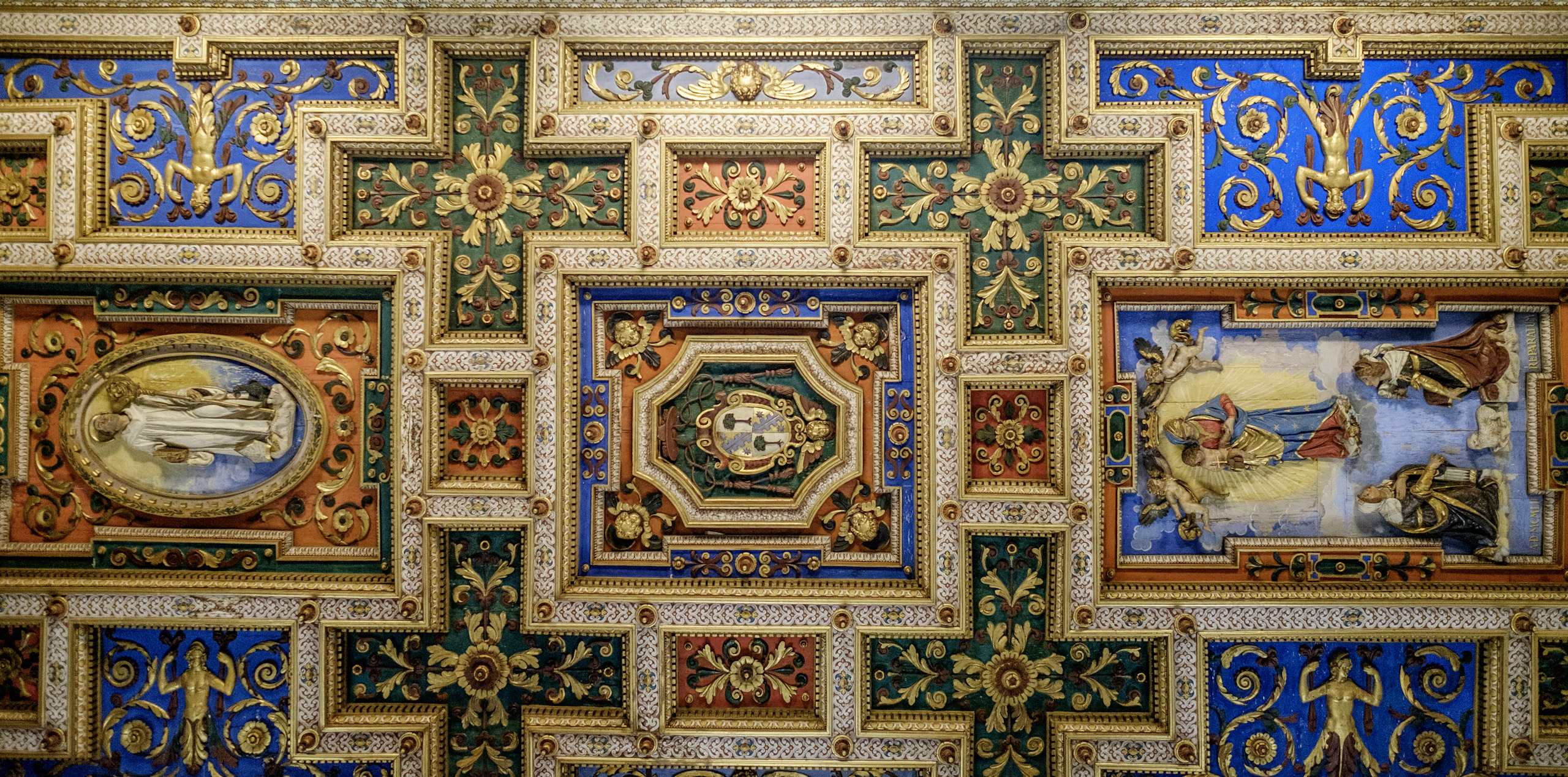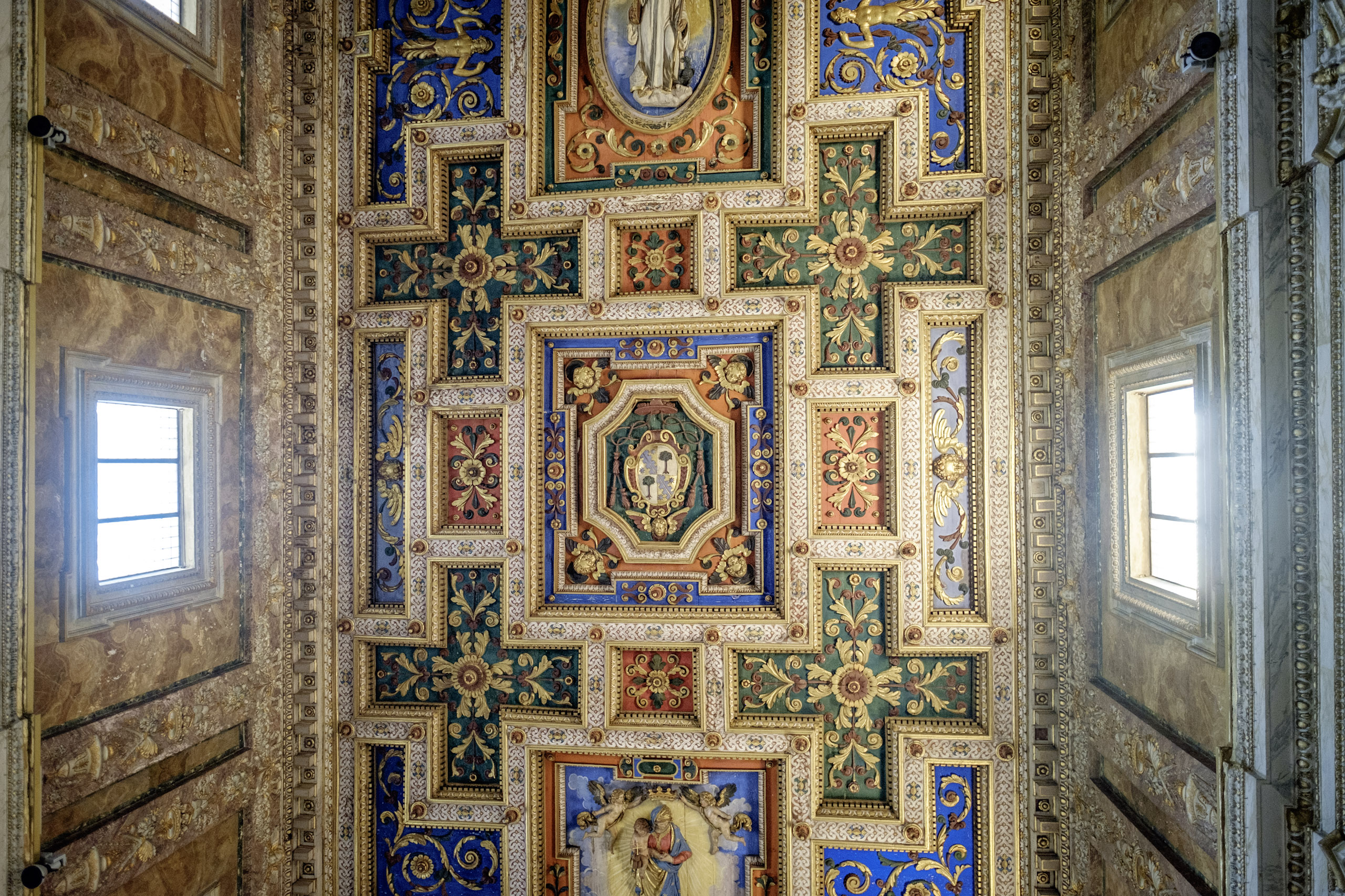 We get to the church - San Francesa del Roma, only to learn that it appears to be shuttered tight. What of the gathering crowds waiting in its shady grounds? It takes a few moments, but we learn that the side doors are open and inviting, though the main entrance is not. San Francesa does not disappoint either, with its ornate, three-dimensional ceilings. We linger and wander the sanctuary.