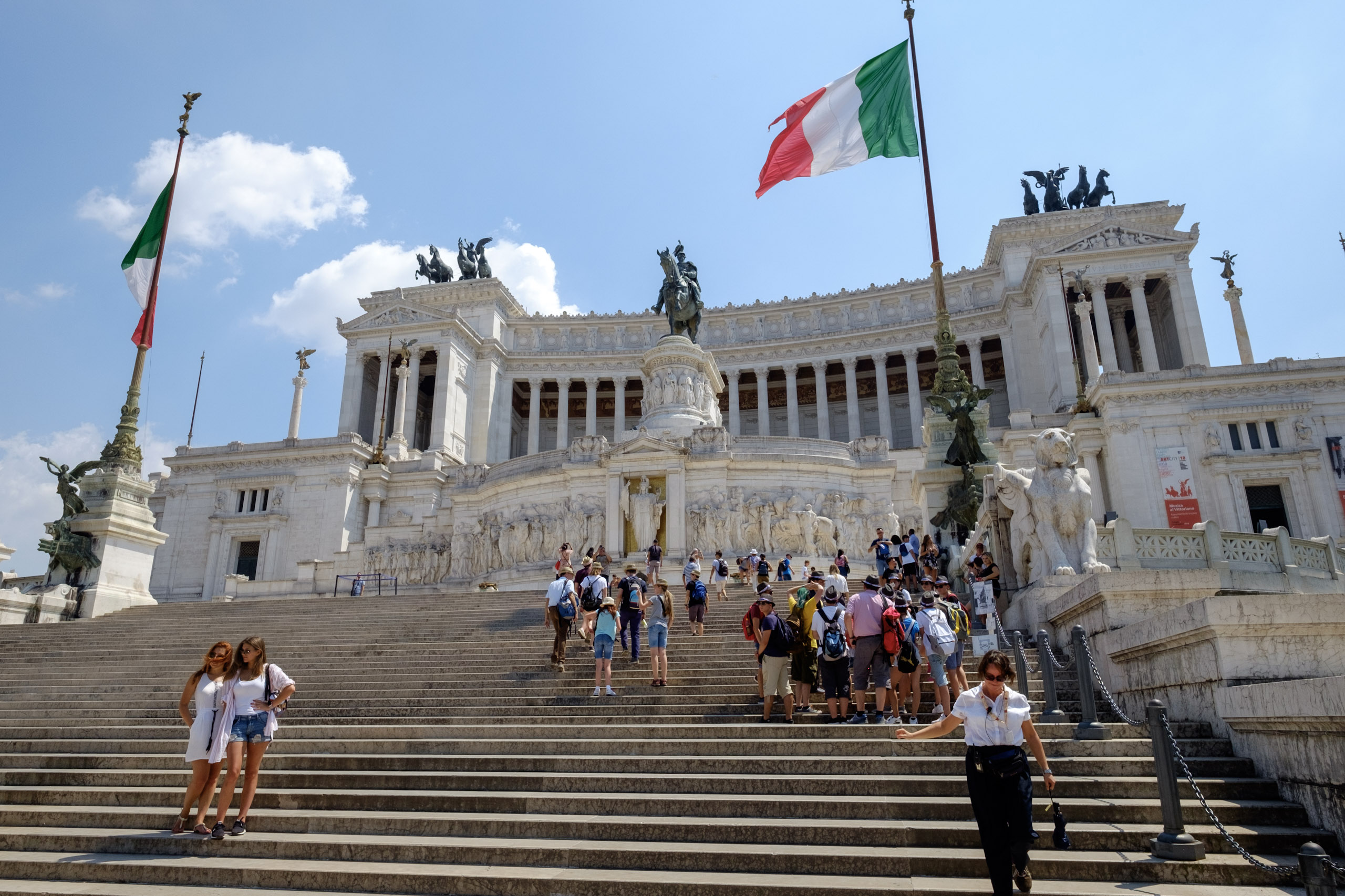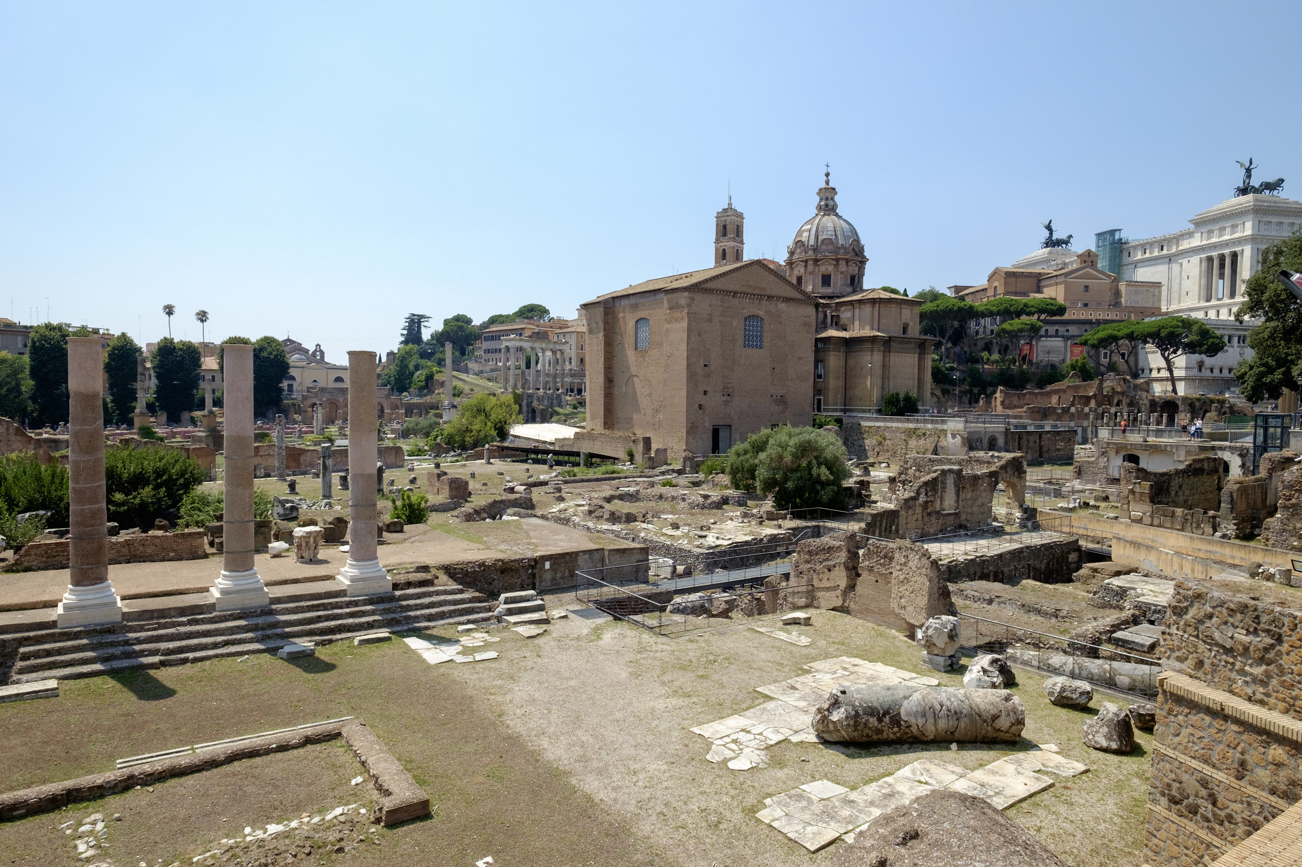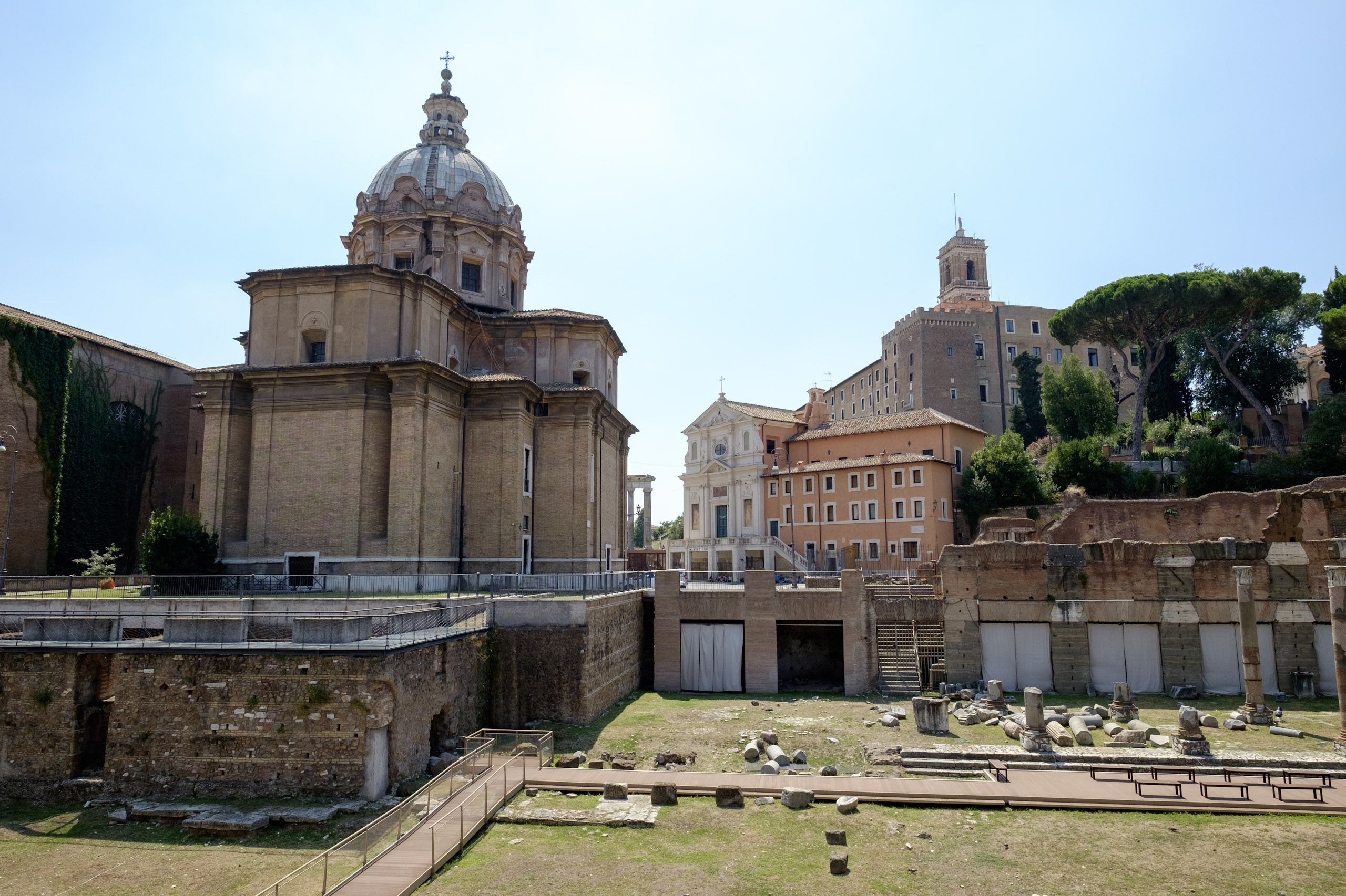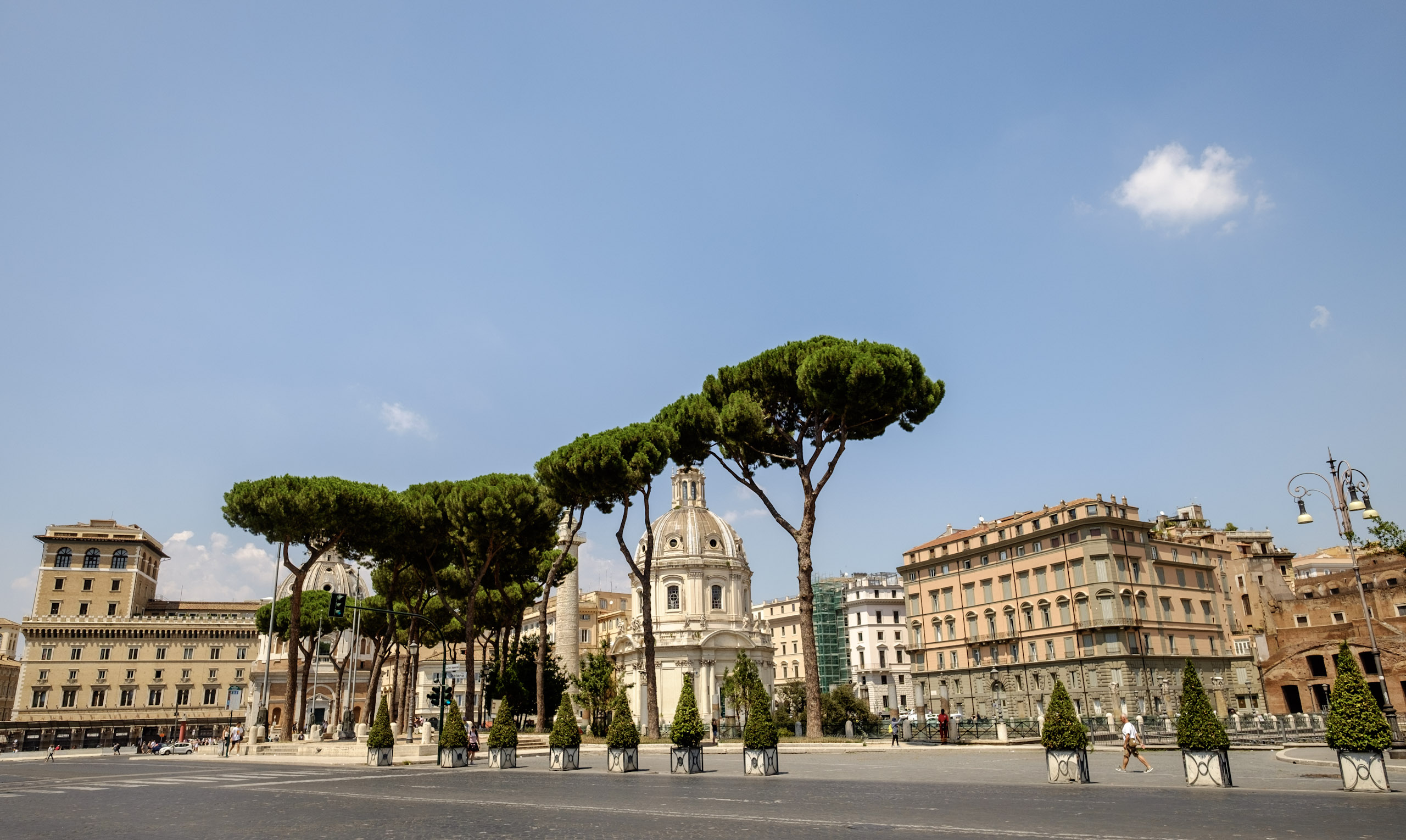 Learning is difficult, learning the hard way is more so. We learn the hard way that Rome is not laid out in a street grid but in a series of circular arcs. We come around a curve expecting to see our objective, but find instead a chunk of the ancient city wall. What of the disappearing bell-tower? We continue moving away from the Colosseum, hoping to reacquire our target on the horizon. Instead we happen upon a museum structure which surely must be the inspiration for Caesar’s Palace in Vegas. One can almost here the casino bells and dings in the distance. Along the way we notice the masses doing what we have done all the way, dodging in and out of shade, desperate to beat the oppressive heat. We are content to capture images of the exterior only, and then realize that our St. Andrew’s Spire is again visible on the horizon back in the direction we came. We set out again, spying an alternate route.