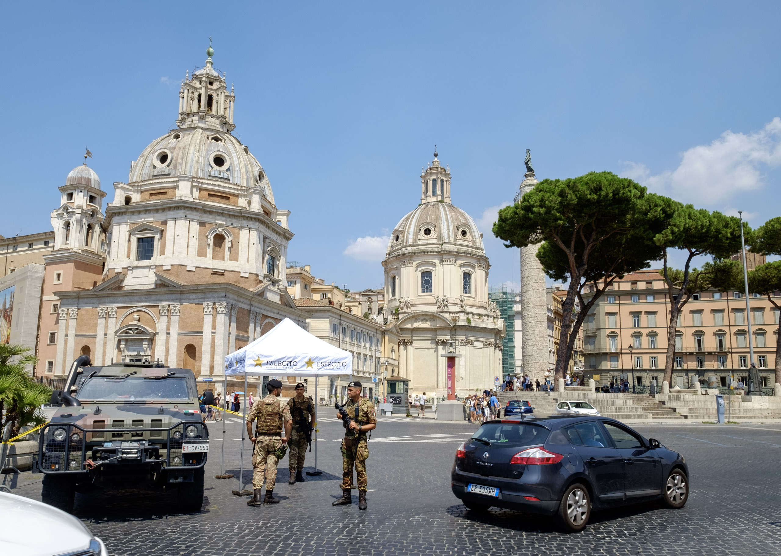The structure is magnificent. It is larger than expected, and it is located in a center of activity. It is also well-protected by soldiers in military uniform, brandishing high-powered rifles, a reminder that this is by no means an insular part of the world. The structure is teeming with people already, and at multiple levels. Knowing what tomorrow promises helps temper our envy. We decide to move toward one of the churches our would-be guide directed us to, the Basilica de San Clemente - an old structure built atop two progressively older ones. It does not disappoint in any way but one; it is hard to find even with the 21st century navigation tools.