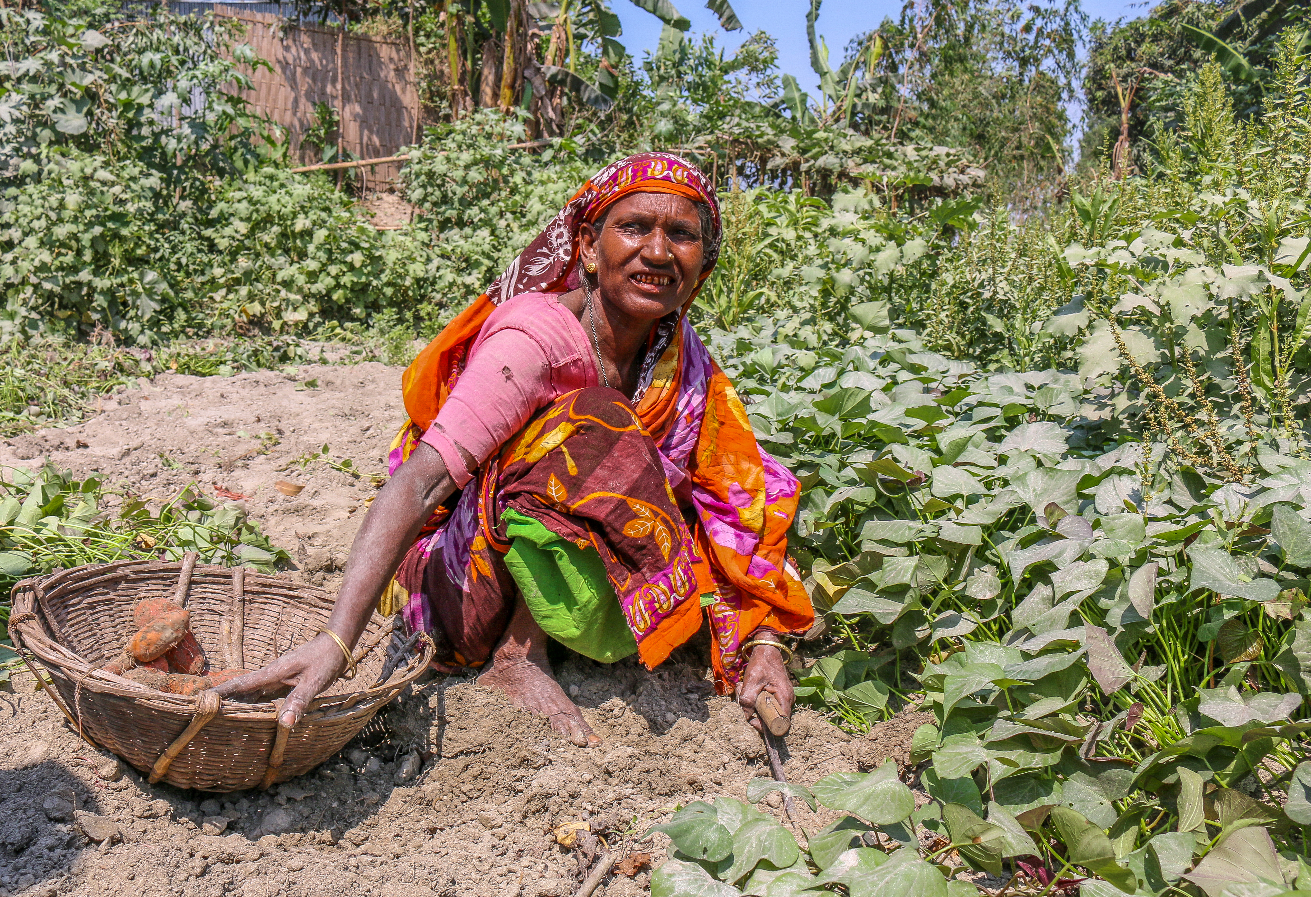 Around 51 hectares (or 378 bighas which is the traditional unit of measurement of area of land) owned by 2,500 local farmers who had been affected by natural disasters such as flood and river erosion were introduced to OFSP through a DFID funded project called Scaling up Sweetpotato through Agricultural and Nutrition (SUSTAIN). Led by CIP, the project has ushered in new hope for a group of farmers from Fulchhari and Sadar upazilas (a sub-district) where the crop is proving to do well.