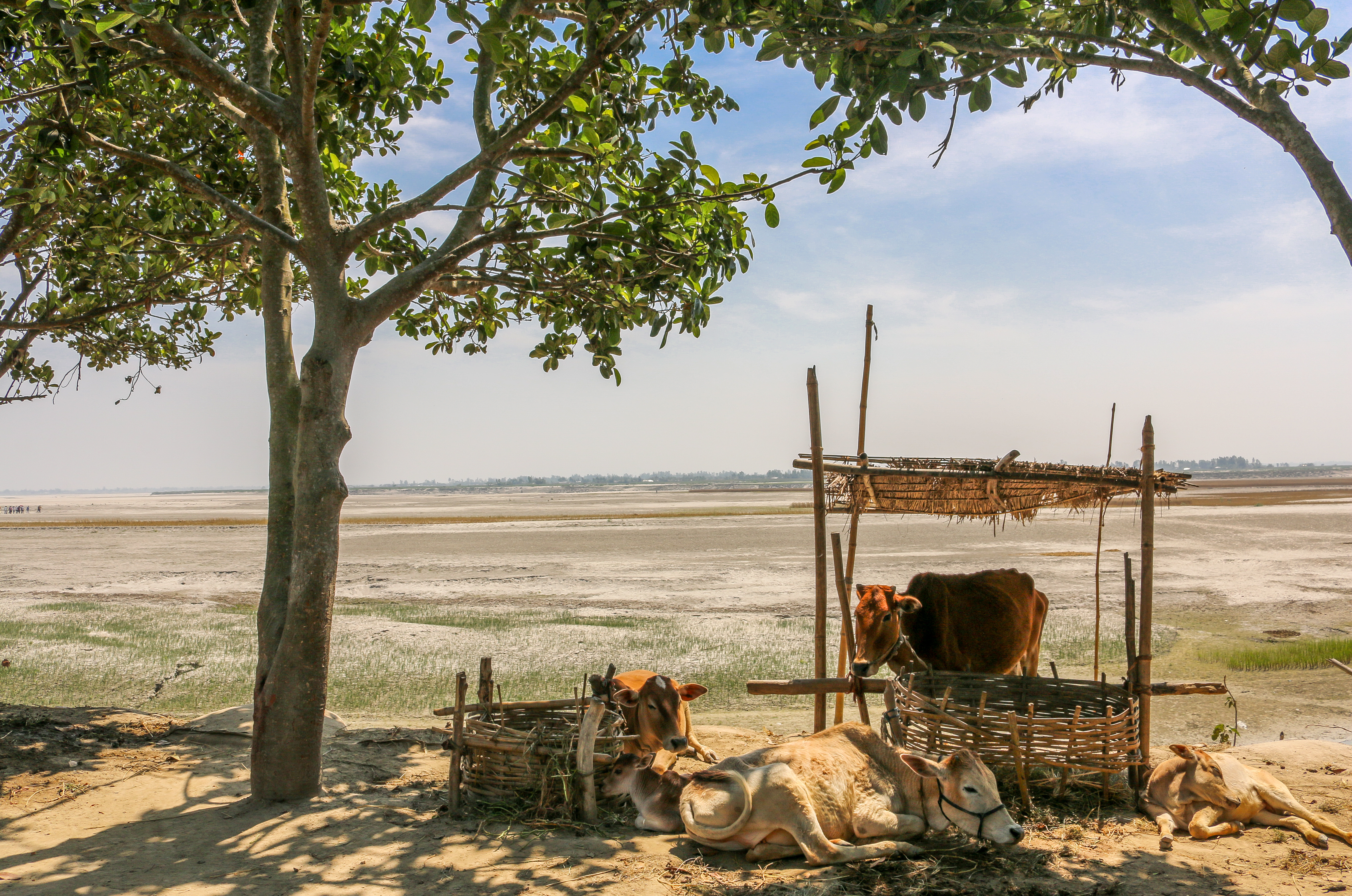 It is late afternoon on the banks of the Brahmaputra River and the heat of the day is finally subsiding. As the sun slowly begins to sink towards the horizon, the light turns golden and farmers, who have been outside working in the hot sun all day long, breath a tiny sigh of relief as the heat dissipates just a little.