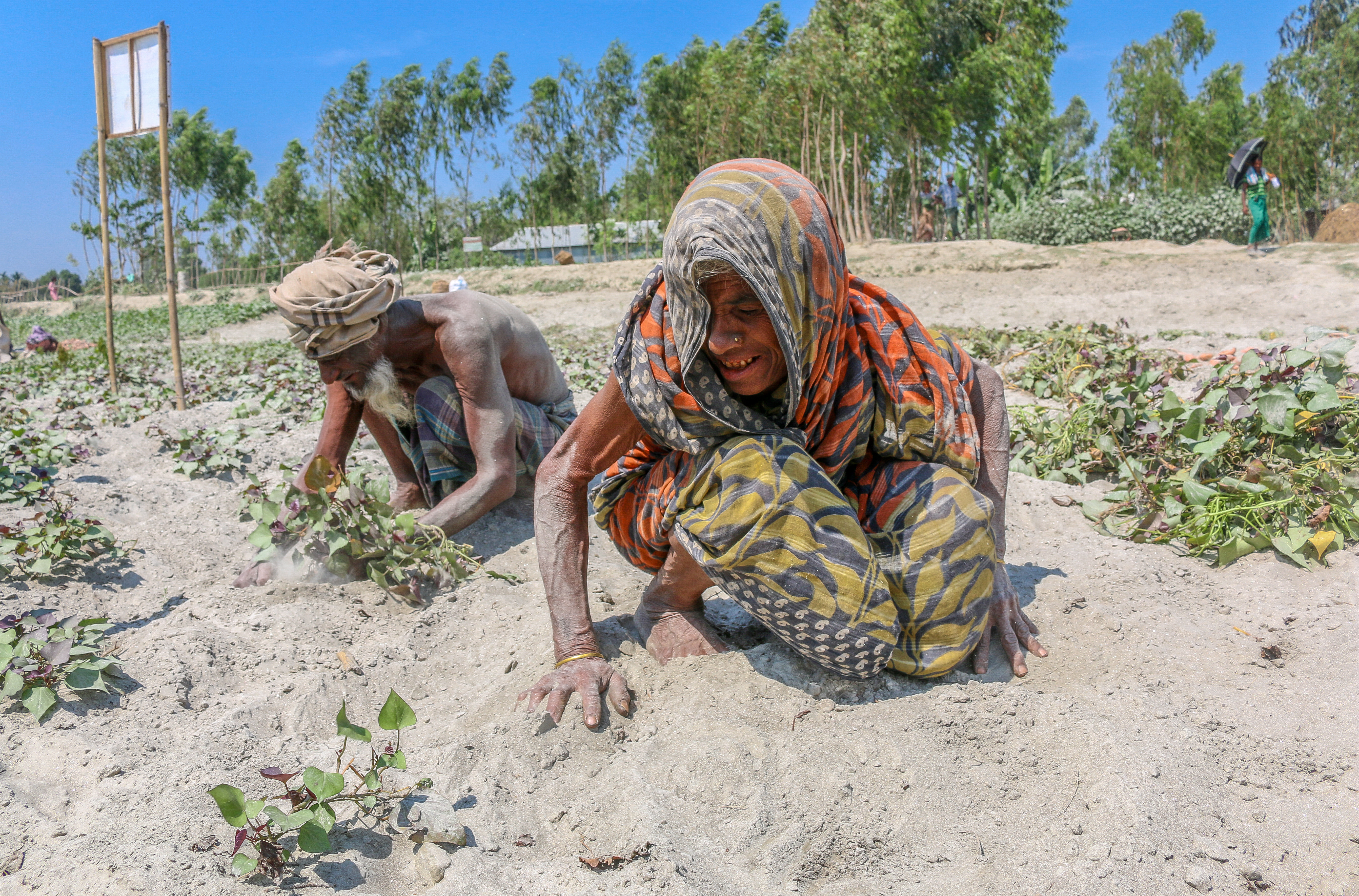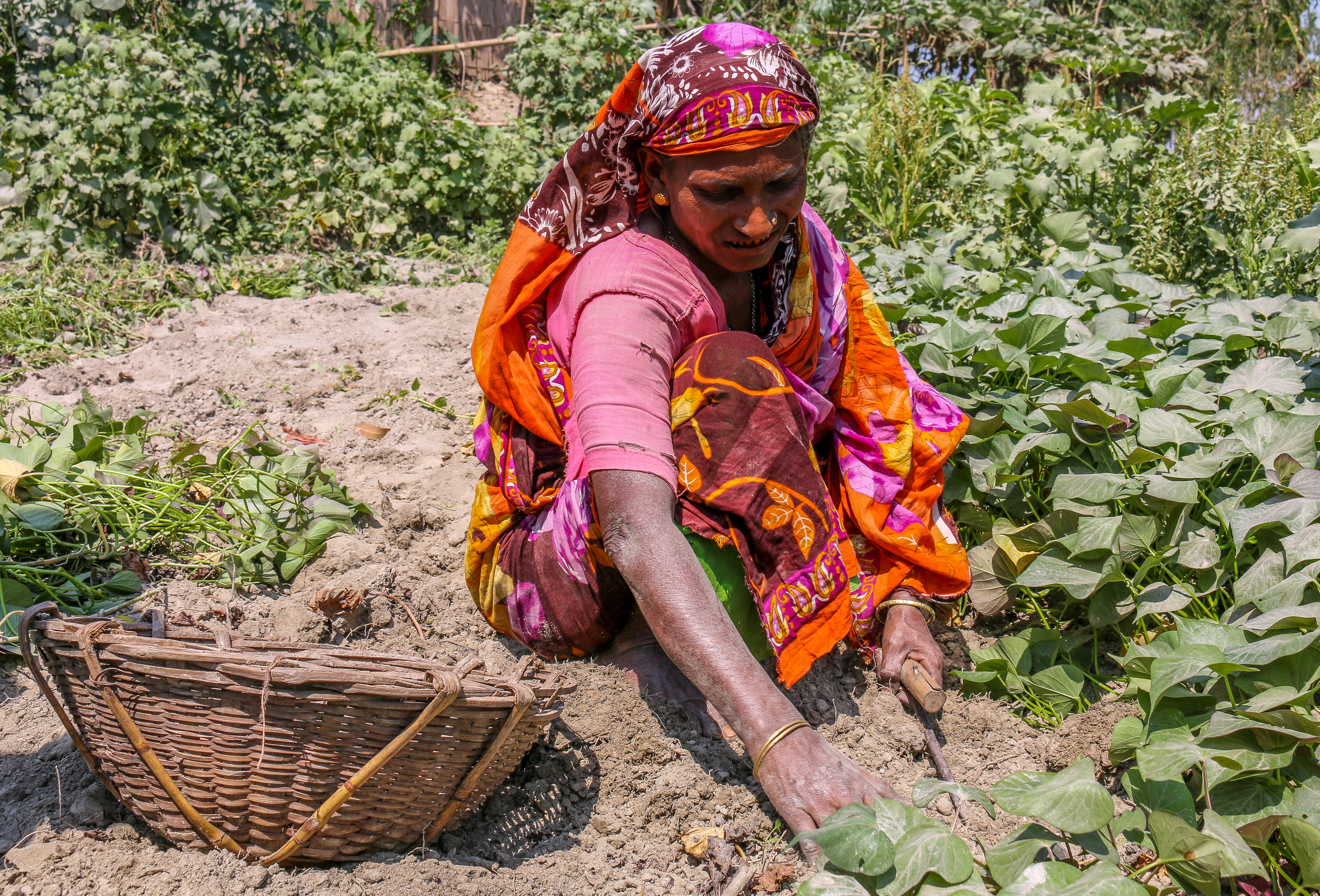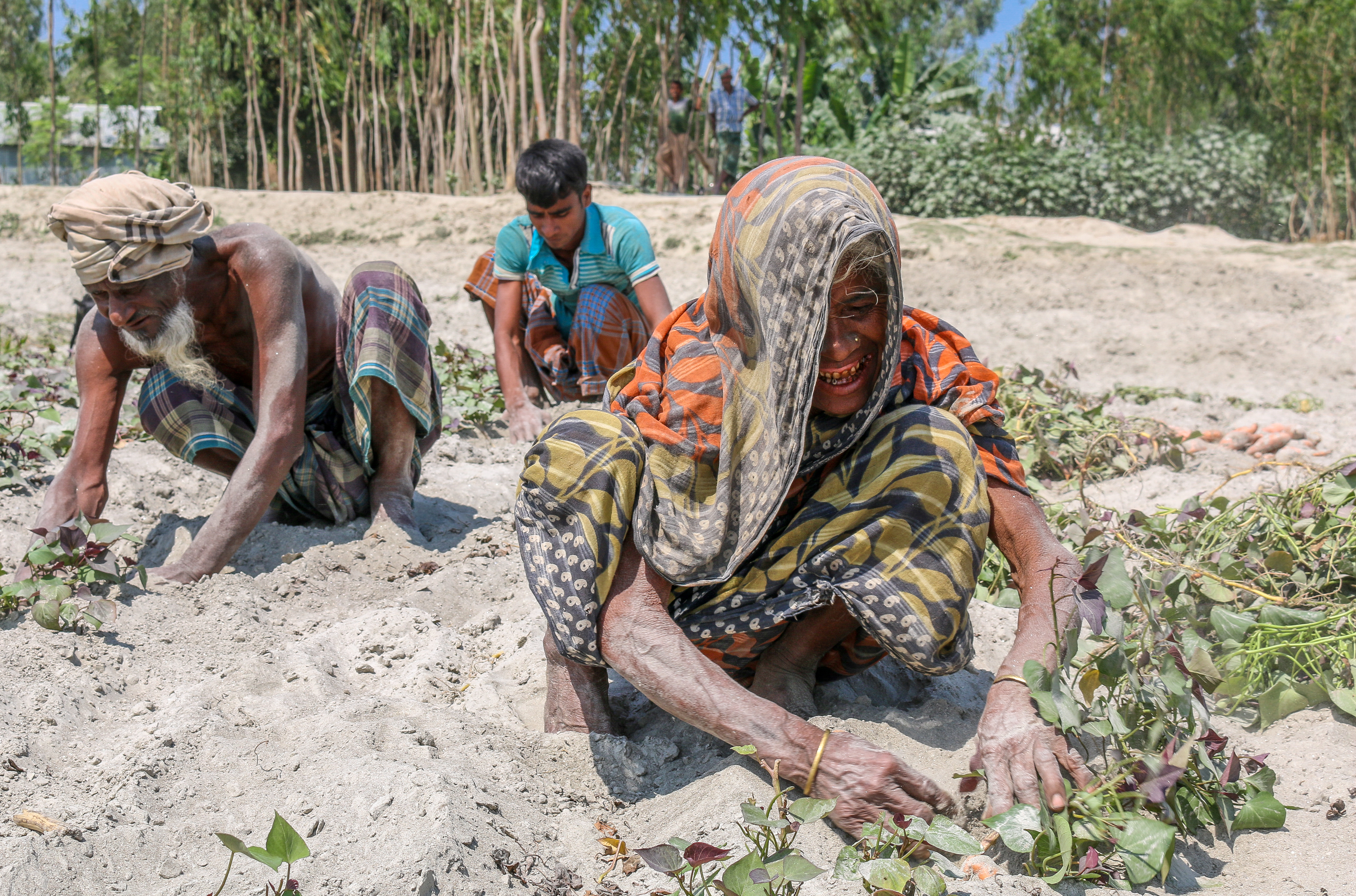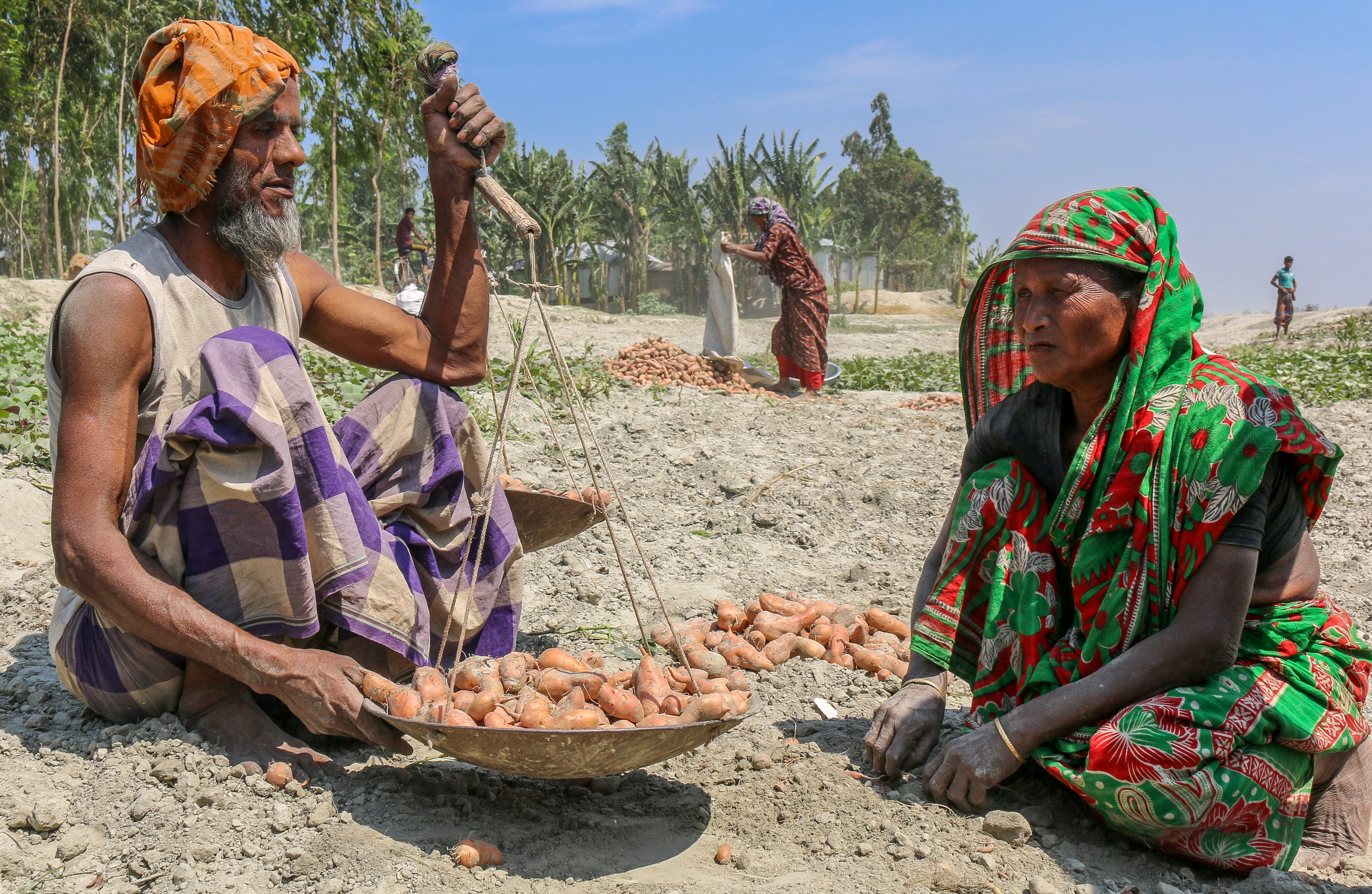 Life in the chars is both hazardous and insecure. Many char dwellers struggle to produce or buy enough food to eat and malnutrition and micronutrient deficiencies are common in these areas. And so it is with these communities in mind that the International Potato Center (CIP) along with local partners such as Bangladeshi Agriculture Research Institute (BARI) and BRAC are introducing orange fleshed sweetpotato as a resilient and nutritious food crop. Living in one of the most extreme environments in the world, these farmers live with the daily threat of flood, erosion and drought and so providing access to a crop which could provide both economic opportunities and nutritional benefits is a potential game changer for some of these farmers.