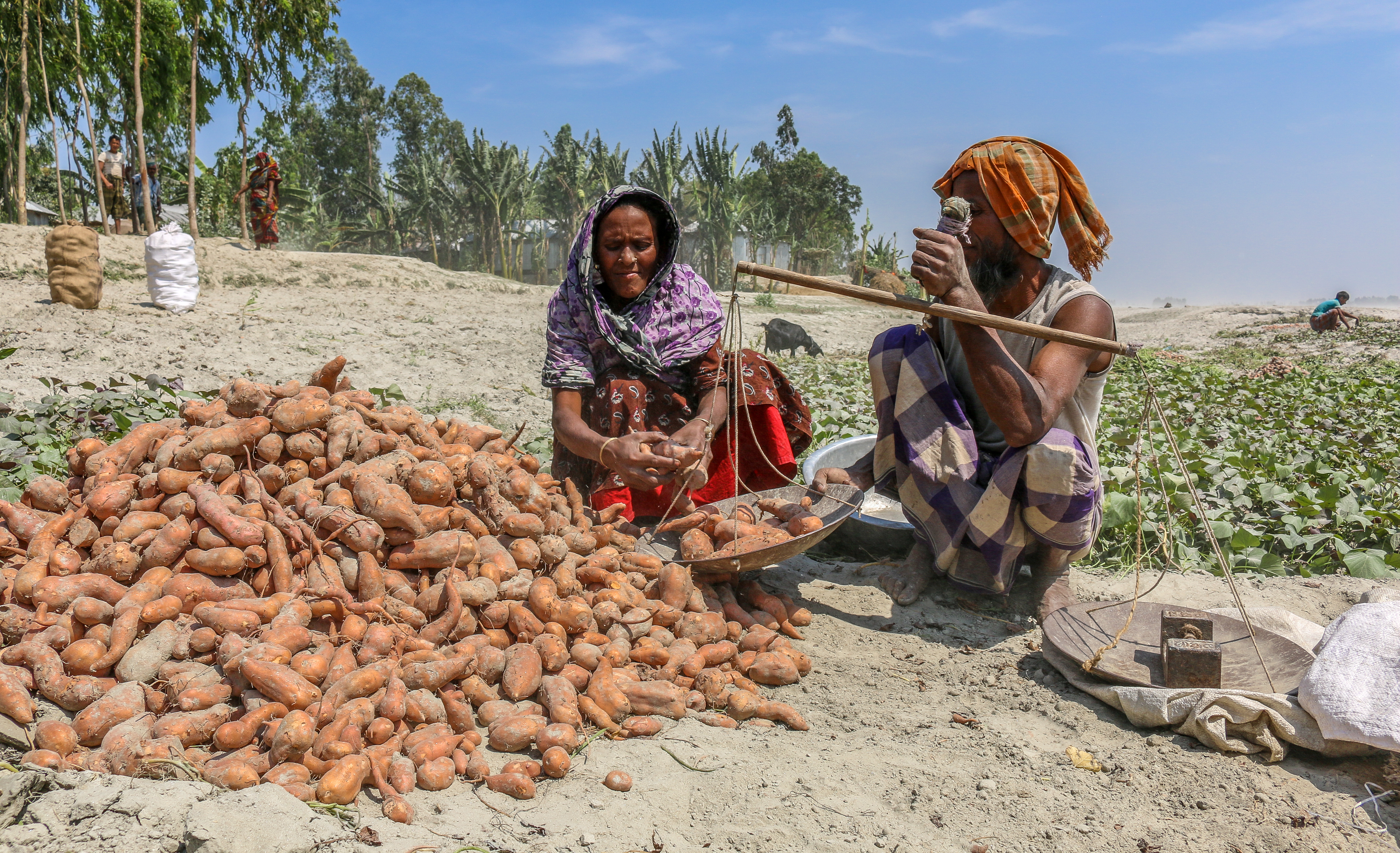 Cultivating orange fleshed sweetpotato in the char areas of northern Bangladesh has a comparative advantage. It is challenging to grow rice, maize or wheat in the chars due to sandy and fallow land and scarcity of water (especially for rice). Farmer’s yield of OFSP in the char area is on average about 22 tons/hectares and requires significantly less irrigation and other inputs than many other crops.