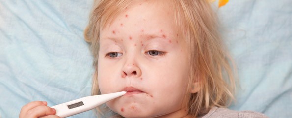 The symptoms of chickenpox include a loss of appetite, headache, a fever near 102 degrees Fahrenheit, malaise, and a very itchy rash on the surface of the skin. These symptoms can take up to 21 days to become apparent after infected.