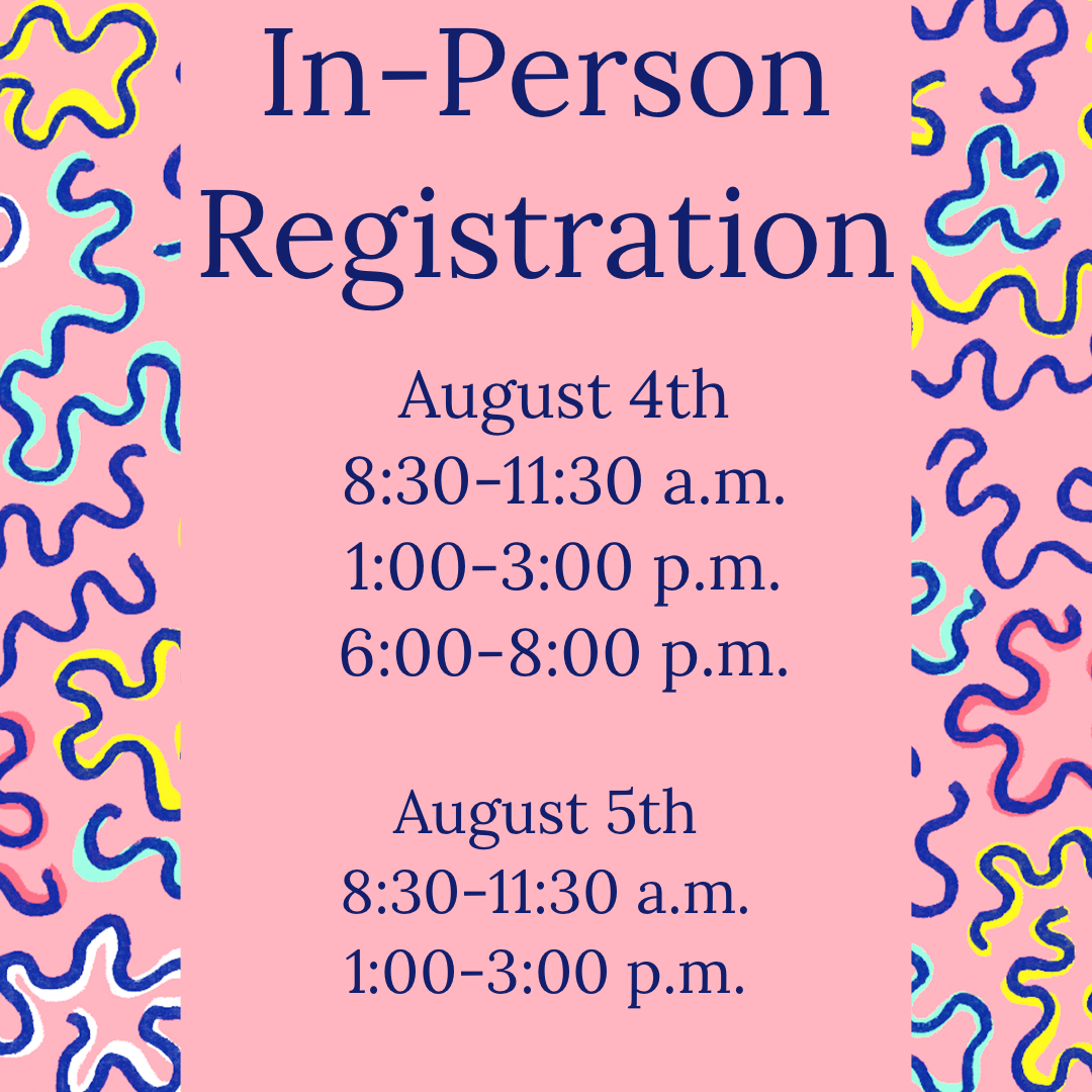 August 5th - In-Person Registration (8:30-11:30 a.m, 1:00-3:00)