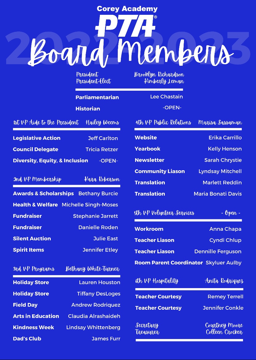 Remember, PTA isn’t just for parents and teachers! Students, grandparents, aunts, uncles, friends, business leaders, community members, and other staff members all help enhance the experiences of our students! 💙