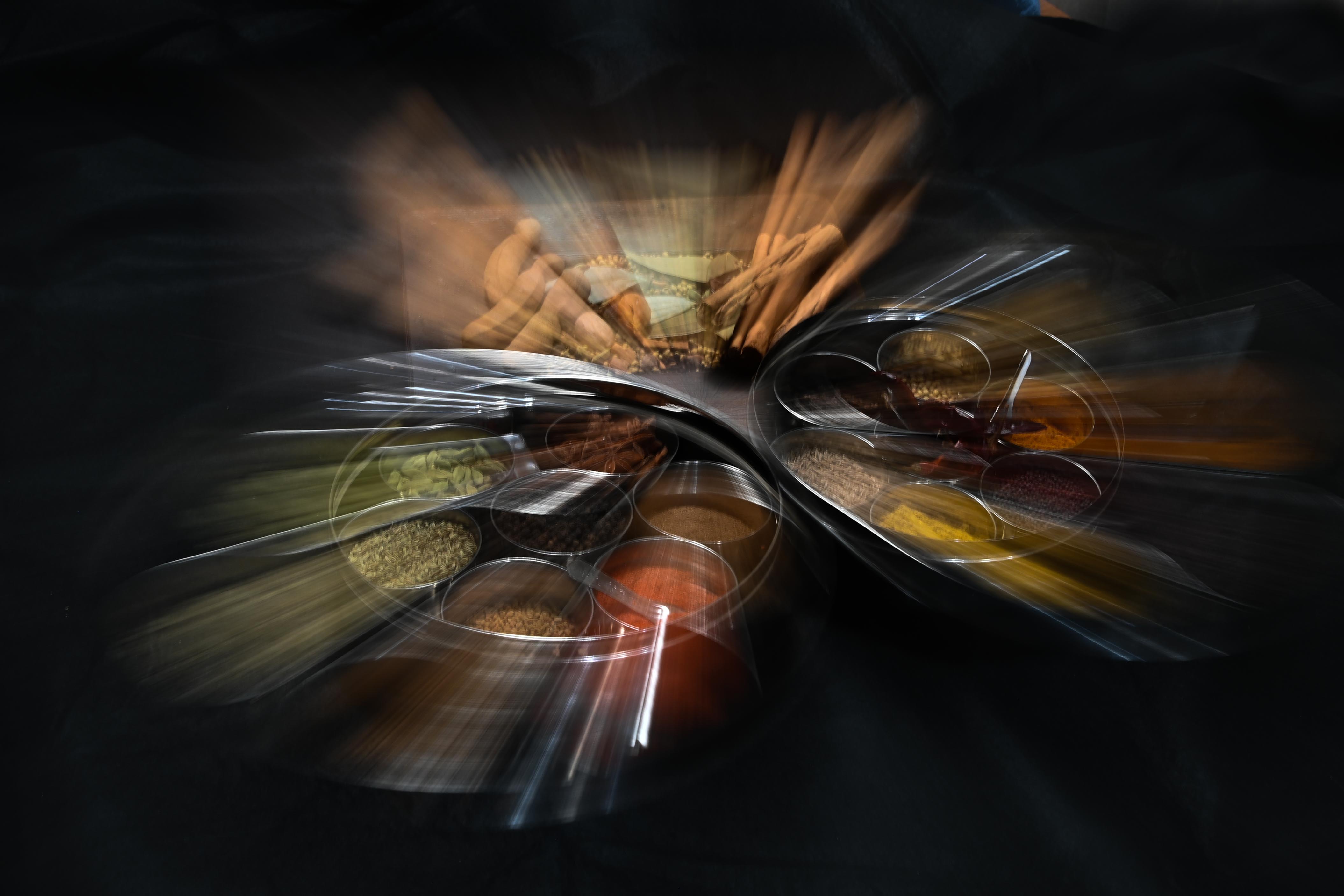 STATE OF THE SPICES is a body of work by fine arts photographer Raj Manickam. The collection of photographs and mixed media artwork investigates the diaspora of spices from their indigenous grounds to worldwide spaces. The Portuguese, Dutch, and Spanish original intentions were to dominate the spice trade. Manickam outlines the early spice routes and colonial conquest of the South Asian and Indian subcontinent. Manickam has a distinct grasp of being an observer in his photography. He has an extensive array of Indian spices and has a passion for cooking authentic South Indian food. Manickam's photographic subjects and mixed media works identify some of the most used and flavorful spices in this collection. Here, he connects aspects of these spices in their present-day use, especially in Colorado's South Asian Indian community.