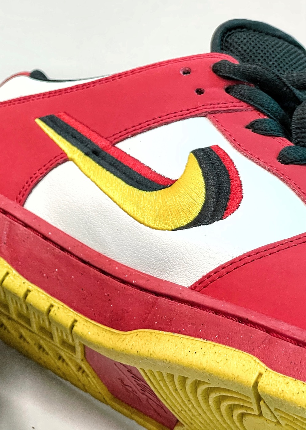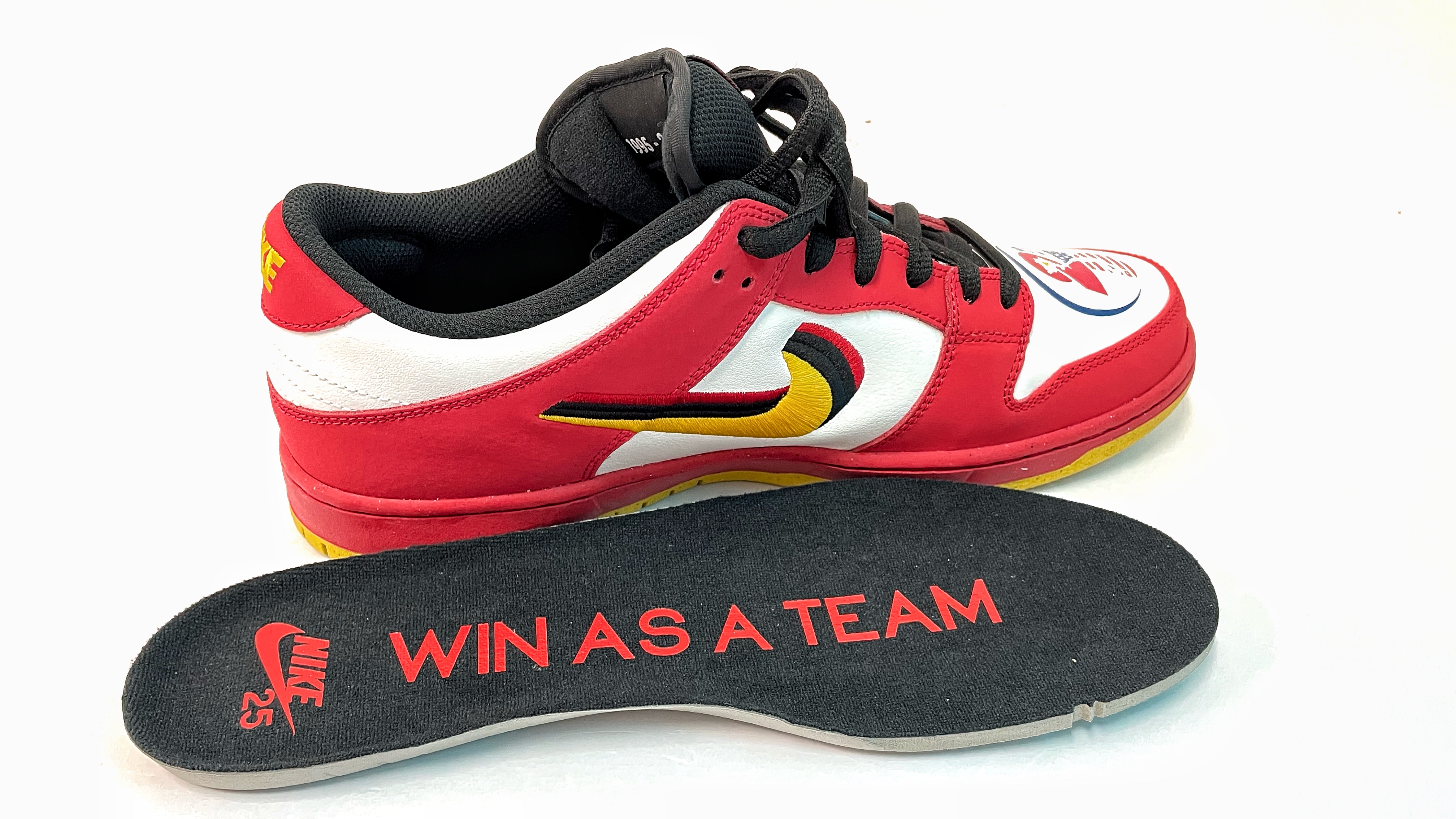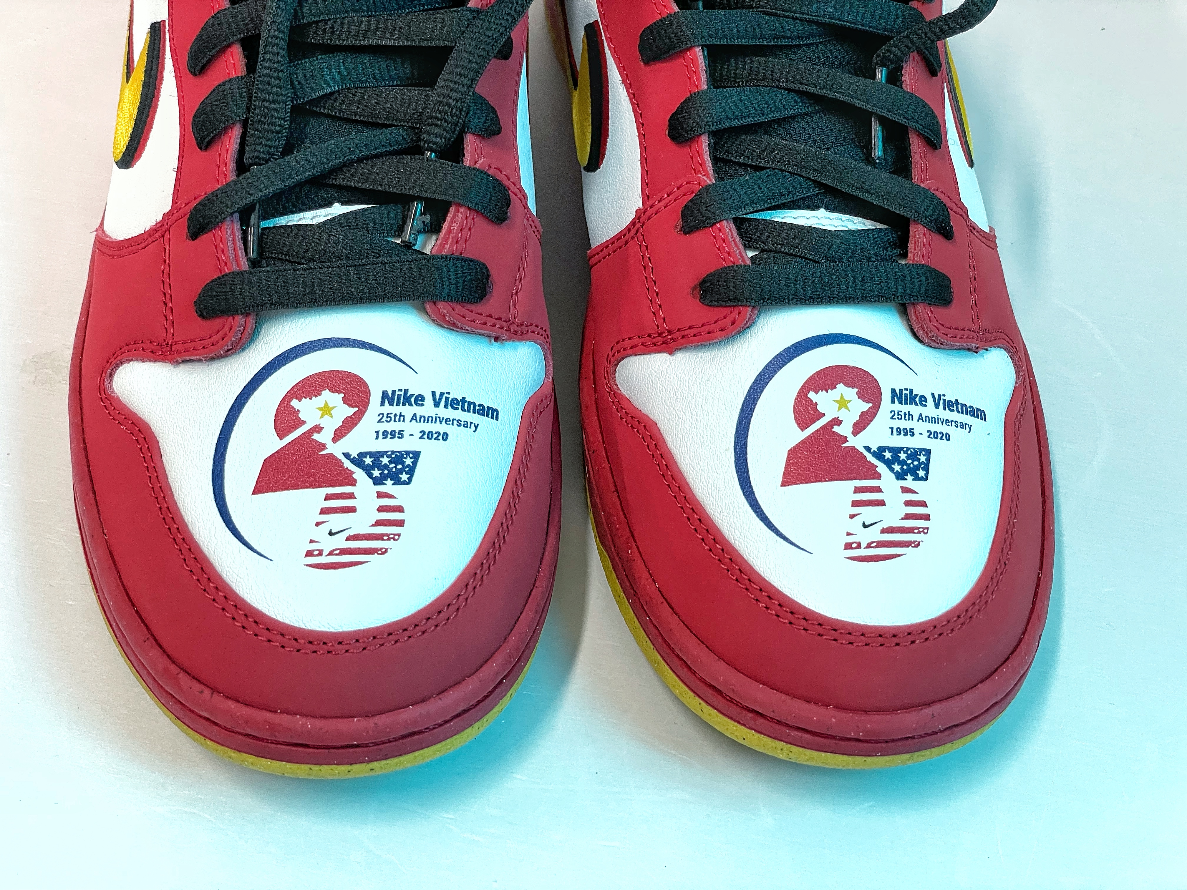 Nike SB Dunk phối màu đỏ – vàng đặc trưng của quốc kỳ Việt Nam cùng hình ảnh bản đồ Việt Nam – Mỹ được cách điệu trên con số 25 ở vị trí mũi giày. Cũng chính chi tiết này đã gây tranh cãi vì hình ảnh bản đồ không có quần đảo Hoàng Sa và Trường Sa?