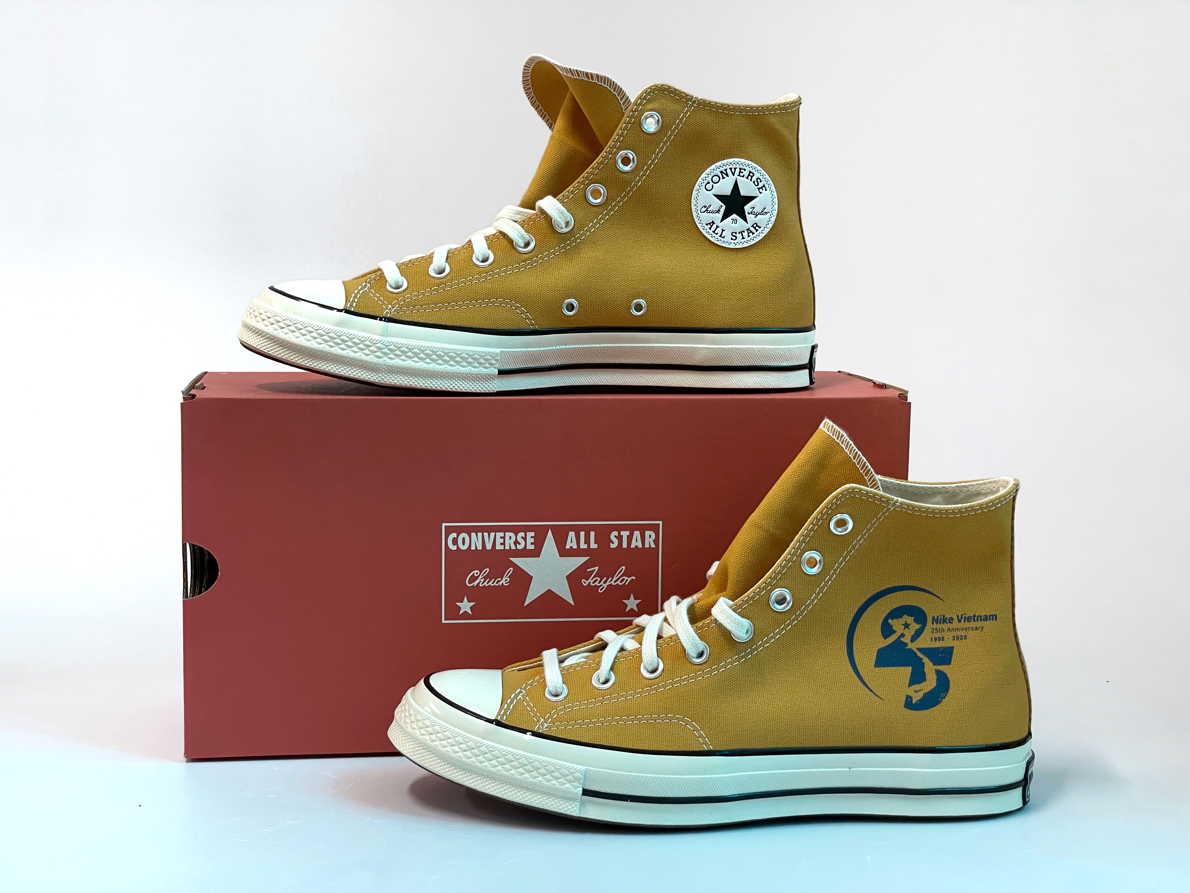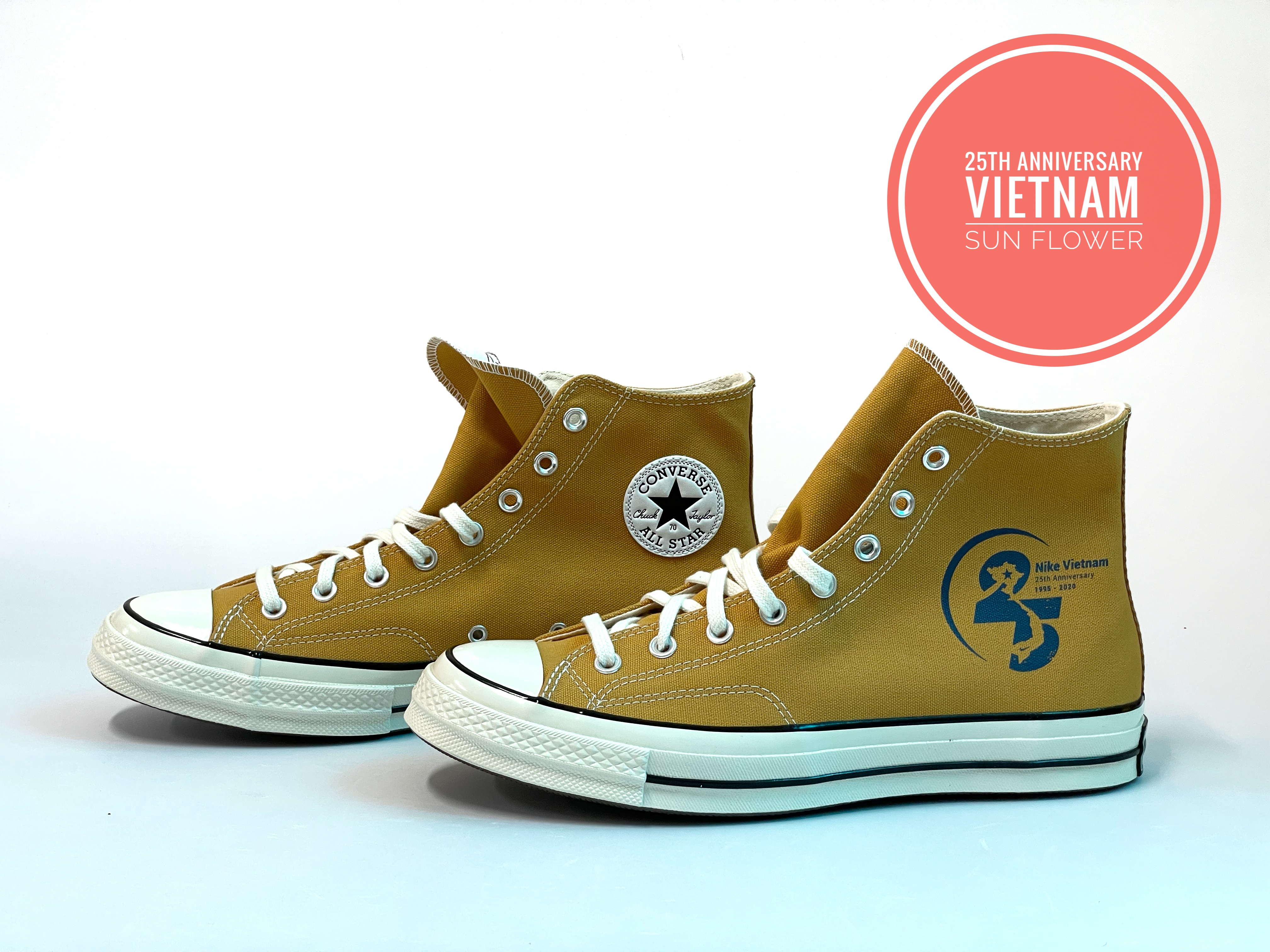 Nhân dịp này CONVERSE cũng cho ra đời giày Converse Chuck Taylor 1970s kỷ niệm 25th năm tại Việt Nam ' Sun Flower '. Một tuyệt phẩm từ màu sắc đến thiết kế logo, vật liệu...