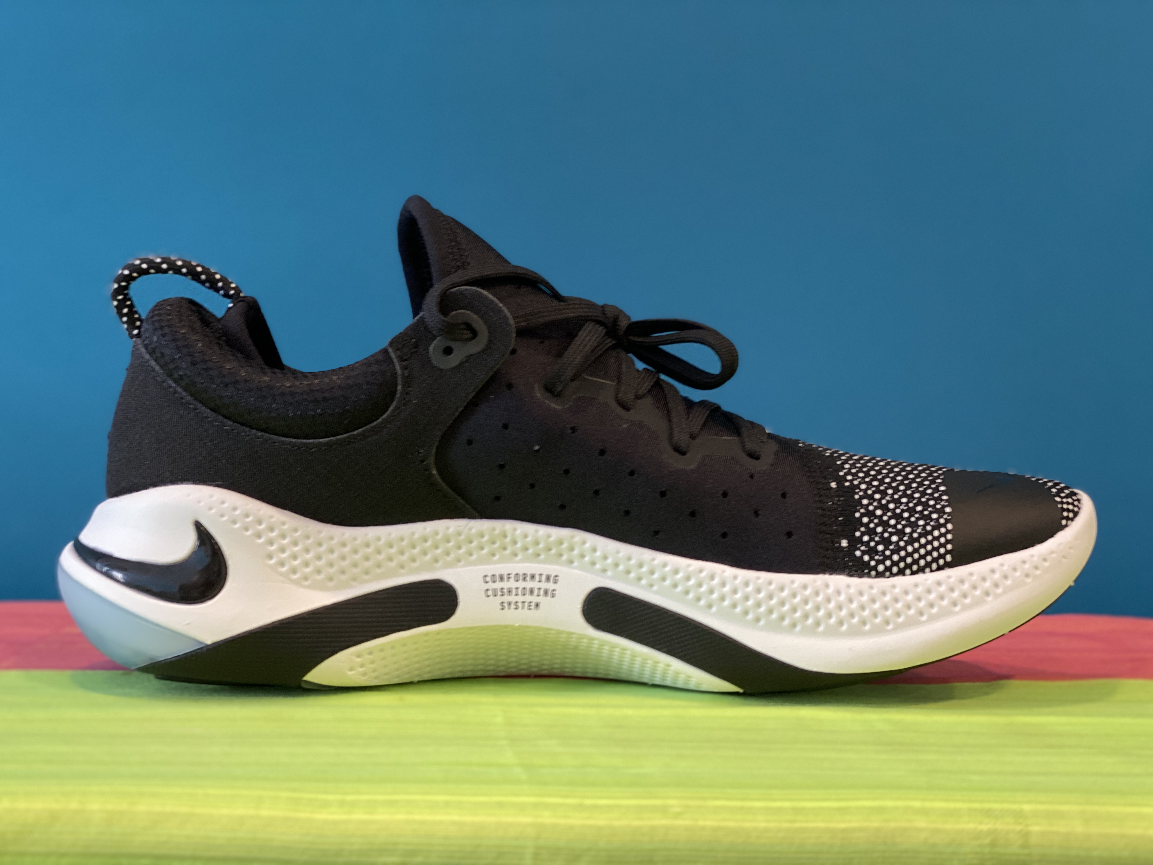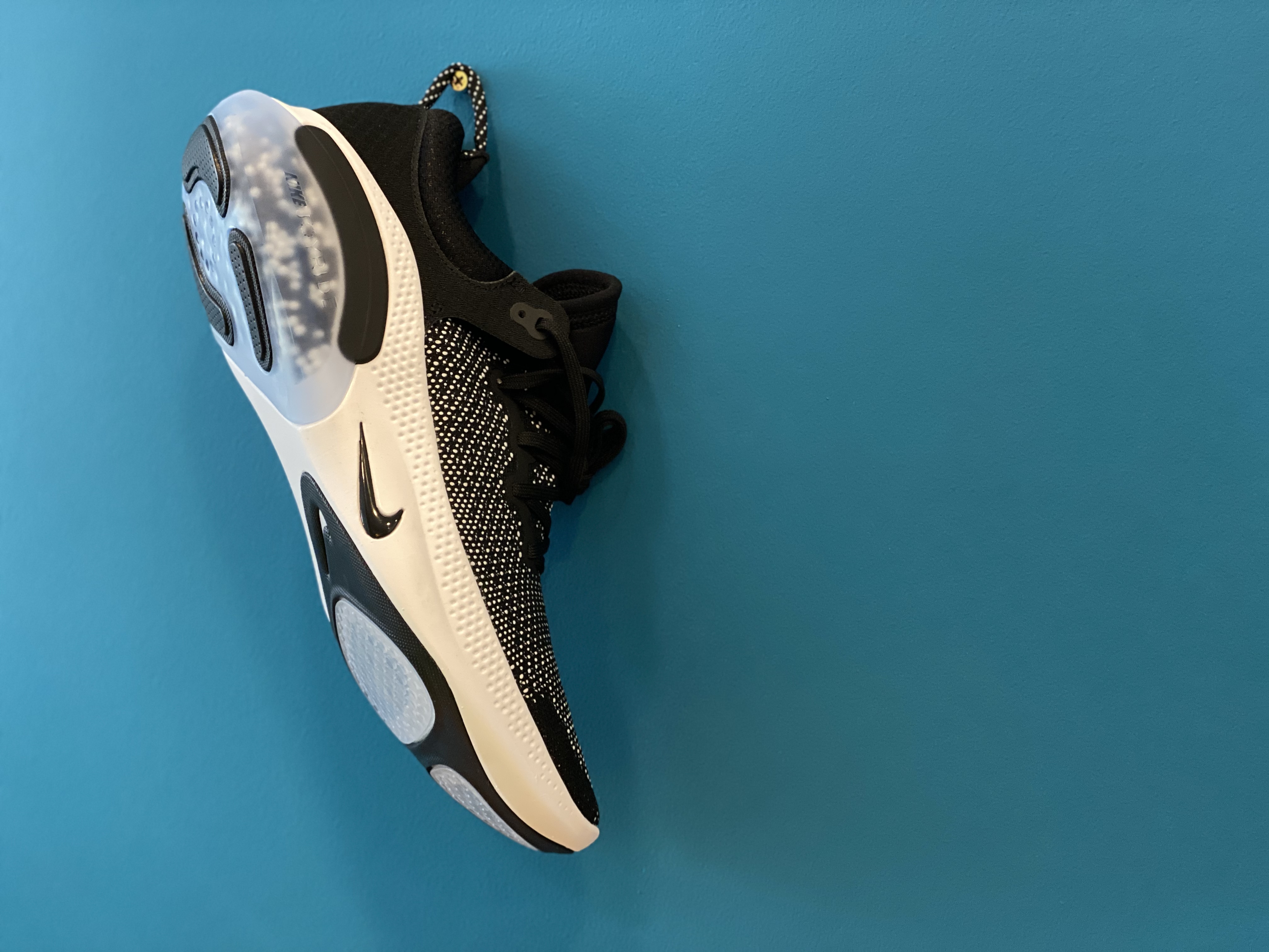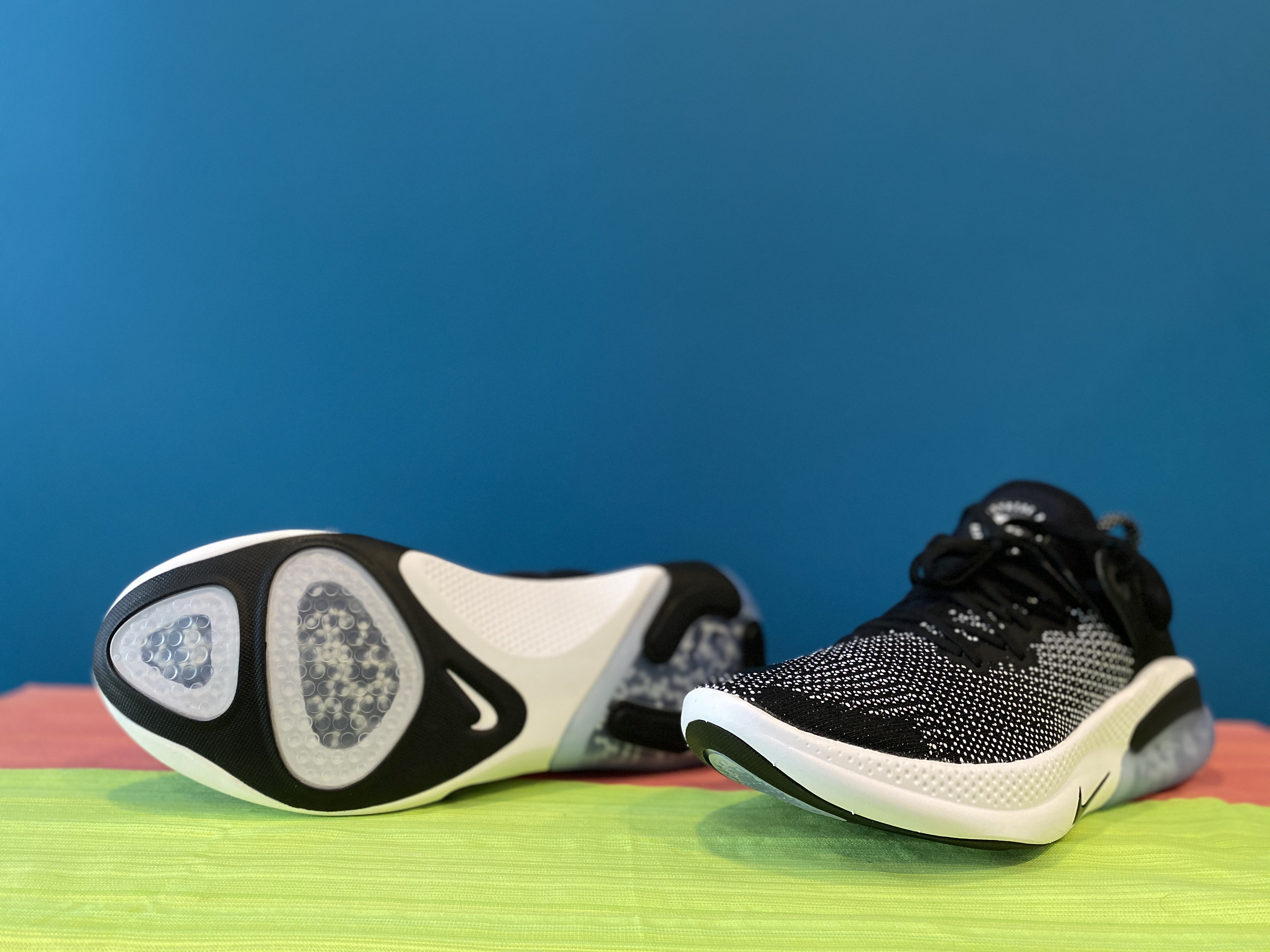 Miếng bọt đệm NIKE REACT (with no carrier, cement or glue) rất nhạy, nhẹ, bền và mềm đáng kể giúp va chạm trên đường hiệu quả hơn - muốn được như vậy đế giữa (midsole) phải cao hơn để tránh va chạm đáy, rộng hơn để phần tiếp xúc mặt đất tốt hơn. Vì vậy nhà thiết kế đã mở rộng phần đế giữa vượt quá chu vi phần trên quanh gót chân để có được sự ổn định cho người chạy.