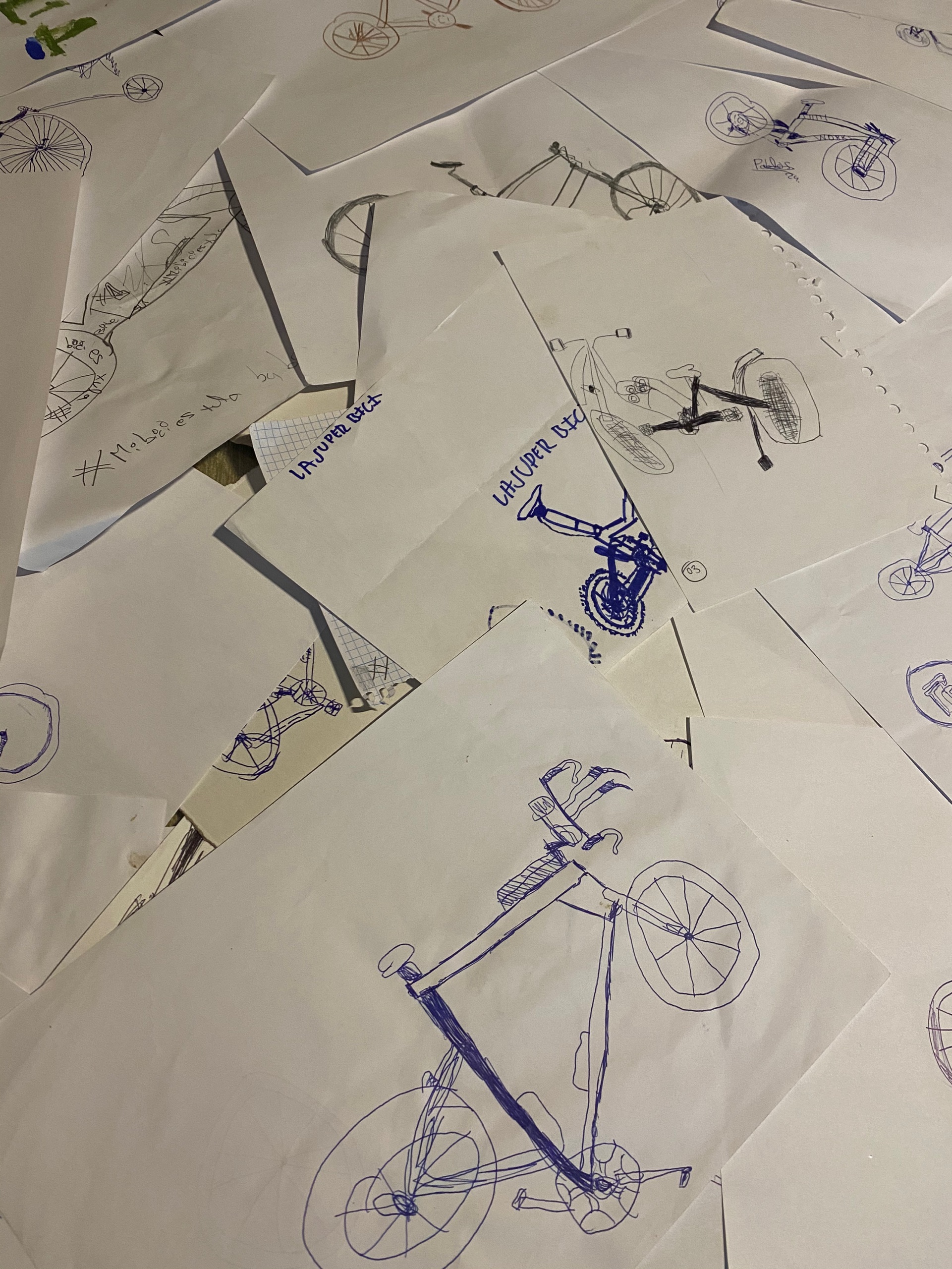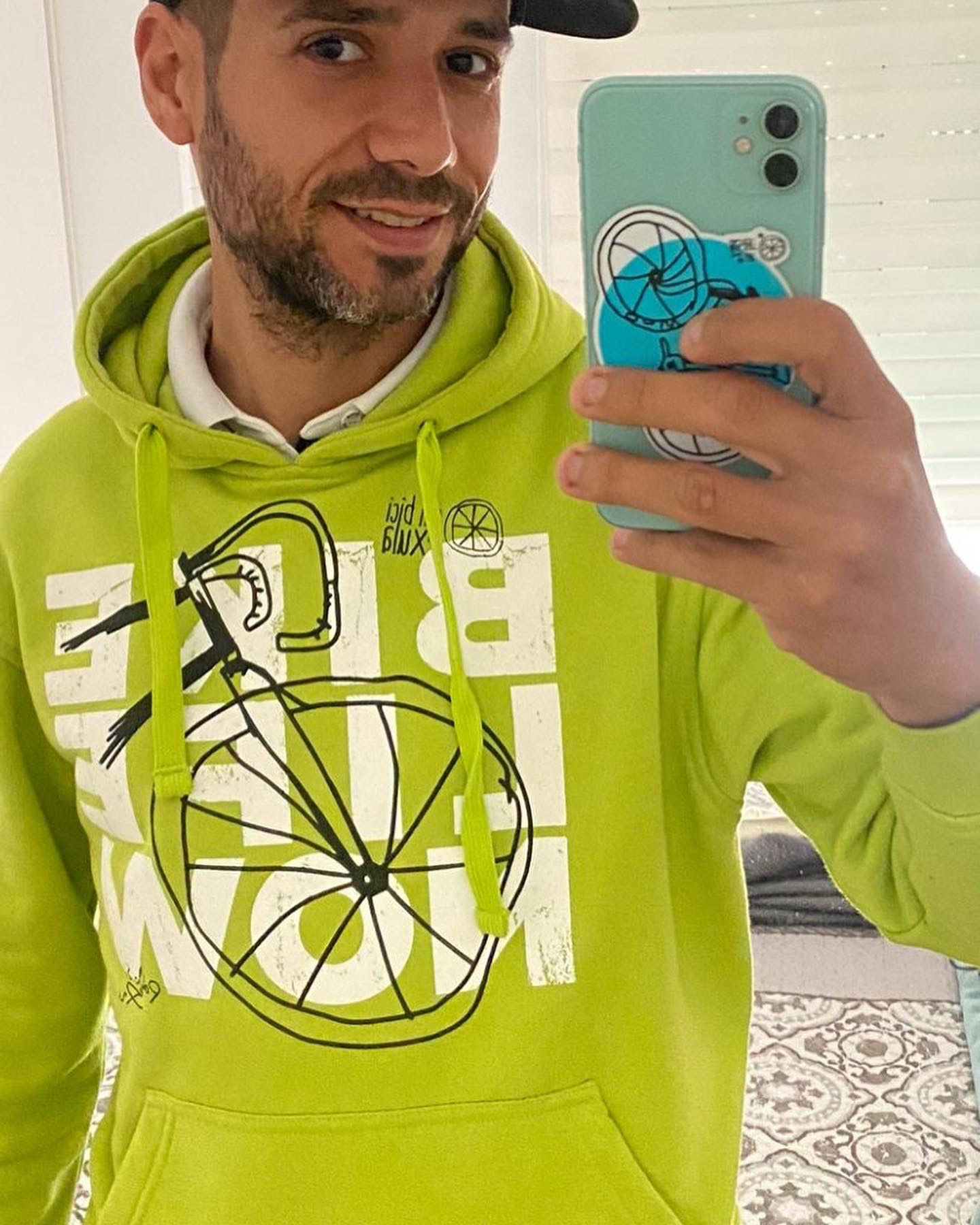 Los dibujos de Pablo, que dibuja bicis desde los 7 años, se plasman en series limitadas de camisetas y sudaderas, con las bicis como protagonistas. Of course!