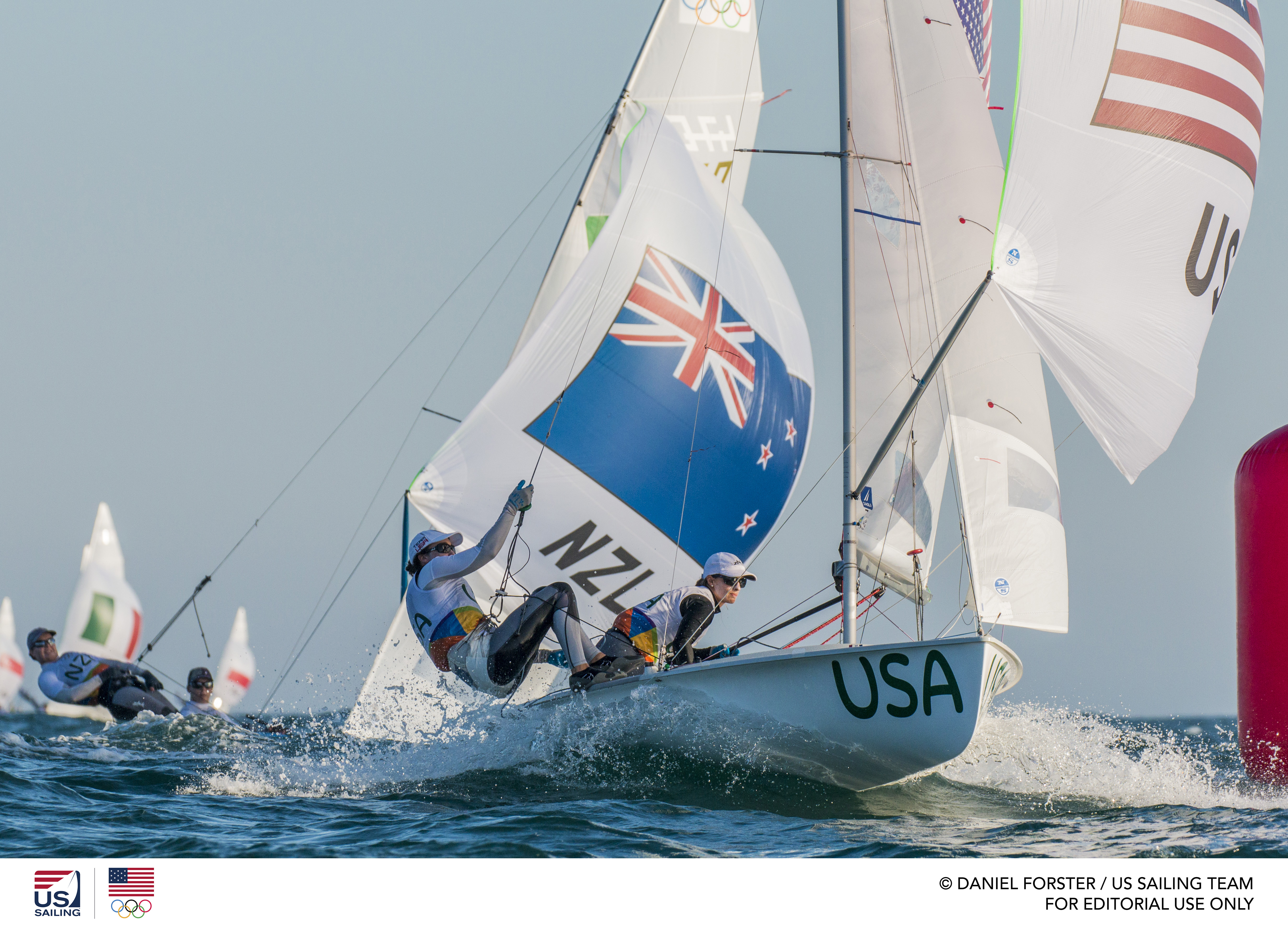 Rio de Janeiro, Brazil - The U.S. Olympic Sailing Team had a successful day on the water after submitting strong scores across the Finn, Nacra 17, Men's 470 and Women's 470 classes, the only fleets with scheduled races on Sunday. Two more American boats have qualified for medal races in the Finn and Nacra 17 classes, with those contests to be held on Tuesday, August 16th just off of Rio's Flamengo Beach.