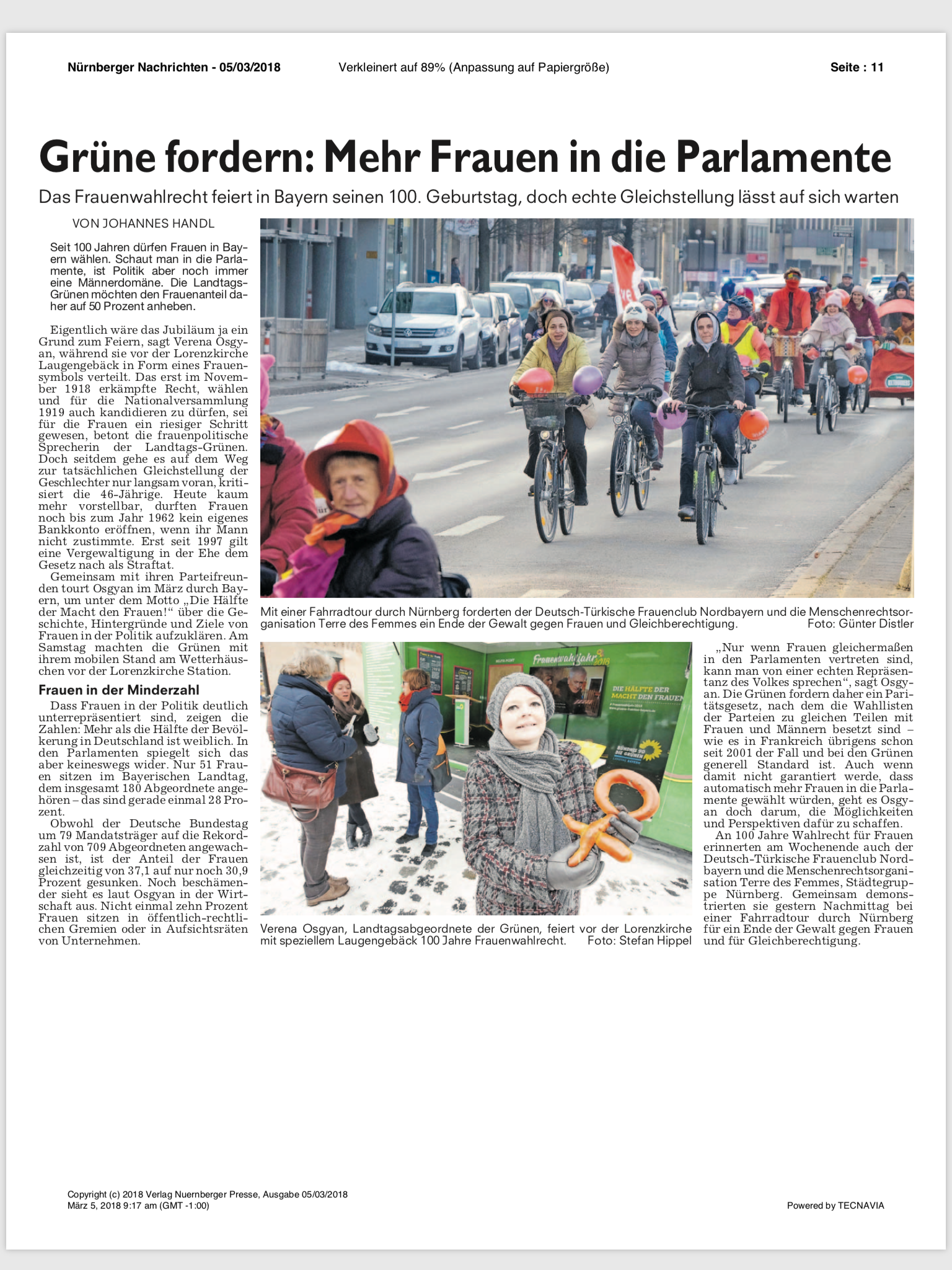 Wieder wurden fleißig Flyer verteilt und für Gleichberechtigung und gleiche Bezahlung Werbung gemacht. Wenn ihr nachlesen wollt, wie grüne Frauenpolitik aussieht, unseren Flyer findet ihr hier!