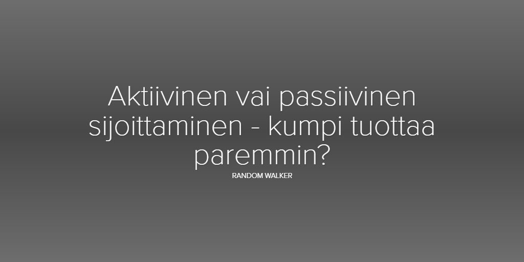 Aktiivinen vai passiivinen sijoittaminen - kumpi tuottaa paremmin? random walker