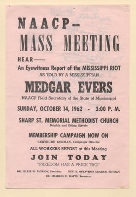 Medgar Evers notably impacted the civil rights movement of the 1960s. Evers was a civil rights activist. Evers applied to the University of Mississippi law school. Evers unfortunately got rejected, then he volunteered to help the NAACP to try integrate the universities with a lawsuit. This raised his profile with the NAACP. Then he became the first state field secretary of the NAACP in Mississippi. One thing he did while working with the NAACP was organized voter, registration efforts,demonstration and economic boycotts of companies that practiced discrimination. (Bio.com). (History.com). (NAACP.org)