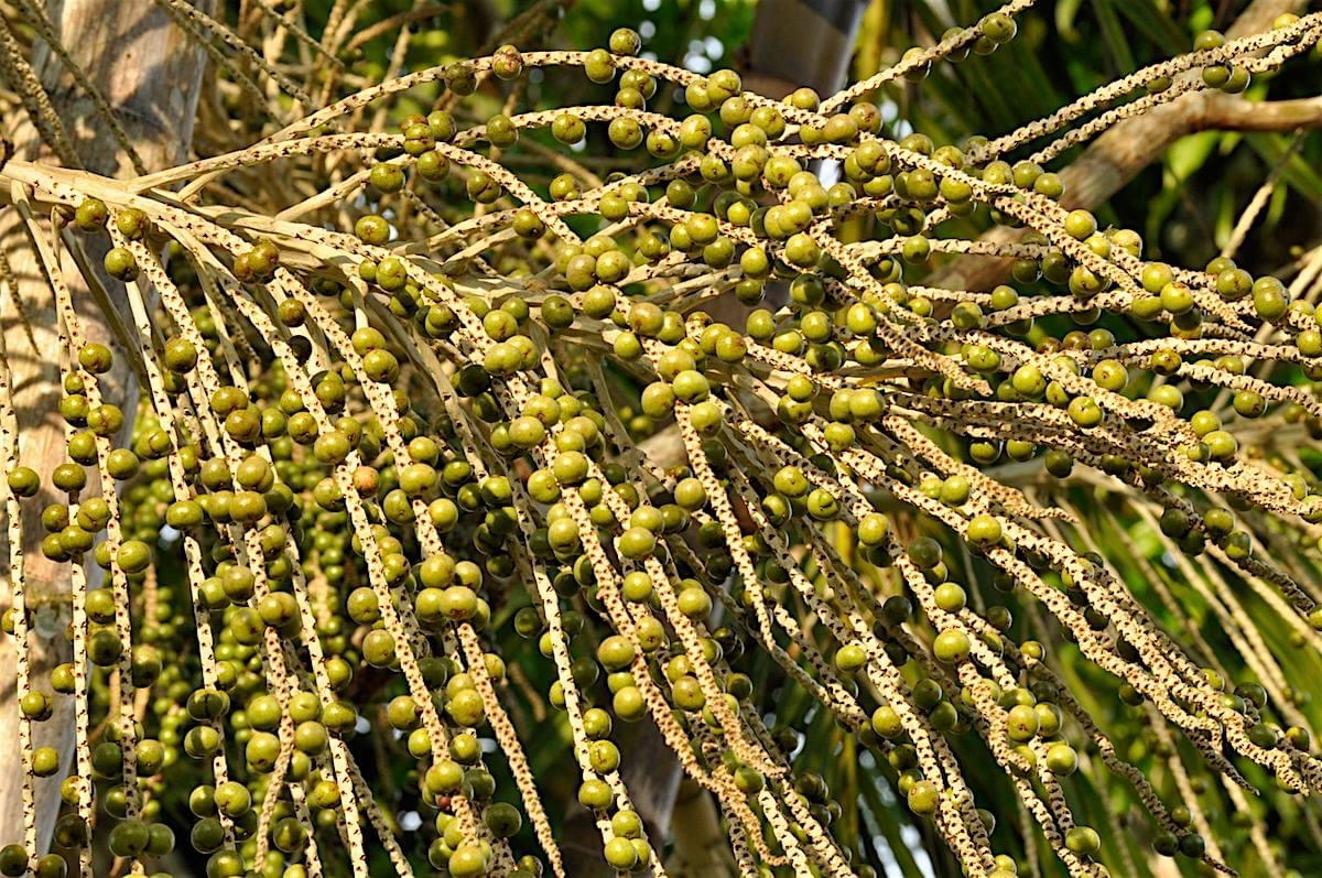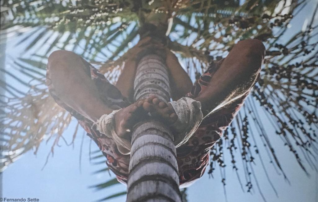 Seu nome tem origem tupi, e seu modo de coleta é ainda muito difícil, no qual o homem sobe na palmeira com auxílio de um trançado de folhas amarrado aos pés, a peconha.