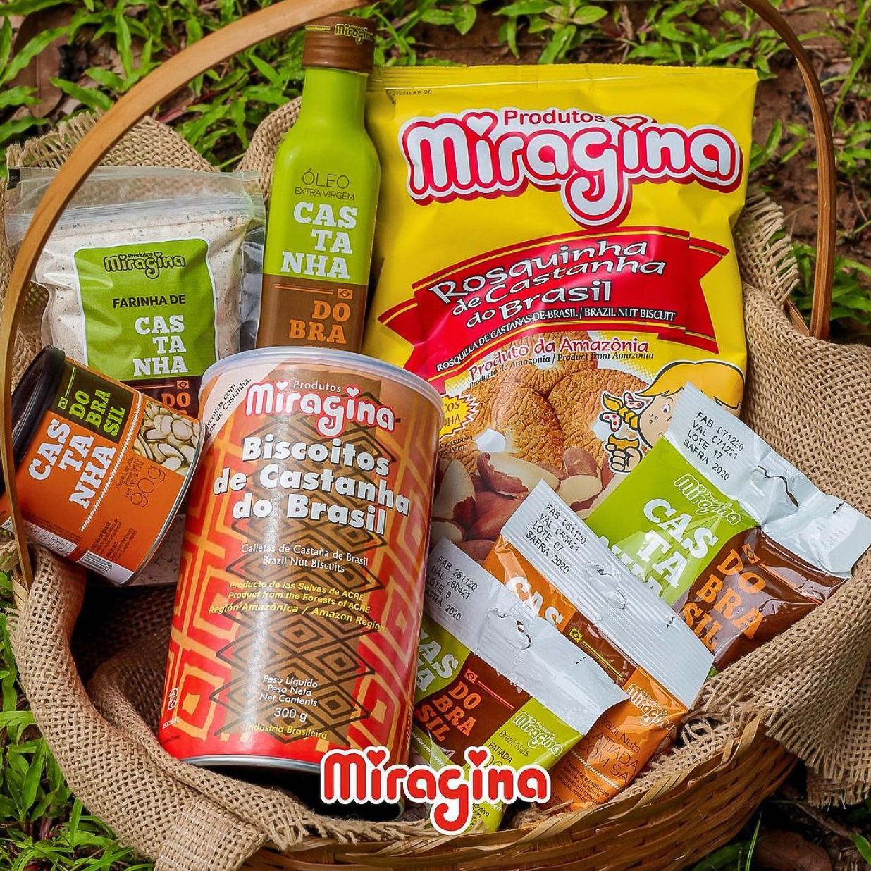 Castanha laminada, biscoito, rosquinha, farinha e até óleo de castanha estão entre os produtos da Miragina.