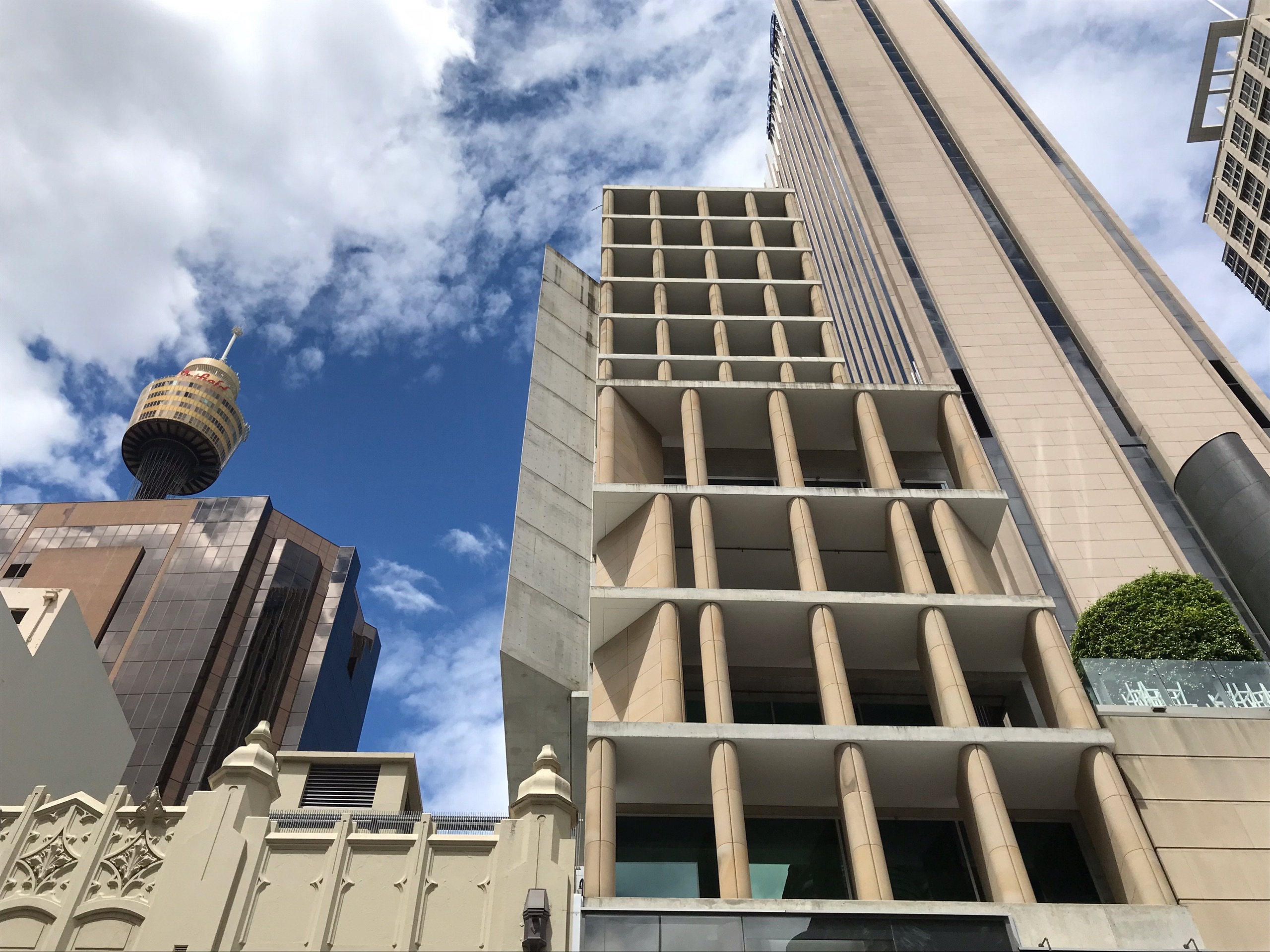 A new 16 storey building on George Street is my next stop on the Sydney Open audio tour. This is a building I really like and I have photographed before and animated it with really loud house music. It just screams party to me and maybe that’s why the building joins the State Theatre stage, to provide a seamless exit for the stars performing there to the after party. We hope this sort of thing still happens somewhere in the world.