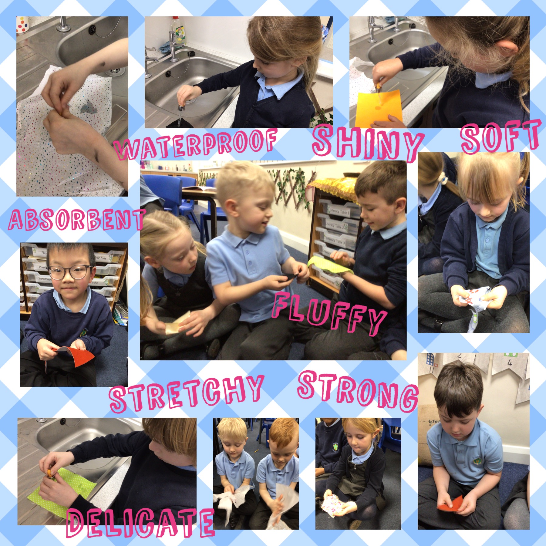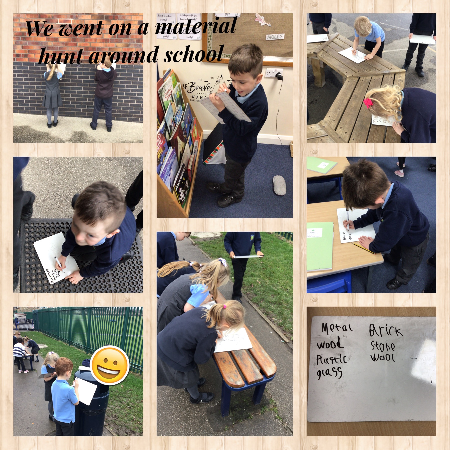 We enjoyed going on a material hunt around school.